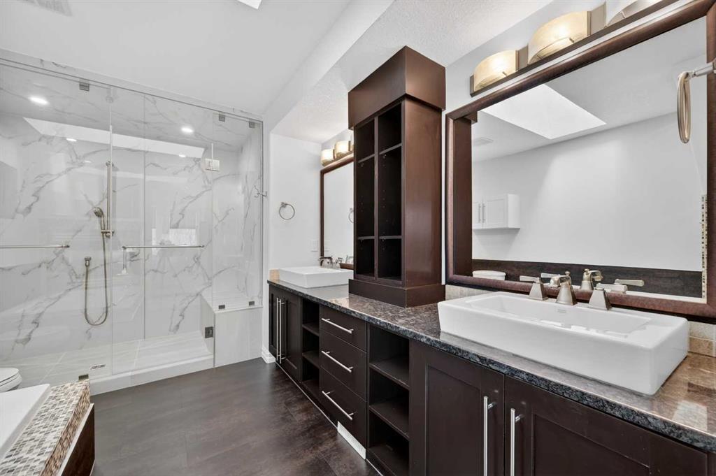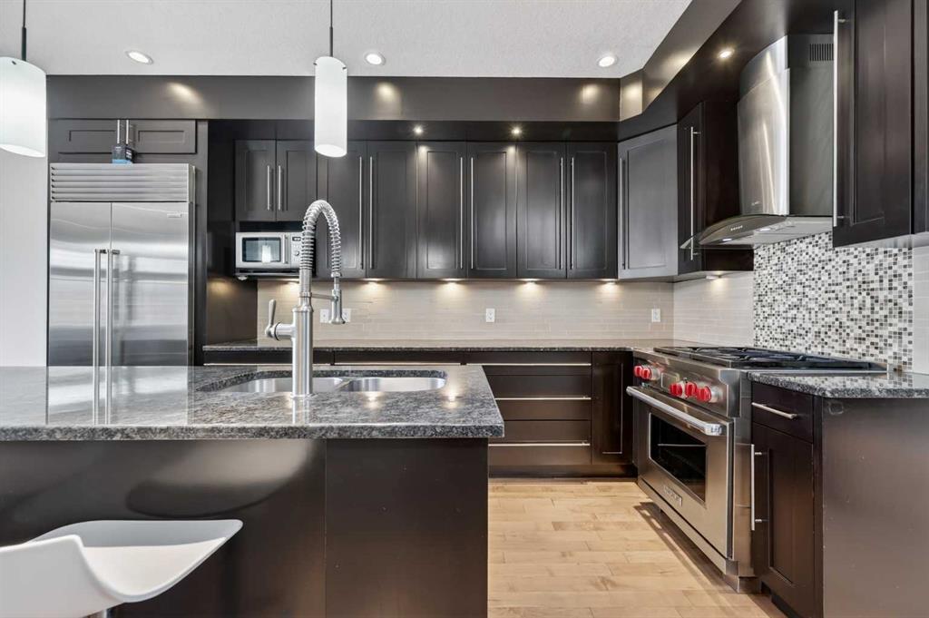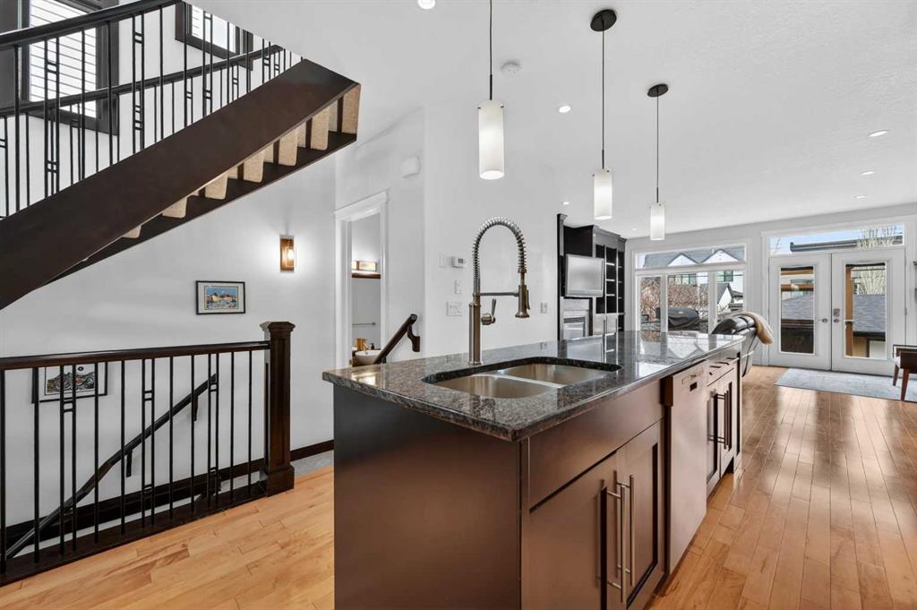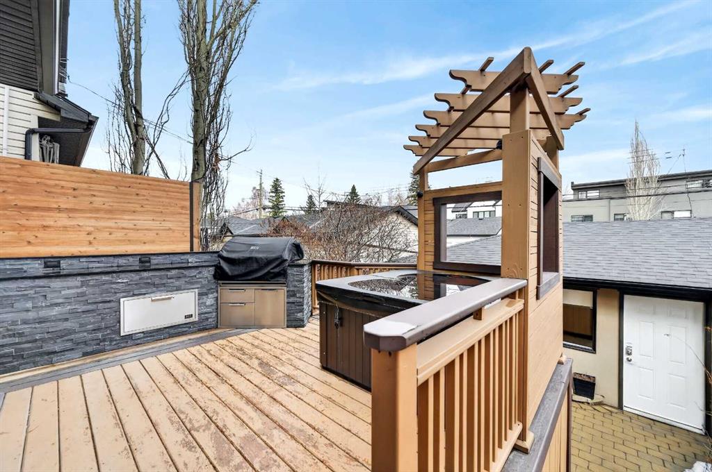 Wonderful Upgraded Home on a quiet tree-lined street in the Highly Sought After community of Altadore is waiting for its New Owners. Beautiful, Bright Home with Large Windows & Skylights that bathe the home in Natural Light. Quality Workmanship and Details are evident throughout this Home – Elegant Curved Staircase with Open Risers, Wood & Wrought Iron Railing, Hardwood Through the Main Level, Built-in Cabinetry and Wall Closets, 3 Gas Fireplaces. Front Entrance has Built-in Wall Closet and is Showcased by the Beautiful Curved Staircase. Large, Bright Dining Room is just off the Front Foyer and allows for use as stand-alone Dining Room or combination Dining Room with Sitting Area. The Gourmet Kitchen includes Top of the Line Appliances – Wolf Gas Range, Sub-Zero Fridge, Bosch Dishwasher – Beautiful Granite Countertops, Large Island with Built-in Wine Rack and Breakfast Bar, Richly Stained Cabinets. Kitchen opens to the Spacious Living Room with Built-In Cabinets and Shelving surrounding a Gas Fireplace. Breathtaking Primary Bedroom features Vaulted Ceiling, Wall-to-Wall Built-in Closet, Balcony for Morning Coffee or Evening Glass of Wine, Beautiful Two-Sided Gas Fireplace that is shared with the Gorgeous Ensuite – Large, remodeled Shower, Dual Vanities. Two Good-Sized Bedrooms, Main 4 Piece Bathroom and Laundry complete the Upper Level. Basement is Developed to same High Standards as the rest of the Home – Great Family Room with more Built-in Cabinetry and 3rd Gas Fireplace, Wet Bar, Built-In Speakers plus Full 4 Piece Bathroom and a 4th Bedroom which is perfect for Teenagers or Guests. Low Maintenance Backyard starts with the Raised Deck with Built-In BBQ Centre & Warming Oven, Hot Tub & Privacy Screen accessed from the Living Room. Under Deck Storage, Double Detached Garage, Paved Back Alley and Exposed Concrete Front Walkway. But this is Not All! In the past few years the owners have replaced the Furnace, installed a Tankless Water System, installed a Radon Mitigation System, Air Exchanger was set up, Primary Shower was Redone, Rebuilt the Built-in BBQ area with new BBQ, Installed 40 year Shingles in 2024 plus replaced the Washer, Dryer & Dishwasher. This Wonderful Family Home is located within walking distance to the Altadore School, Parks plus trendy Marda Loop restaurants & shops and much more! Easy access in and out of the community. This is a winner!