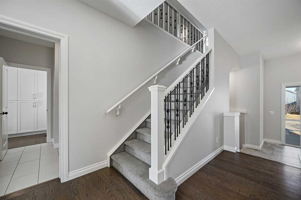Rare 7-bedroom home is Situated on a premium corner-lot with ample parking and impressive curb appeal, This 2962 sq ft home combines size, flexibility, and thoughtful design in one of NW Calgary’s most sought-after communities. Offering space, functionality, and versatility for large or multi-generational families. This beautifully designed home features a total of 7 bedrooms, including a RARE MAIN FLOOR BEDROOM paired with a full bathroom—ideal for guests, extended family, or a home-based business setup. The main floor boasts a bright and spacious layout complete with a private office, expansive living room with vaulted Ceiling, and an open-concept kitchen and dining area perfect for entertaining. The living room is highlighted by a cozy gas fireplace with elegant maple built-in cabinetry, adding warmth and character to the space. The kitchen offers generous storage with two pantries, modern finishes, high cfm Sakura Hoodfan, Gas Cooktop, Stainless Steel Appliances and seamless flow into the dining area. A convenient mudroom provides practical everyday organization. Upstairs, you’ll find 4 generously sized bedrooms, including a luxurious primary retreat featuring a large walk-in closet and a spa-inspired 5-piece ensuite with a Custom Shower and 10 Mil Shower Glass door. A full 4-piece bathroom serves the additional bedrooms. The massive bonus room offers endless possibilities for a media room, play area, or additional family lounge. A dedicated upper-floor laundry room adds everyday convenience. The fully developed basement expands your living space even further, offering 2 additional bedrooms, a spacious living area, a SECOND KITCHEN, an additional laundry area, and a versatile flex room that comes with a closet. Step outside to enjoy the large backyard and deck, ideal for summer gatherings and outdoor relaxation. . A must-see opportunity for growing families or savvy investors. Home also comes with A Brand NEW ROOF, 16×8 Garage door Fenced, Landscaped, Radon Fan installed, storage Shed, bbq gas line, and built in garage shelving. Close to Schools, Shopping, Playground, Walking paths and easy access to major roads.