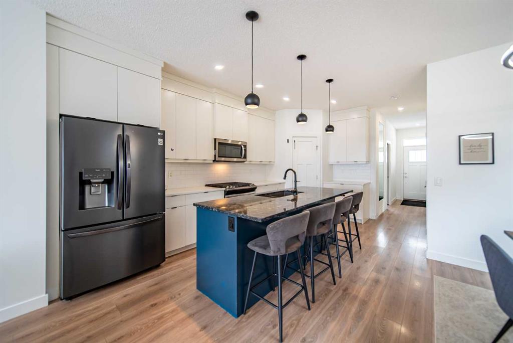 Welcome to this beautifully maintained two-storey home located in the vibrant and sought-after community of Seton. Offering a perfect blend of modern design, functionality, and income potential, this property is ideal for families and investors alike. The main floor features 9-foot ceilings and durable vinyl flooring throughout, creating a bright and inviting atmosphere. A versatile office space is conveniently located near the front entrance, perfect for working from home or additional flex space. The open-concept layout seamlessly connects the living, dining, and kitchen areas, enhanced by large windows that provide an abundance of natural light. Upstairs, you will find three spacious bedrooms, including a well-appointed primary suite, along with two full bathrooms and a generous bonus room—ideal for a secondary living area, media space, or playroom. The fully developed basement includes a legal one-bedroom suite, offering an excellent opportunity for rental income or multi-generational living. Additional features include central air conditioning for year-round comfort, and a fully landscaped, south-facing backyard complete with a deck—perfect for enjoying sunny days. The property also features a double detached garage and a desirable location siding onto a pathway, providing added privacy with no neighbour on one side. Located close to shopping, restaurants, schools, and the South Health Campus, this home offers exceptional value in one of Calgary’s most dynamic communities.