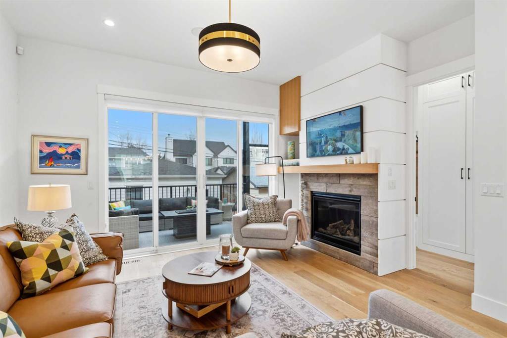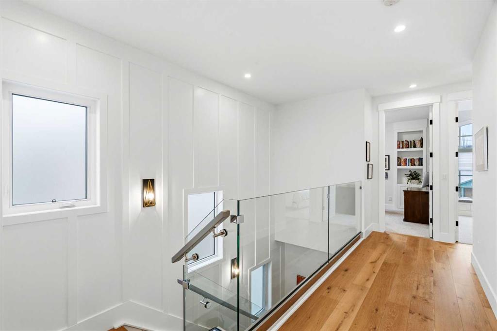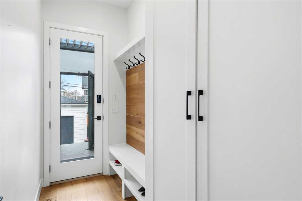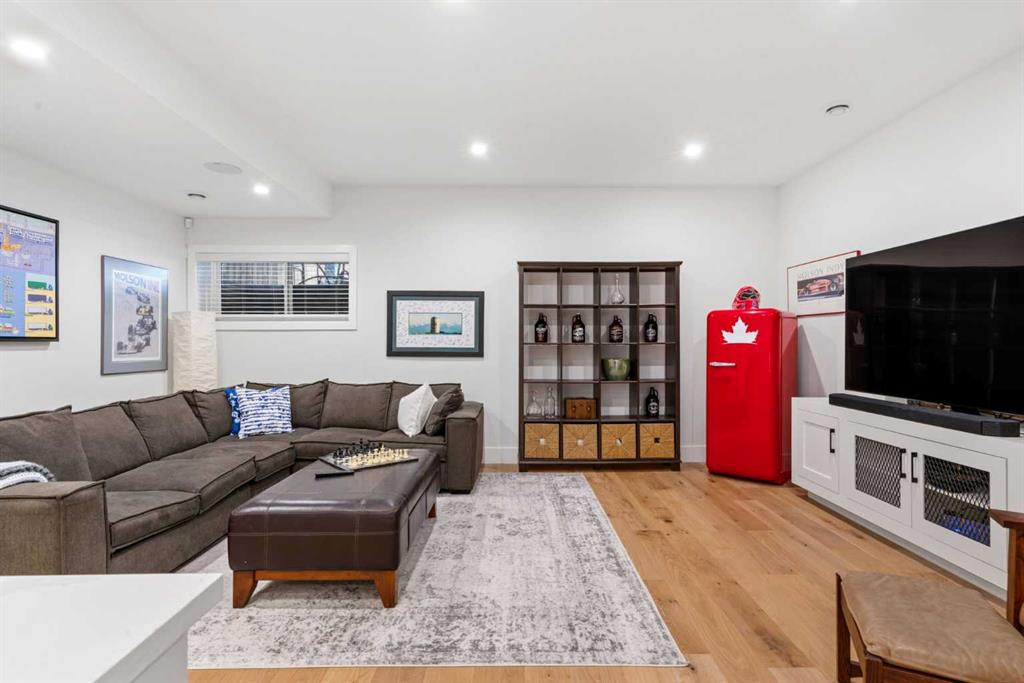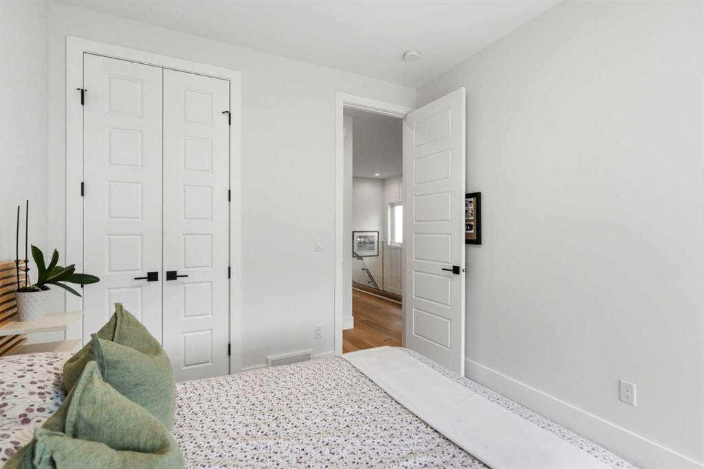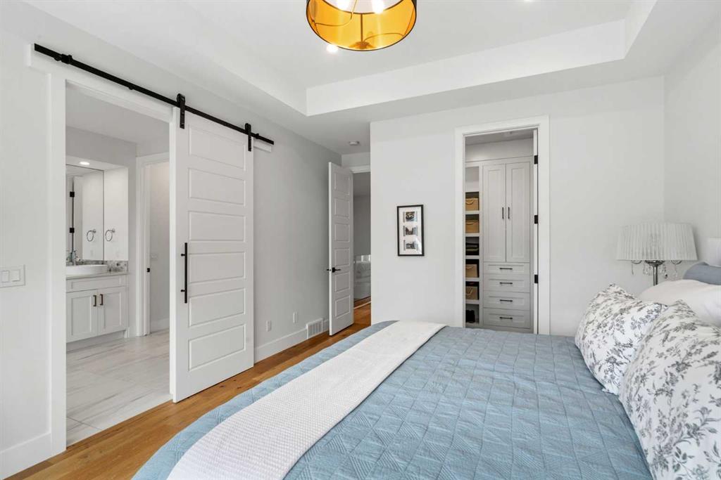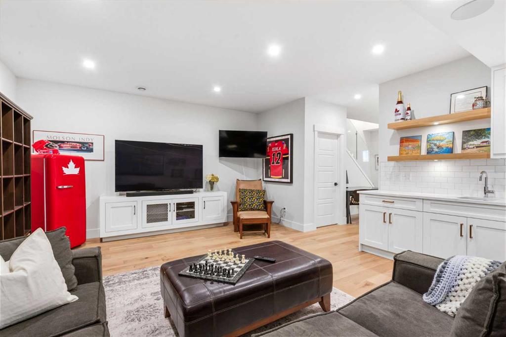 This exceptional, modern farmhouse style home, where architectural refinement & timeless design converge on a quiet, tree-lined street in the heart of Altadore. With 2,836 sq ft of curated living space, this stunning four-bedroom, 3.5 bath residence seamlessly blends upscale finishes with thoughtful functionality. Soaring 10 foot flat ceilings, engineered white oak wood flooring throughout, & striking 8 foot doors enhance the sense of openness & grandeur. Expansive windows flood the open concept main floor with natural light, illuminating a front dining area adorned with a detailed feature wall that flows effortlessly into the chef-inspired kitchen. The kitchen is designed for both everyday living & elegant entertaining & features custom, full height white cabinetry, subway tile backsplash, quartz countertops, a massive two-toned island with an eating bar & premium appliances, including a Bertazzoni gas range, dual full-sized fridge & freezer & drawer style microwave. The inviting living room offers a warm refined atmosphere, with a modern gas fireplace & custom built-ins. Large patio doors open to an expansive rear deck with a Suncoast enclosure featuring a motorized louvre roof and retractable screens – offering all-season outdoor living with adjustable sun, shade, and airflow. The mudroom with custom built-ins & a stylish powder room complete the main level. A dramatic architectural staircase with extra wide wood treads & sleek glass walls leads to the upper floor. The primary suite showcases a tray ceiling and a spacious walk-in closet. A sliding barn door leads to the spa-inspired ensuite, which offers in-floor heating, dual vanities, a freestanding soaker tub, an oversized glass-enclosed shower & a private water closet, delivering a serene experience. Two additional bedrooms, one with a walk-in closet, share a beautiful bathroom, while a dedicated laundry room with cabinetry & sink ensures everyday convenience. The fully finished basement is designed for both relaxation & entertaining, featuring in floor heating, a generous family room, a designer wet bar complete with open shelving, upper & lower cabinetry, & beverage fridge area, plus a fourth bedroom with a large walk-in closet & full bathroom. Enjoy seamless outdoor living with a private front patio, perfect for summer evenings & entertaining. Features include central air conditioning, in-ceiling speakers, custom blinds with blackout in the upstairs bedrooms, plus a fully insulated, drywalled, heated double detached garage with a paved lane. Perfectly positioned in one of Calgary’s most sought-after communities, this residence offers an unmatched lifestyle with exceptional walkability. Enjoy being just moments from River Park, Sandy Beach Park, Monogram Coffee, the vibrant shops, restaurants & cafes of Marda Loop. Quick access to Crowchild, Glenmore & Stoney Trail. This is a meticulously crafted home that delivers sophistication, comfort, and distinction at every turn.