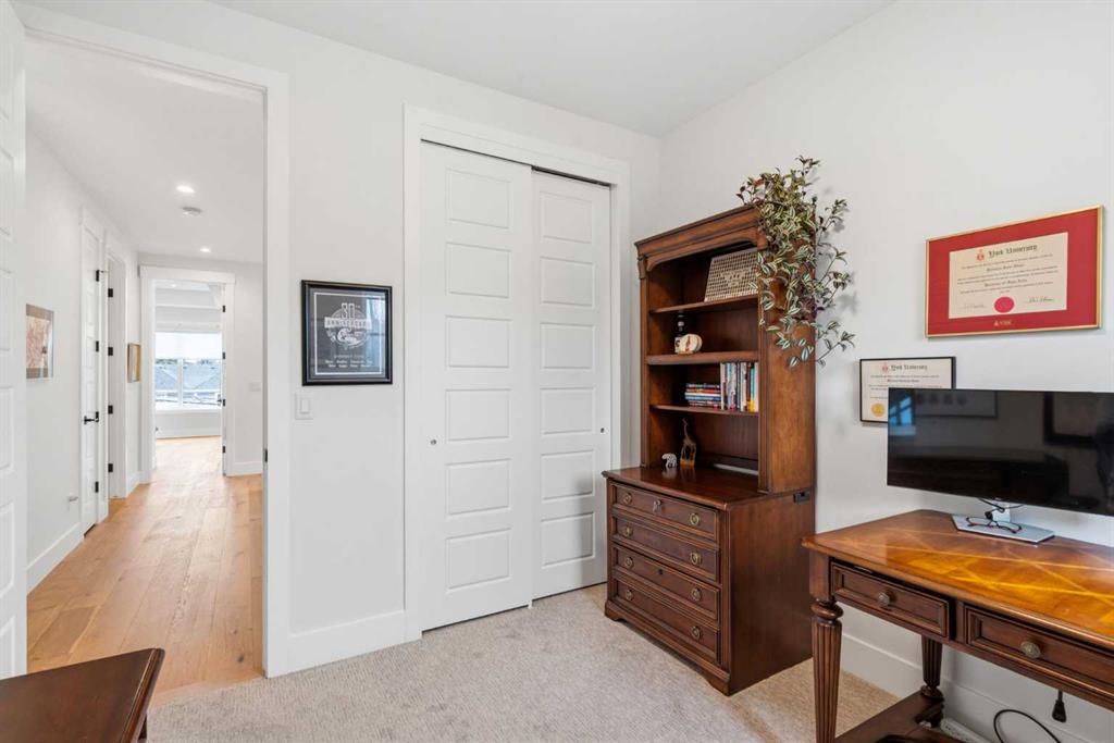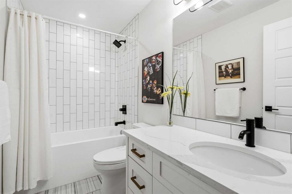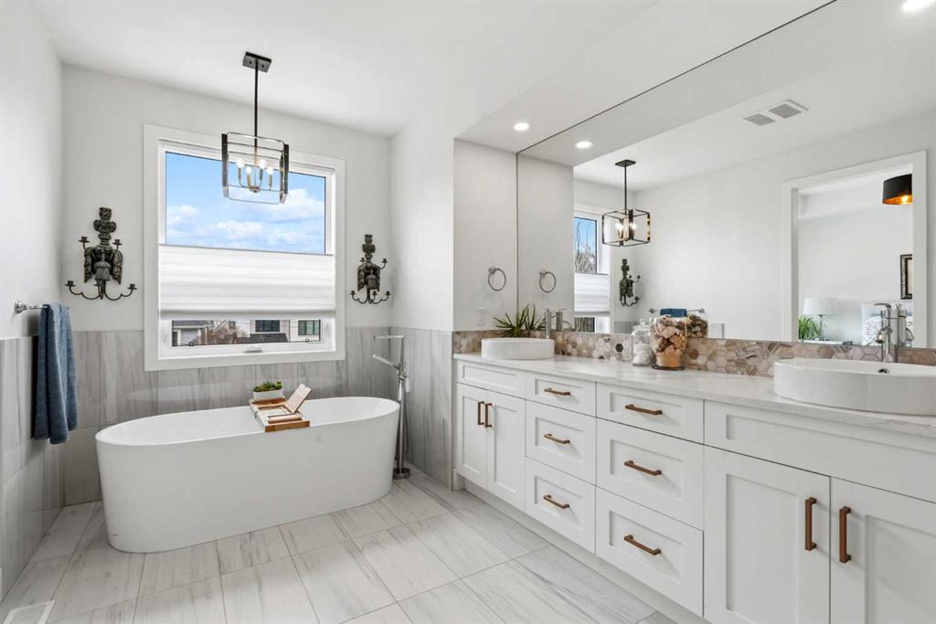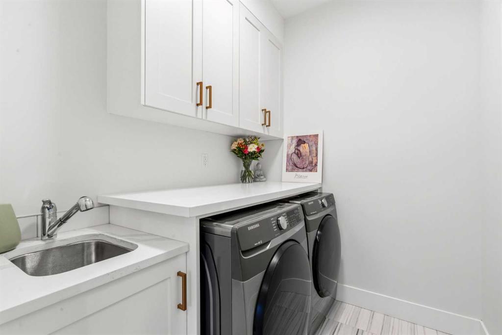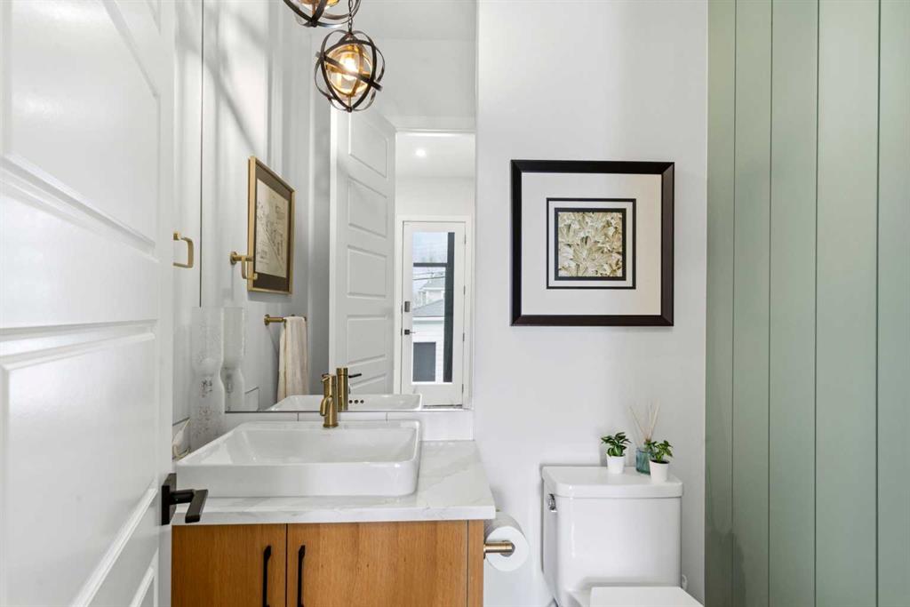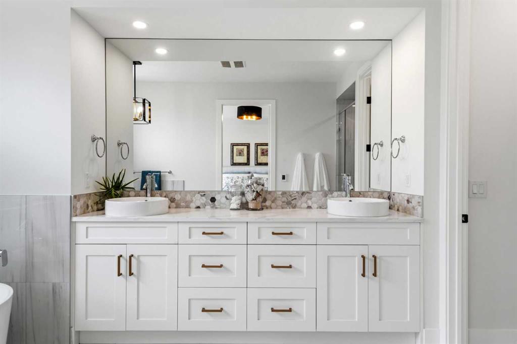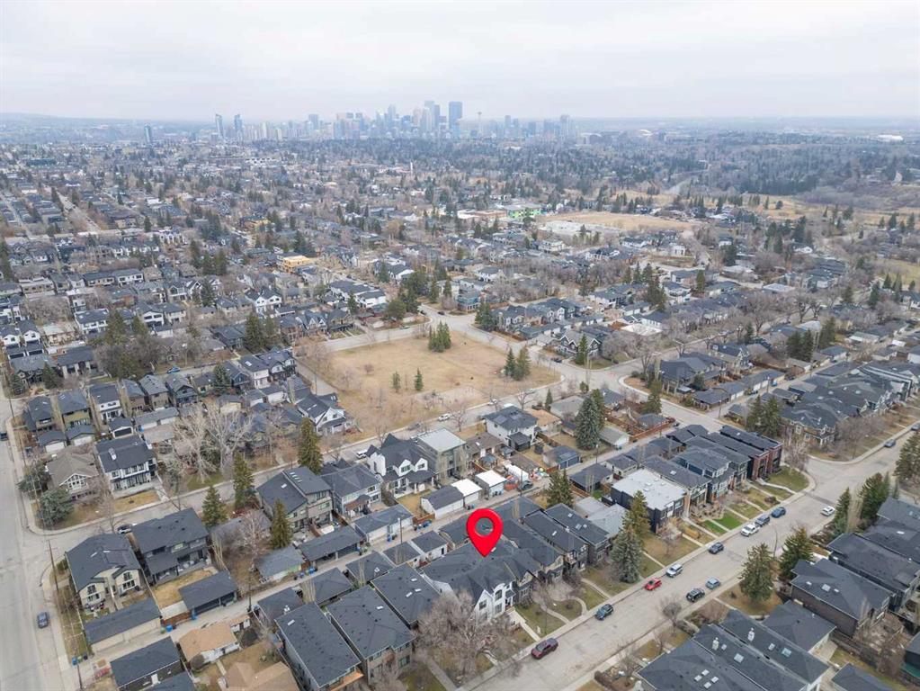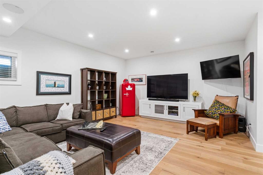 This exceptional, modern farmhouse style home, where architectural refinement & timeless design converge on a quiet, tree-lined street in the heart of Altadore. With 2,836 sq ft of curated living space, this stunning four-bedroom, 3.5 bath residence seamlessly blends upscale finishes with thoughtful functionality. Soaring 10 foot flat ceilings, engineered white oak wood flooring throughout, & striking 8 foot doors enhance the sense of openness & grandeur. Expansive windows flood the open concept main floor with natural light, illuminating a front dining area adorned with a detailed feature wall that flows effortlessly into the chef-inspired kitchen. The kitchen is designed for both everyday living & elegant entertaining & features custom, full height white cabinetry, subway tile backsplash, quartz countertops, a massive two-toned island with an eating bar & premium appliances, including a Bertazzoni gas range, dual full-sized fridge & freezer & drawer style microwave. The inviting living room offers a warm refined atmosphere, with a modern gas fireplace & custom built-ins. Large patio doors open to an expansive rear deck with a Suncoast enclosure featuring a motorized louvre roof and retractable screens – offering all-season outdoor living with adjustable sun, shade, and airflow. The mudroom with custom built-ins & a stylish powder room complete the main level. A dramatic architectural staircase with extra wide wood treads & sleek glass walls leads to the upper floor. The primary suite showcases a tray ceiling and a spacious walk-in closet. A sliding barn door leads to the spa-inspired ensuite, which offers in-floor heating, dual vanities, a freestanding soaker tub, an oversized glass-enclosed shower & a private water closet, delivering a serene experience. Two additional bedrooms, one with a walk-in closet, share a beautiful bathroom, while a dedicated laundry room with cabinetry & sink ensures everyday convenience. The fully finished basement is designed for both relaxation & entertaining, featuring in floor heating, a generous family room, a designer wet bar complete with open shelving, upper & lower cabinetry, & beverage fridge area, plus a fourth bedroom with a large walk-in closet & full bathroom. Enjoy seamless outdoor living with a private front patio, perfect for summer evenings & entertaining. Features include central air conditioning, in-ceiling speakers, custom blinds with blackout in the upstairs bedrooms, plus a fully insulated, drywalled, heated double detached garage with a paved lane. Perfectly positioned in one of Calgary’s most sought-after communities, this residence offers an unmatched lifestyle with exceptional walkability. Enjoy being just moments from River Park, Sandy Beach Park, Monogram Coffee, the vibrant shops, restaurants & cafes of Marda Loop. Quick access to Crowchild, Glenmore & Stoney Trail. This is a meticulously crafted home that delivers sophistication, comfort, and distinction at every turn.