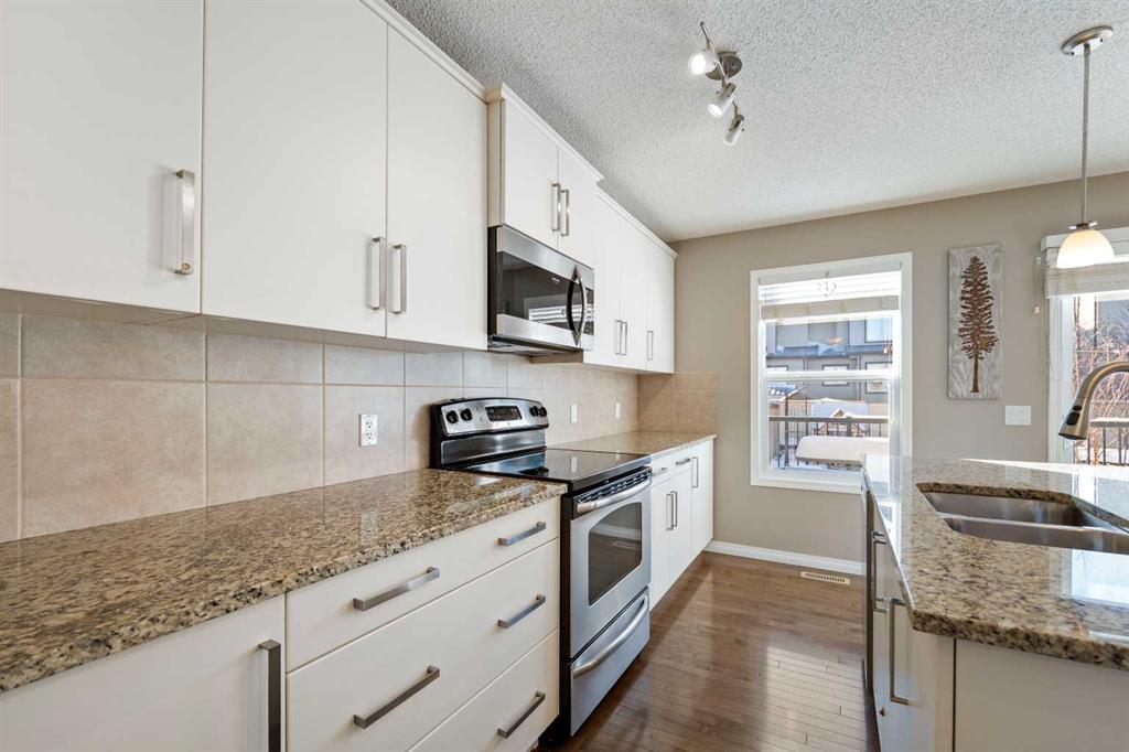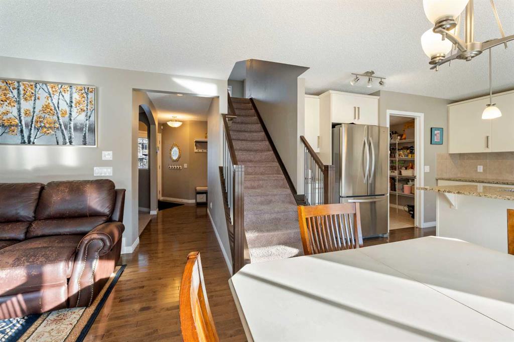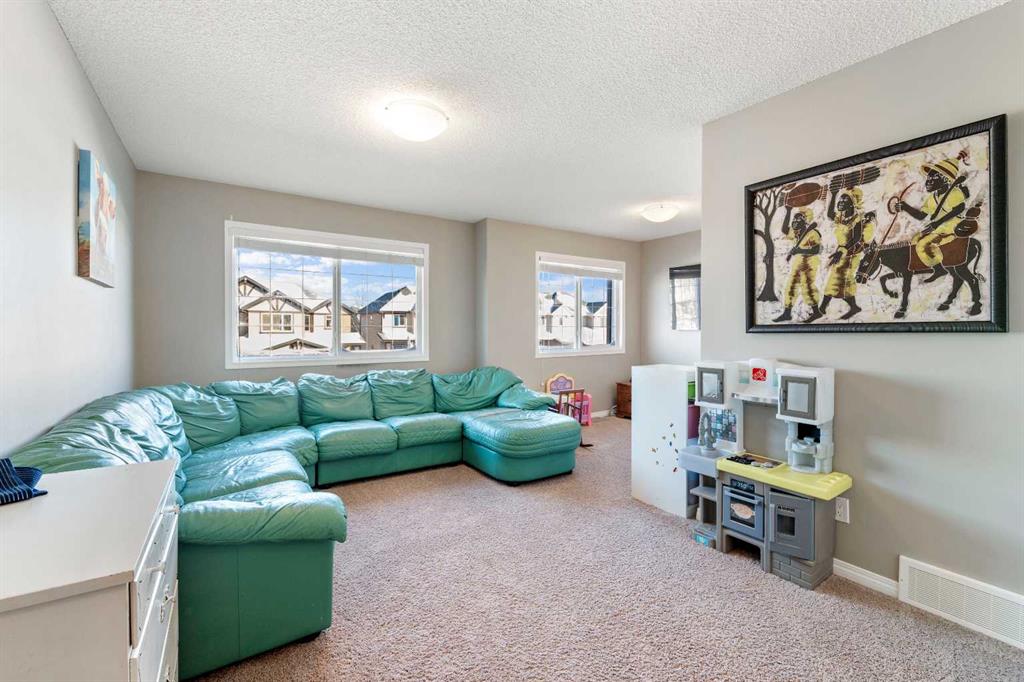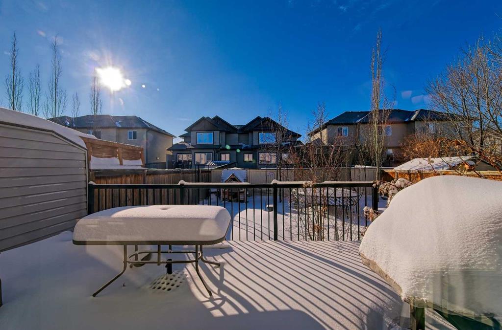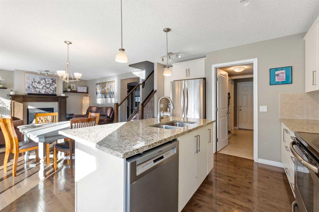 Located in the highly sought-after community of Bayside, this beautifully maintained two-storey home with a double attached garage is sure to impress. The main level showcases hardwood flooring throughout and features a private home office thoughtfully tucked away from the main living areas. A hallway leads to the bright and open living room, complete with a cozy fireplace and a spacious dining area filled with natural light. These spaces flow seamlessly into the stunning kitchen, offering an abundance of white cabinetry, granite countertops with a breakfast bar and a convenient walk-through pantry that connects to the main floor laundry and mudroom with direct access to the oversized double attached garage. A two-piece powder room completes this level. Upstairs, you’ll find a generous bonus room—perfect for family movie nights or a kids’ play area—along with three bedrooms and two full bathrooms. The spacious primary retreat features a four-piece ensuite with a soaker tub, separate shower and walk-in closet. The large unfinished basement is ready for your future development and personal design ideas. Step outside to enjoy the fully fenced and landscaped south-facing backyard, complete with a deck ideal for summer BBQs and entertaining. Additional upgrades include a reverse osmosis water system, Virtuo fresh air system and HEPA air cleaner for enhanced comfort and air quality. Residents of Bayside enjoy year-round activities such as paddle boarding, canoeing, fishing and winter skating. The home is just a short five-minute walk to Nose Creek School and is conveniently close to parks, playgrounds, sports fields, shopping, restaurants and everyday amenities. This exceptional home truly offers the complete package.