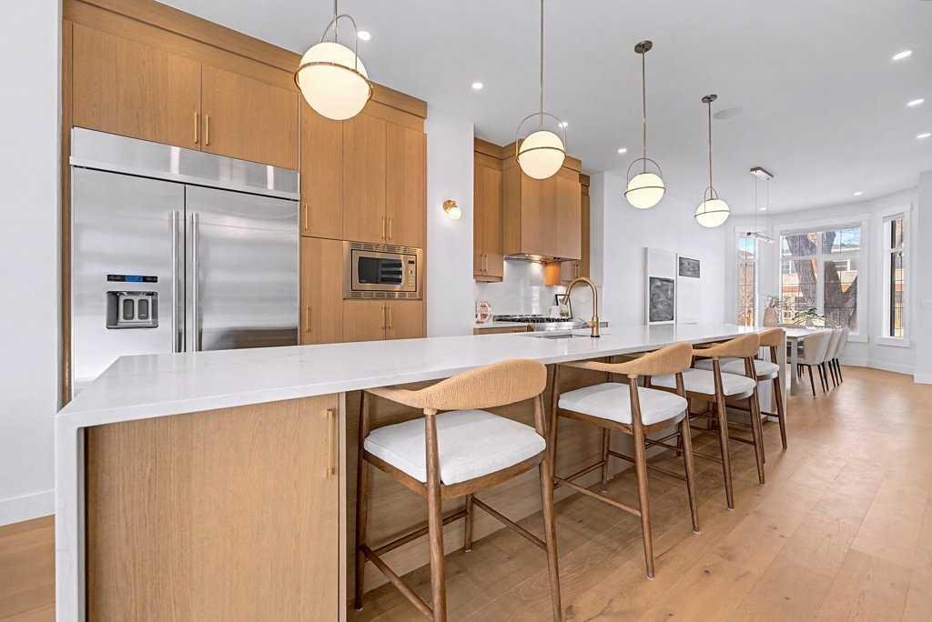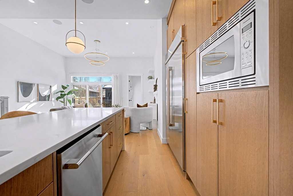 Absolutely STUNNING CURB APPEAL on this 2000 SQ. FT. two-storey (2800 total) in desirable ALTADORE! Classic FULL-BRICK facing & TURRETED roofline, BRICK WINDOW LEDGES, BLACK WINDOWS and MATCHING BLACK METAL ROOFING complete this gorgeous front elevation! Tell your guests to pull up to the nicest-looking house on the street & ring the doorbell! Come see 1935 43 Ave SW! Built in 2022, this home is beautiful and move-in ready! Mature trees grace this community and this front lawn, plus a paver patio, perfect for summer socializing with the neighbours. Step in the front door and you will instantly appreciate 10′ CEILINGS, 8′ interior doors and extensive ENGINEERED HARDWOOD flooring (running through the main level, upper level & both staircases)! Do you like to entertain? How about an ISLAND THAT IS ROUGHLY 16′ LONG with stylish STONE COUNTERS, completed by ‘WATERFALL’ end panels! Plenty of room at the island, and in the SPACIOUS EATING AREA where you can comfortably seat the entire family! Fantastic kitchen, with perimeter CABINETS TO THE CEILING, ELEGANT CROWN MOULD DETAILING, UNDER-CABINET LIGHTING, plus STAINLESS-STEEL APPLIANCES including a fantastic SIX-BURNER GAS-STOVE for those delicious meals you like to serve. HUGE FRIDGE, WALL OVEN and BUILT IN MICROWAVE! The kitchen also features a CUSTOM VENTED HOOD over the stove, SOFT-CLOSE drawers, PULL-OUT SHELVES and an ADDED SERVING COUNTER with beverage fridge adjacent to the staircase. Enjoy a quiet evening in the living room with a cozy gas fireplace or step out the triple panel slider doors to your back deck for a summer BBQ (also accessible through the mudroom). When you park in the double garage – enter through the back mudroom (with BUILT-IN LOCKER units). For a game or an evening movie, head downstairs. The lower level has another bedroom and full bathroom, office space (with built-in shelving) and a bar area siding onto the rec room. IN-SLAB HEAT keeps your basement toasty all year round! The upper floor of this beautiful home has three spacious bedrooms, laundry and two bathrooms. The primary bedroom is three steps up, giving separation from the rest of the upper level. It also boasts a spa-like ensuite, with deep soaker tub and fully tiled steam shower (with inset wall niche for organization), plus walk-in closet with organizers. You will love the south-facing balcony off the primary bedroom for a quiet start to your day, or some sunshine in the afternoon. This home is beautifully finished with ‘rose-gold’ accents on the plumbing and light fixtures. Generous built-ins and added cabinetry storage spaces throughout the home. Large windows for plenty of natural lighting. The community of Altadore borders east & south to vast greenspaces, connecting you to river pathways, Glenmore Athletic Park, Glenmore Aquatic & Fitness Centre plus reservoir pathways where you can walk or cycle as much as you please! Perfectly located and beautifully finished. Book your showing today!