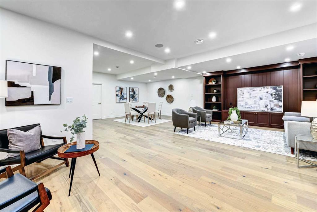 Open House Saturday & Sunday 2–4PM. Set on a quiet street in the heart of Marda Loop, The Bardot is an exceptional custom residence that blends refined French-Country character with contemporary luxury. Thoughtfully designed and built by Cedar Rock Homes with interiors curated by Aly Velji Designs, this home offers four bedrooms, 4.5 bathrooms, and a rare triple-car garage. The striking exterior showcases a sophisticated mix of stone, stucco, and Hardie panel, accented by an aluminum cedar soffit entry, statement front door, and custom aluminum Lux windows with black interior cladding. The fully landscaped and fenced backyard is designed for low-maintenance enjoyment and features a generous composite patio with aluminum and glass railing, creating a private outdoor retreat. Inside, wide plank white oak engineered hardwood flooring flows throughout all levels, complemented by solid core doors and custom site-built cabinetry with wood dovetail drawers. Soaring 10-foot ceilings on the main floor and 9-foot ceilings on both the upper and lower levels enhance the home’s bright and open feel. The main living area is anchored by a cozy gas fireplace and transitions seamlessly into the chef-inspired kitchen featuring a premium JennAir appliance package, including a 48-inch gas range, 48-inch panelled refrigerator, panelled dishwasher, and a microwave drawer integrated into the island with additional storage on both sides. A curved quartz slab island, custom cabinetry, and a bespoke hood fan create a stunning focal point, while the adjacent butler’s pantry adds extended storage and elevated lighting. The dining space is highlighted by a custom oak sideboard, and a spacious mudroom with tailored millwork ensures everyday functionality. A private front office is thoughtfully designed with French doors, floor plugs, and custom glass-front cabinetry. Upstairs, three generously sized bedrooms each feature walk-in closets and private ensuites with heated tile flooring. The primary retreat is highlighted by vaulted ceilings and a spa-inspired ensuite complete with an oversized steam shower with dual rain heads, a freestanding tub, solid slab stone backsplash, and custom hanging mirrors. A beautifully finished upper-level laundry room with sink, hanging rod, and custom cabinetry completes the floor. The fully finished basement expands the living space with a gym, TV and games area, wet bar with beverage fridge, full bathroom, and ample storage. Mechanically, the home is equipped with dual-zone high-efficiency furnaces with humidifiers, along with rough-ins for in-floor basement heating, air conditioning, central vacuum, speakers, security system, and exterior cameras. Every detail of The Bardot reflects intentional design, superior craftsmanship, and timeless appeal, all just steps from Marda Loop’s vibrant shops, restaurants, parks, schools, and only minutes from downtown Calgary