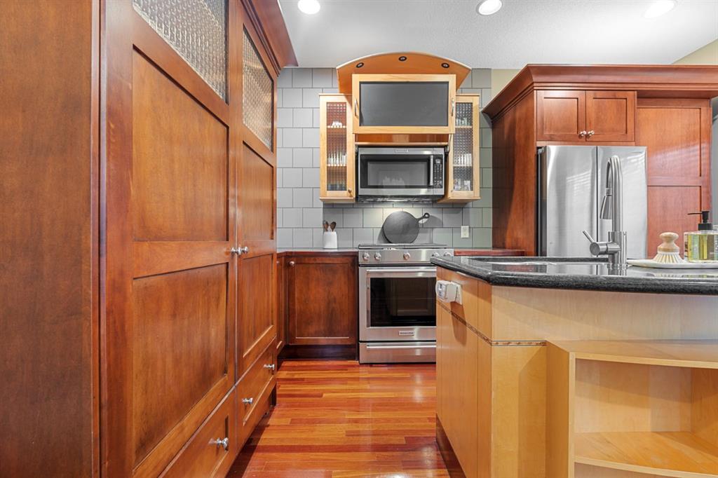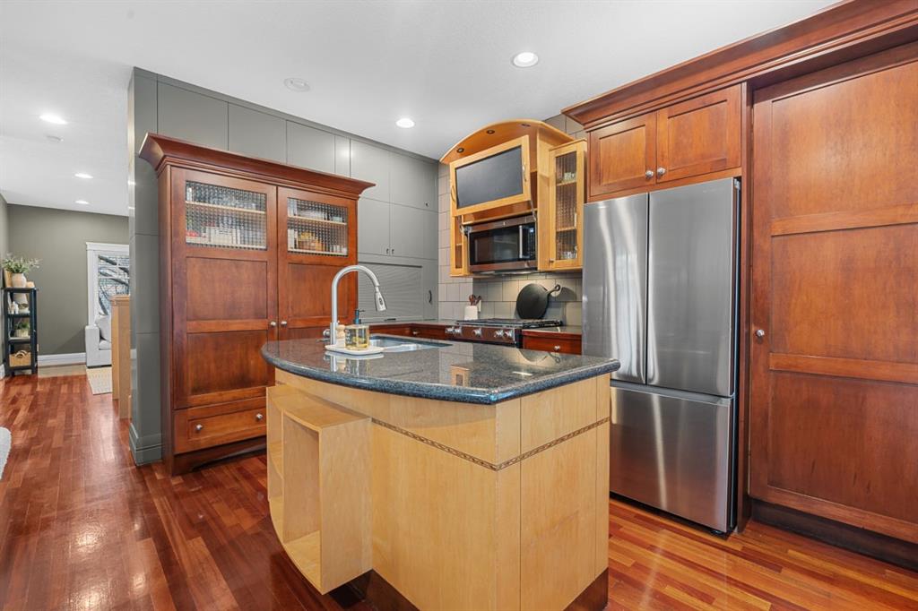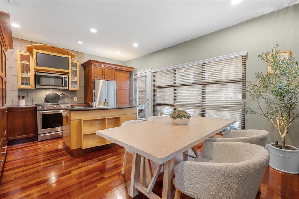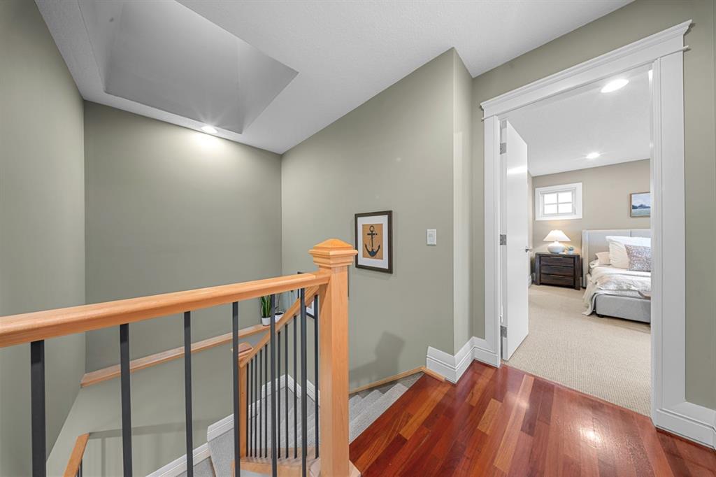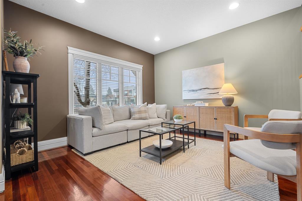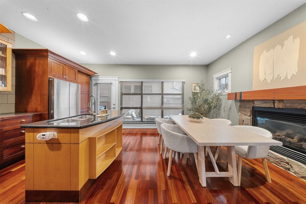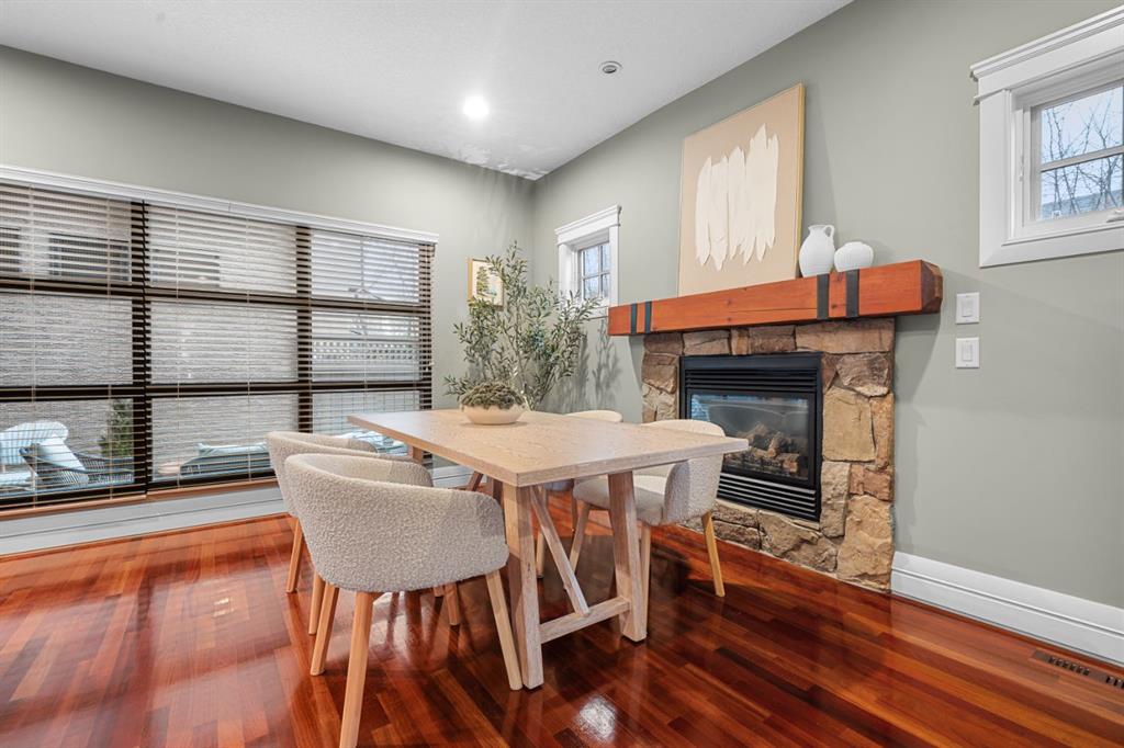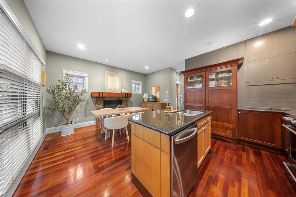 Welcome to the vibrant and highly sought-after community of Killarney! Rarely do you find a prime location like this that’s just steps away from the 17th Avenue’s incredible variety of restaurants, cafes, pubs and shops. Commuting and transit options are ideal with easy access to major roads like Crowchild and Glenmore Trail, a bus route one block away that takes you straight to the downtown core, while Calgary’s only underground LRT station is not far off! Great schools, greenspaces, parks, off leash areas, Killarney Aquatic and Rec Centre, the public library, local favourites like Newcastle Pub, and so much more! This location delivers the perfect balance of quiet charm and city accessibility. Tucked among mature trees, this 4-bedroom, semi-detached home reaps the benefits that come with townhouse ownership. Part of an exclusive, custom built development consisting of two separate semi-detached residences, this property offers privacy and a sense of space that’s hard to find at this price point. From the moment you step into the home from the sheltered front porch, you’re welcomed into a bright and inviting interior with soaring ceilings and site-finished Cherry hardwood flooring that flows throughout the main level. The spacious living room shows off architectural details and masterfully finished millwork that you’ll discover throughout the rest of the living spaces. The kitchen is truly the heart of the home, offering a warm, timeless feel with custom cabinetry, a quartz covered island, and high-end stainless-steel appliances accentuated by an incredible gas range. This space connects with the dining area, where a natural stone fireplace with a wood beam mantle creates a cozy and inviting atmosphere for everyday living or entertaining. Large windows flood the space with natural light. Outside, enjoy your own private patio that’s equipped with a gas line, ideal for BBQs, sipping on your morning coffee, and making the most of warm evenings and outdoor gatherings. Upstairs, a skylight draws sunlight through the stairwell, leading to a peaceful primary retreat. This bedroom is complete with a huge walk-in closet and generously sized 5-piece ensuite featuring dual sinks, a tiled shower, and a soaker tub. Two additional bedrooms offer flexibility with a unique sliding door design, allowing the space to adapt to your needs. The 5-piece main bathroom is also equipped with dual sinks, a feature that isn’t common for the area, but can be appreciated by families of all sizes. The fully developed basement is incredibly designed for flexibility. With high ceilings, a massive rec room is perfect for a home theatre and media setup, hobby area, gym, playroom, etc. The large bedroom provides great accommodations for guests, family and friends. Also included is a single detached garage, & upgrades like central A/C, & a tankless hot water system. This is more than just a home — it’s a lifestyle! One that combines comfort, character, and location in a way that’s rarely available.
