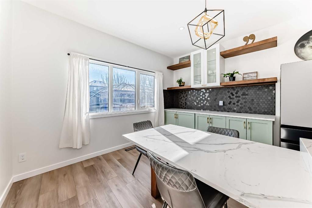 Step inside and you’ll immediately notice how bright and inviting the main floor feels, with new windows and doors allowing natural light to pour in. The living area is anchored by a custom feature wall with a contemporary electric fireplace, creating a warm and modern focal point. The fully updated custom kitchen is truly the heart of the home, complete with new appliances, updated lighting, luxury vinyl flooring and an oversized waterfall quartz island with matching table. Perfectly designed for everyday living and effortless entertaining.