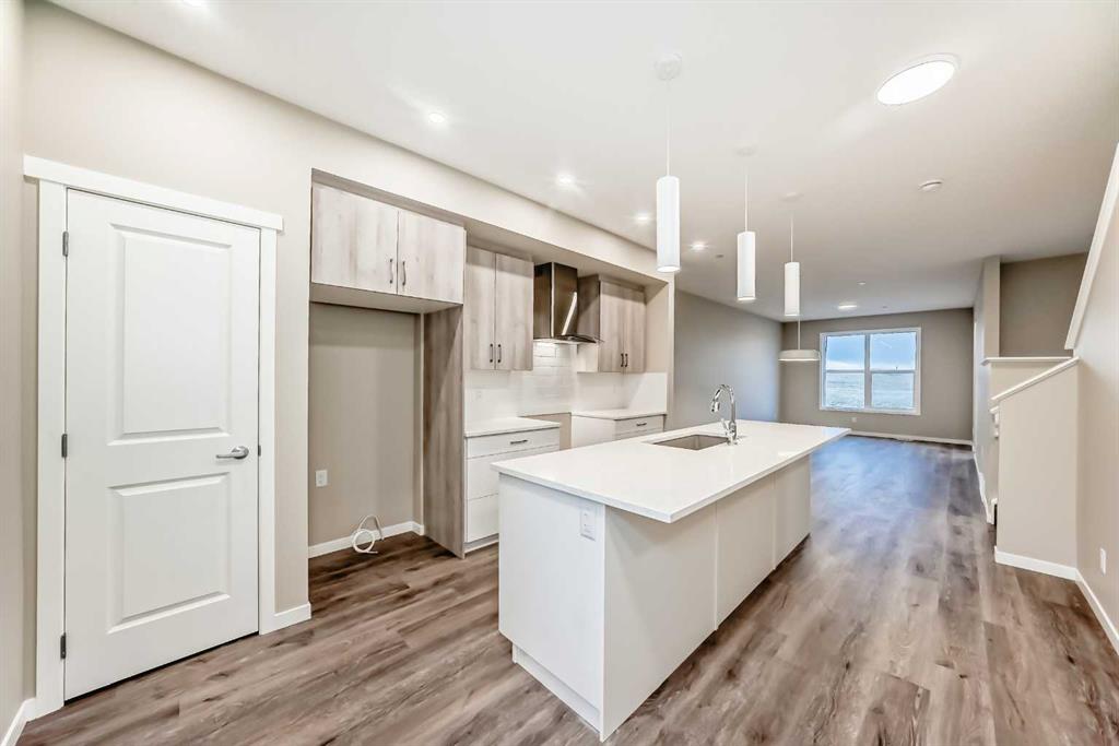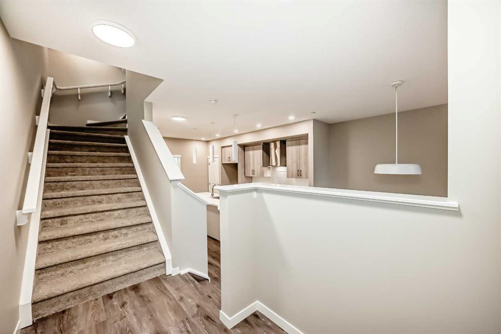 This brand-new “Rayn” pairs stylish family living with built-in flexibility thanks to a separate side entrance—perfect for a future suite or private lower-level development (A secondary suite would be subject to approval and permitting by the city/municipality). Inside, the main level impresses with warm natural vinyl plank flooring and modern finishes throughout. The central kitchen is the showpiece: natural wood-tone cabinetry to the bulkhead, sleek subway backsplash, chimney hood fan, stainless steel appliances, and bright white quartz that wraps an oversized island—ideal for coffee catch-ups or weekend entertaining. The dining area sits perfectly between kitchen and living, comfortably fitting an extended table for holidays. At the rear, the living room features floor-to-ceiling windows for great light, plus a smartly tucked back entry with a 2-piece bath. Two unique spaces elevate daily life: a versatile flex room just off the kitchen (home office, playroom, or gym) and a raised homework/tech nook overlooking the main floor—clean, functional, and surprisingly fun. Upstairs, a cozy bonus room anchors the level (movie nights, play space, or reading corner). The primary retreat sits quietly at the back with an oversized window, a generous walk-in closet, and a stylish 4-piece ensuite featuring dual sinks and a full-size shower—finishes you’d expect in a much larger home.