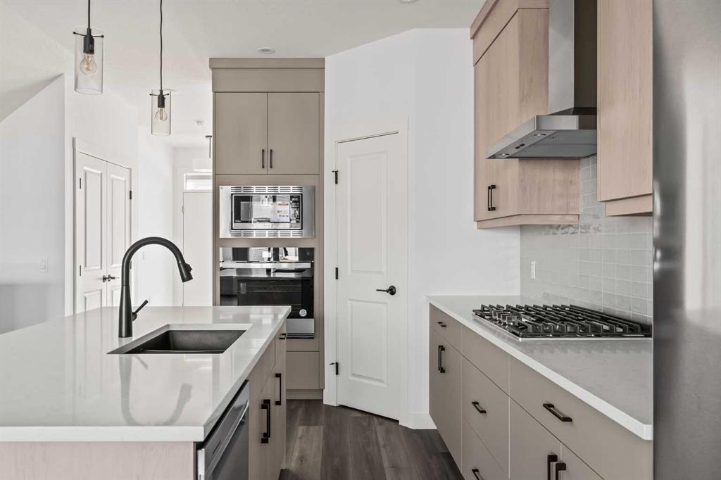 The Carlisle 2 is a thoughtfully designed home offering nearly 1,900 sq. ft. of beautifully planned living space, complete with 3 bedrooms, 2.5 bathrooms, a main floor office/flex room, an upper-level bonus room, and a full basement. Perfect for families or professionals, this home combines functionality with modern style. The open-concept main level is bright and inviting, with 9-foot ceilings, luxury vinyl plank flooring, and oversized front and rear windows that fill the home with natural light all day long. A versatile den/flex room on the main level makes the perfect home office, study, or playroom. At the heart of the home, the gourmet kitchen features full-height cabinetry, quartz countertops, a spacious corner pantry, and a large central island with a flush eating bar. A premium stainless steel appliance package is included, complete with a built-in oven and microwave, chimney hood fan, and cooktop. The kitchen overlooks both the dining area and the great room, making it the ideal space for entertaining or everyday family living. A rear entrance leads to the private backyard, complete with a BBQ gas line for everyday convenience and the main level is complete with a 2pc powder room. Upstairs, a central bonus room separates the spacious primary suite from the secondary bedrooms, providing privacy and flexibility. The sun-filled primary retreat includes a walk-in closet and a 4-piece ensuite with dual sinks and a walk-in shower. Two additional bedrooms, a full bathroom, and a convenient upper laundry room complete this level. The basement offers endless opportunities for future development, with 9’ foundation walls, rough-ins for a 4-piece bathroom and sink, oversized windows, and private backyard access via the side entrance. Located in the vibrant community of Seton, this brand-new home will be move-in ready this fall and is just steps from countless amenities and the South Calgary Health Campus. Builder warranty and Alberta New Home Warranty allow you to purchase with peace of mind – start enjoying your brand new home this fall! Note: Home is under construction. Photos are of a showhome model and not an exact representation of the property for sale.