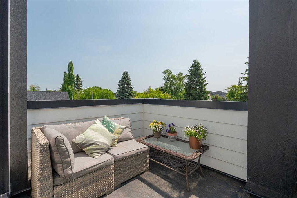 Welcome to this gorgeous and extremely well-maintained townhome, perfectly situated in a quiet triplex in the heart of the highly sought-after community of Tuxedo Park. This stylish and spacious home offers the rare combination of four bedrooms and four full bathrooms—including three private ensuites—as well as a convenient half bath on the main level, ideal for guests and everyday living. Built in 2020 and still under Alberta New Home Warranty, this townhome blends modern luxury with timeless functionality. From the moment you step inside, you’re welcomed by soaring 10-foot ceilings and rich, clean finishes—no carpet throughout the entire home for a sleek, low-maintenance lifestyle. The open-concept main floor features quartz countertops, stainless steel appliances, a full pantry, and elegant honeycomb blinds, creating a warm and inviting space for entertaining or simply relaxing at home. The crown jewel of the home is the third-floor private primary retreat. This level is dedicated entirely to your comfort, complete with a full ensuite, a generous bedroom space, and a stunning south-facing balcony with downtown views. It’s the perfect spot to start your day with a quiet coffee or unwind in the evening with the city skyline as your backdrop. For added convenience, a large private storage unit is located just off the balcony—ideal for seasonal items or extra storage. Air conditioning ensures you’re comfortable all summer long, and Hardie board siding offers both durability and curb appeal. A shared double garage provides secure parking ,while the location puts you right in the middle of everything—steps from the incredible dining options along Centre Street, the beautiful green spaces of Tuxedo and Monroe Park, Italian markets, grocery stores, transit, and so much more. Whether you’re a growing family, professional couple, or savvy investor, this turnkey property offers the perfect blend of space, style, and location. Don’t miss your chance to own a piece of Tuxedo Park charm with all the modern upgrades you’ve been dreaming of.