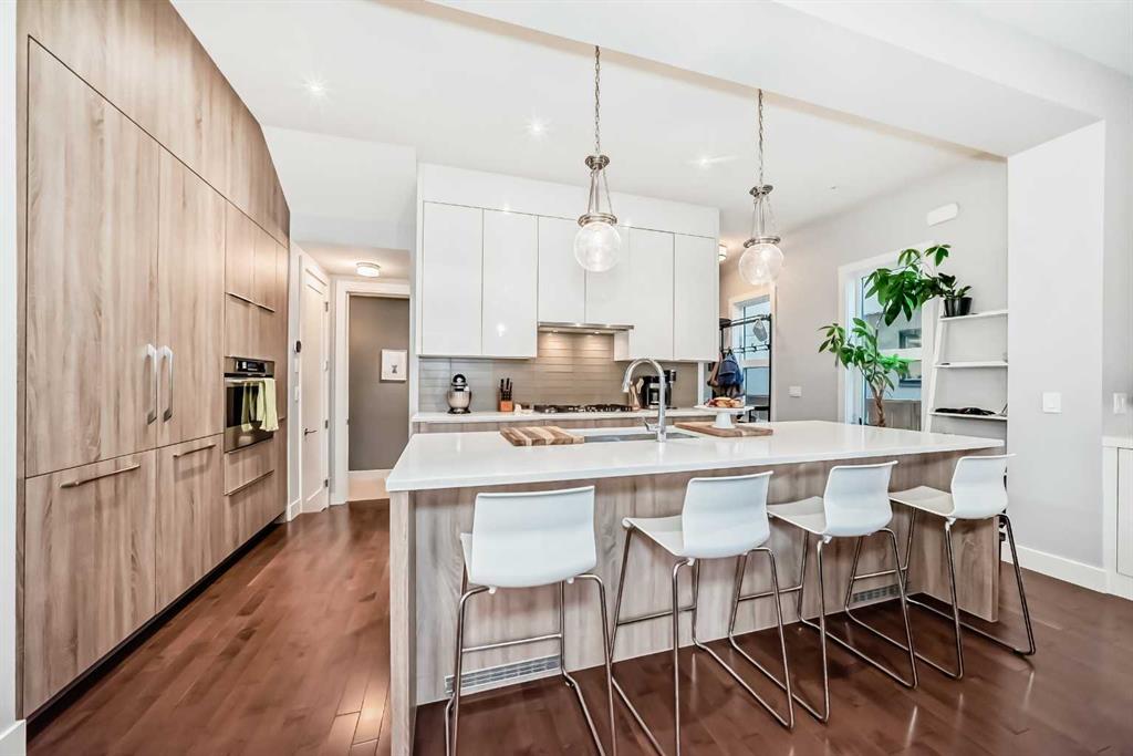 The home itself matches the neighbourhood — exceptional. This fully finished 3 bed, 3.5 bath unit in a well-managed fourplex was built in 2015 and offers soaring 10 ft ceilings, 8 ft doors, and engineered hardwood flooring throughout the main level with 9 ft ceilings on the upper floor and in the basement.