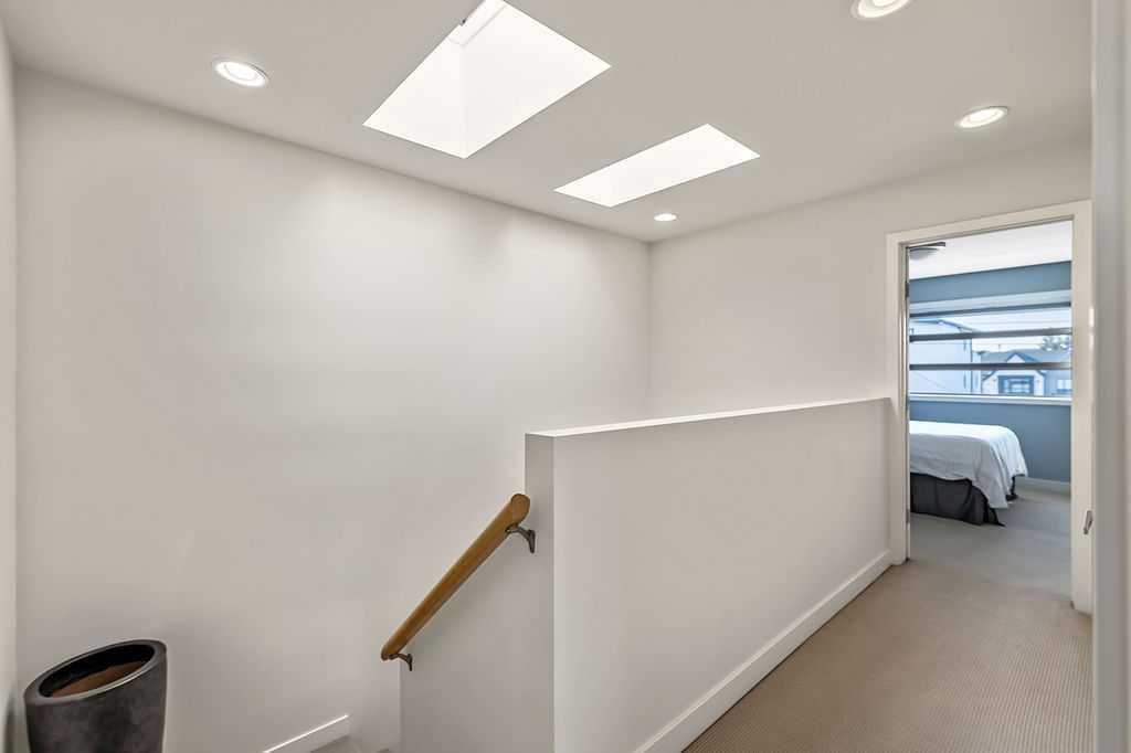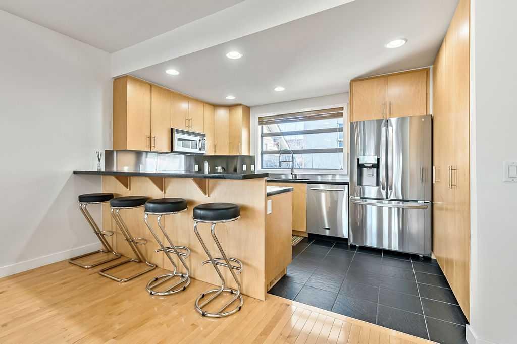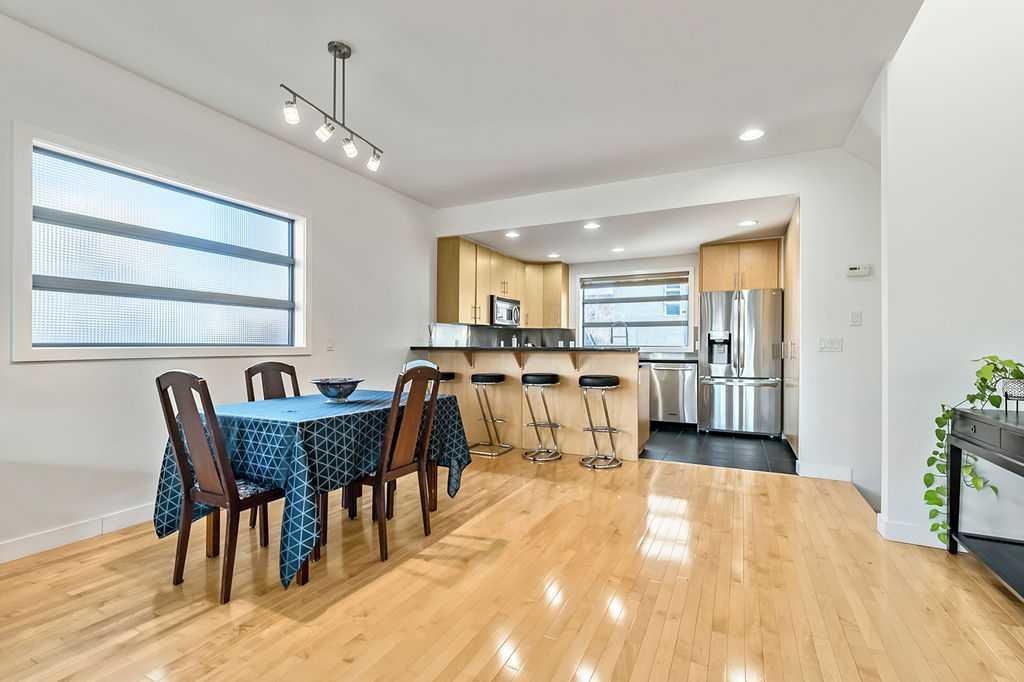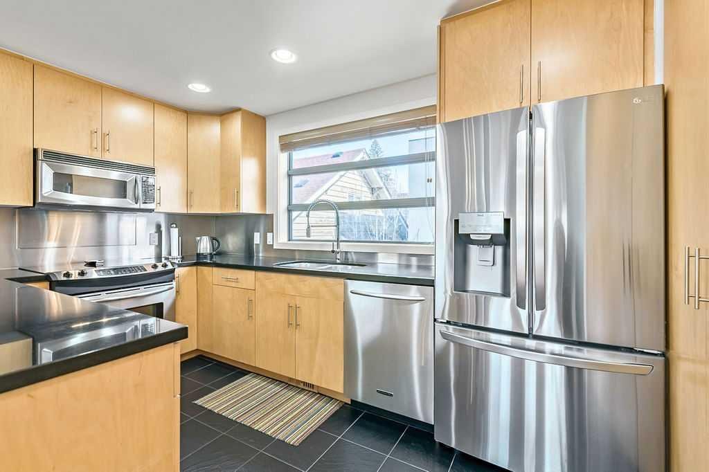 Beautiful, spacious and bright townhouse/condo in a great location! Only one owner has lived here and it shows – pride of ownership is evident! Tucked away from the street, you will enter into a ground level generous flex room with heated floors and plenty of windows. This room is ideal for an office, workout space, games room or mudroom. The heated attached garage is accessible from this level so no need to go outside into the cold! Moving up to the main floor, you will find a large open concept living space with 9′ ceilings, hardwood floors, kitchen with maple cabinets & breakfast bar, spacious dining area and living room with gas fireplace & modern built-ins. There is lots of natural light in here from windows on three sides as well as the living room opening up to a spacious west facing deck. Upstairs are 2 good sized bedrooms with each their own 4 piece bathrooms. The primary ensuite is complete with enclosed shower, soaker tub and large walk-in closet. Laundry is conveniently on this level and 2 skylights add more natural light to this level. This 4 unit complex had upgrades to the roof, balconies, siding and exterior paint in 2025. The home is in such a desirable location! It is close to parks, downtown, public transit (8 minute walk to Westbrook LRT), schools, shopping, restaurants, golf, the Killarney recreation center and much more. The best of inner city living!