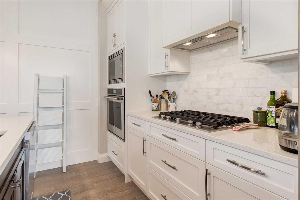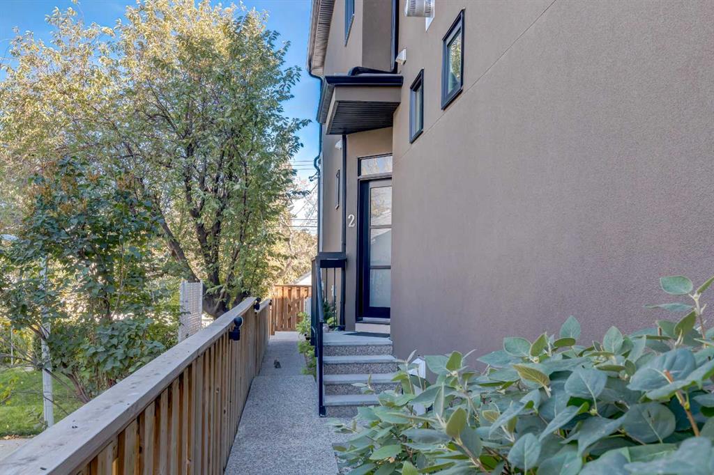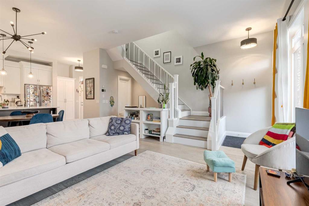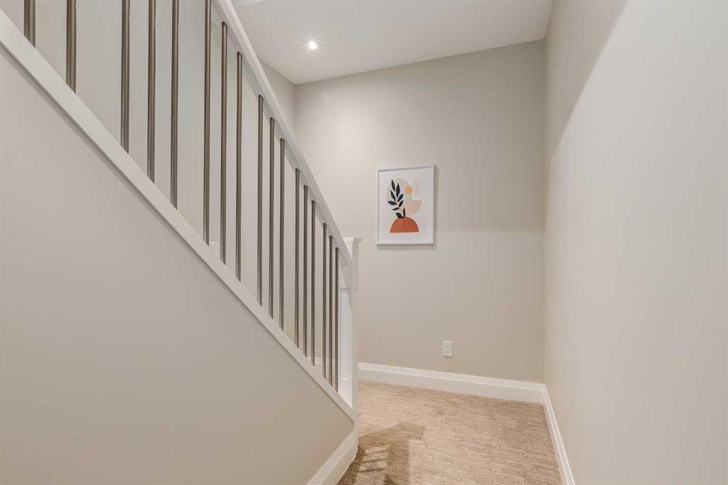 Immaculate, Modern, and Quiet 2 Storey 3 Bdrm 3.5 bathroom townhome in the heart of Killarney. This home offers a beautiful open great room layout, that is flooded with natural light from its full wall of floor to ceiling windows. 10 foot ceilings on the main. Striking gas fireplace in great room with built in shelving. The white kitchen offers a sprawling island with built in stainless steel appliances, gas cooktop, huge crown moulding, quartz countertop and is accented by floor to ceiling millwork. New light fixtures throughout the main floor, and hard flooring on the main and upper floor. The upper floor has 2 bedrooms each with their own 4 piece ensuite. The Primary bedroom is spacious and has a large walk in closet, the ensuite offers dual sinks and tiled shower. Upper floor laundry for the ultimate in convenience. The lower level is finished to the same level as the upper floors, there is a 2rd bedroom full washroom, and cozy flex room. Private and quiet patio space that enjoys an east and southern exposure. Indoor garage parking for one vehicle. This complex is meticulously maintained by a wonderful community of owners. One visitor parking stall available at rear of complex. Superior location within walking distance to the Shaganappi Point LRT station, Walmart, and just a 5 minute drive to DT.