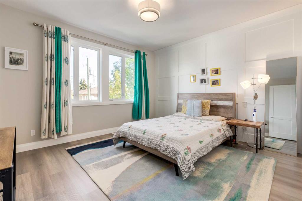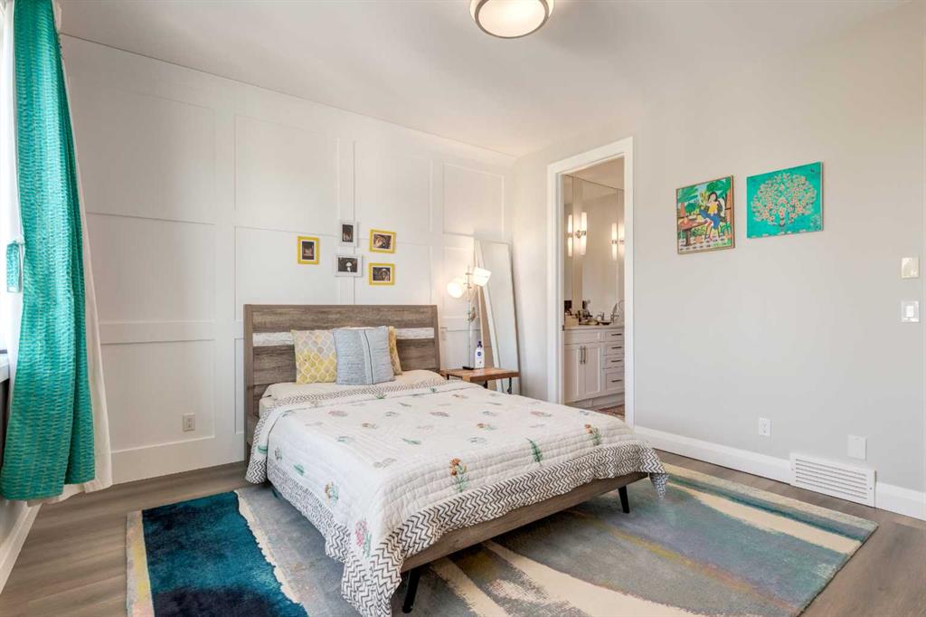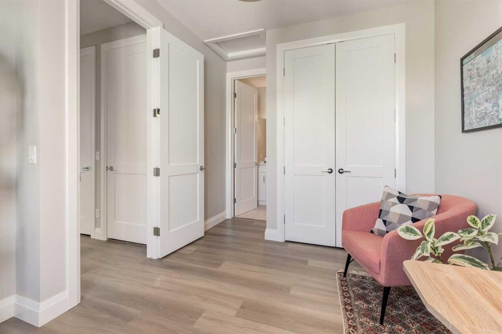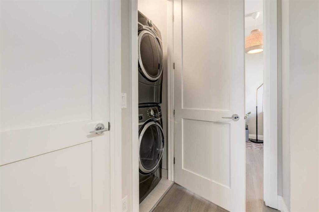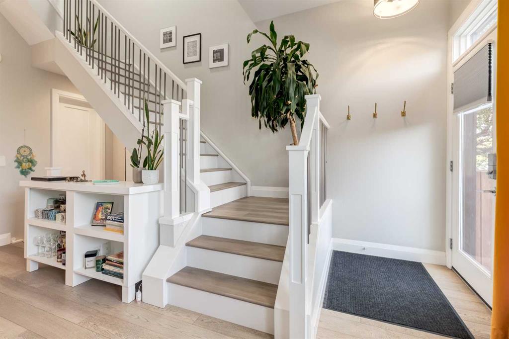 Immaculate, Modern, and Quiet 2 Storey 3 Bdrm 3.5 bathroom townhome in the heart of Killarney. This home offers a beautiful open great room layout, that is flooded with natural light from its full wall of floor to ceiling windows. 10 foot ceilings on the main. Striking gas fireplace in great room with built in shelving. The white kitchen offers a sprawling island with built in stainless steel appliances, gas cooktop, huge crown moulding, quartz countertop and is accented by floor to ceiling millwork. New light fixtures throughout the main floor, and hard flooring on the main and upper floor. The upper floor has 2 bedrooms each with their own 4 piece ensuite. The Primary bedroom is spacious and has a large walk in closet, the ensuite offers dual sinks and tiled shower. Upper floor laundry for the ultimate in convenience. The lower level is finished to the same level as the upper floors, there is a 2rd bedroom full washroom, and cozy flex room. Private and quiet patio space that enjoys an east and southern exposure. Indoor garage parking for one vehicle. This complex is meticulously maintained by a wonderful community of owners. One visitor parking stall available at rear of complex. Superior location within walking distance to the Shaganappi Point LRT station, Walmart, and just a 5 minute drive to DT.