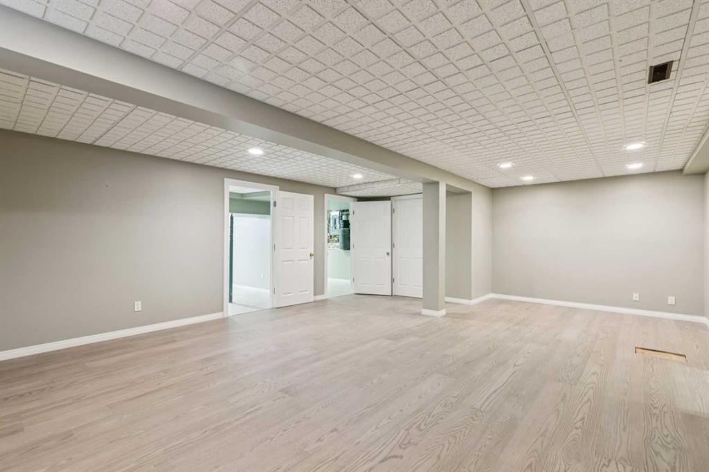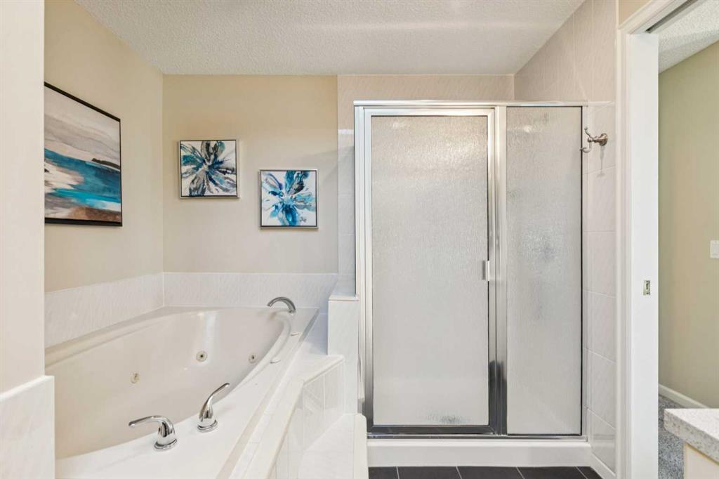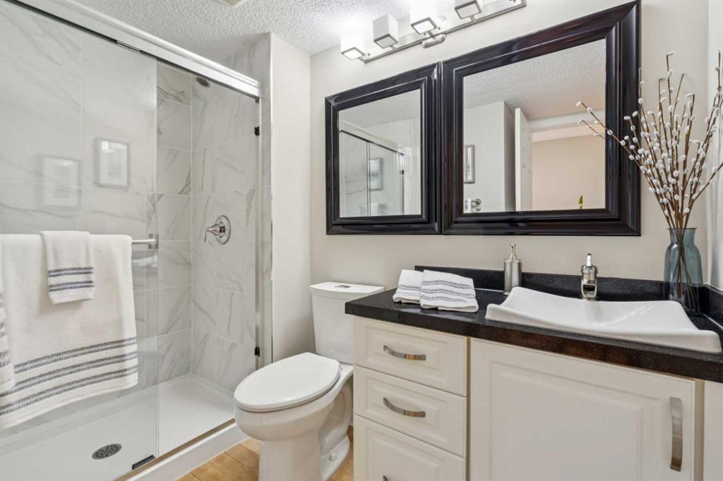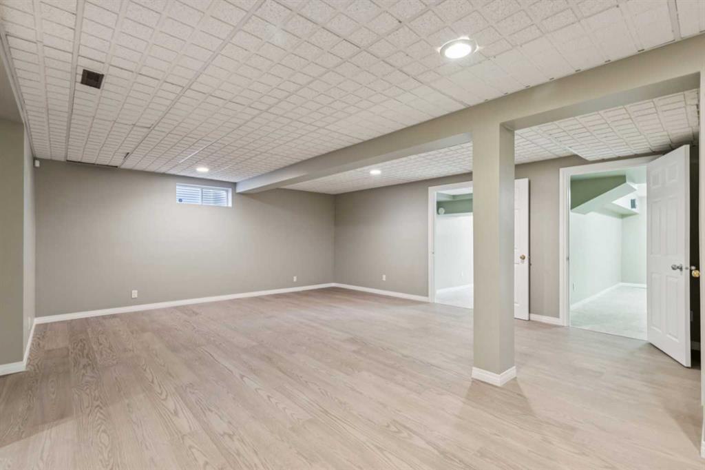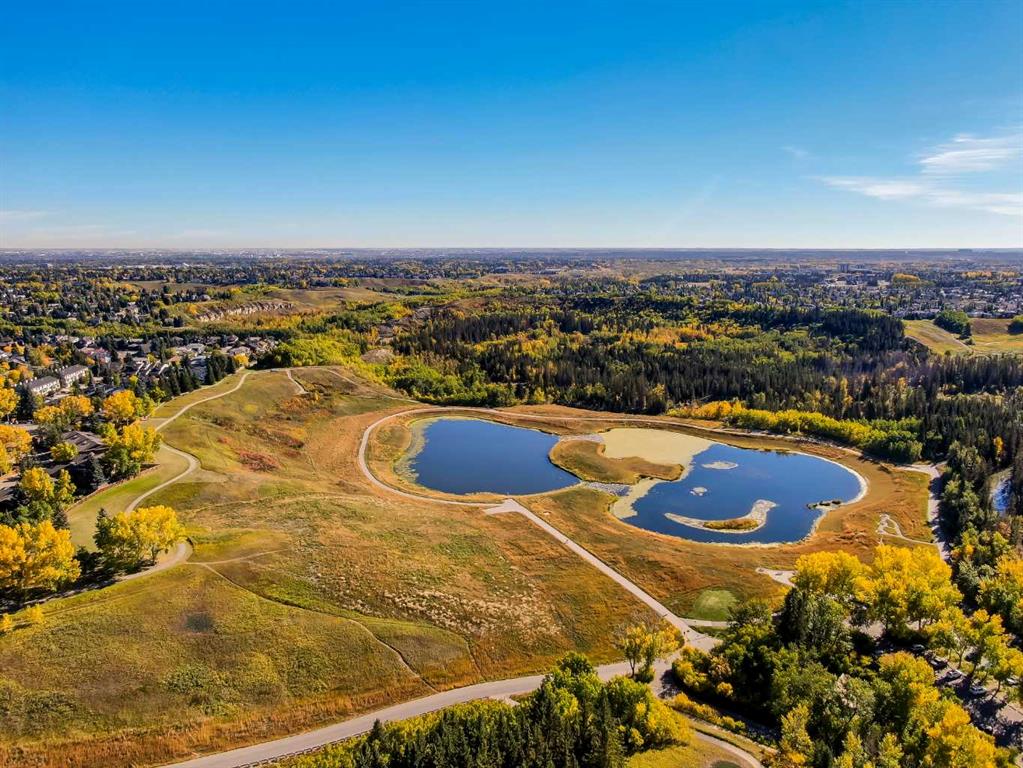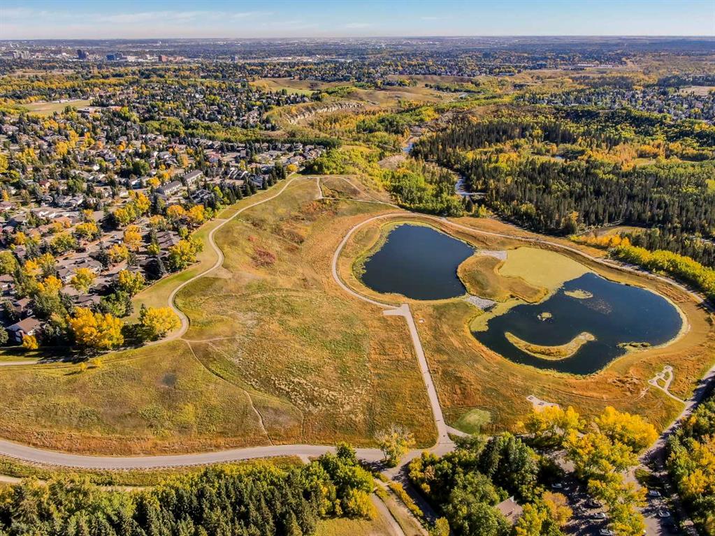STYLISH, TASTEFULLY RENOVATED TOWNHOME offering 3 BEDROOMS and a MAIN FLOOR DEN plus FINISHED BASEMENT and ATTACHED DOUBLE GARAGE with private driveway that will hold another two cars. AMAZING LOCATION! This complex backs to FISH CREEK PARK and offers easy access to the parks and pathways for outdoor adventures. MANY UPGRADES! New upstairs windows (2022), new furnace (2025), and 2 new hot water tanks (2025), water softener (2025), central air (2022), main floor bath upgraded to a 3-piece, new oven and stovetop in kitchen (2022). Huge primary bedroom has a 5-piece ensuite (jetted tub, separate shower, skylight). This is a home that you really must see!