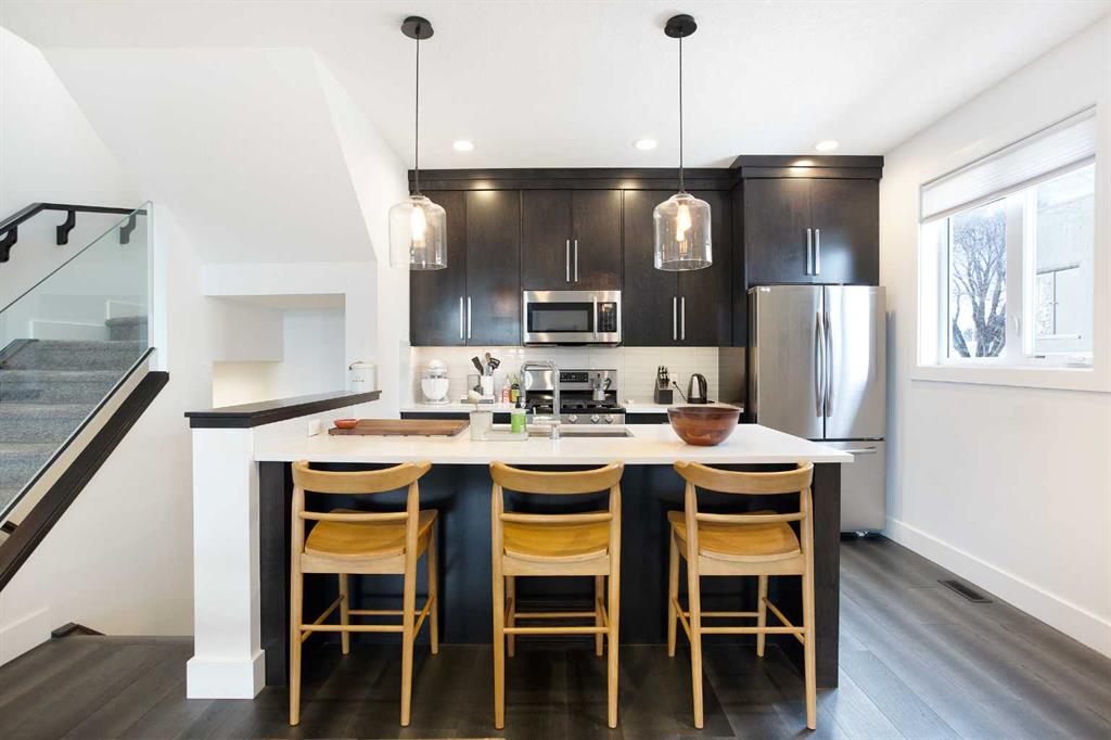 Welcome to this beautifully appointed 3-bedroom, 3.5-bathroom townhome in the heart of Killarney. This rare walkout design offers exceptional functionality, featuring a private yard and a single detached garage. The main floor showcases quartz countertops, stainless steel appliances, air conditioning, and a bright, open concept layout perfect for everyday living and entertaining. Upstairs, both bedrooms feature their own private ensuites, including a spacious primary retreat complete with a large walk-in closet. The fully developed walkout basement adds incredible versatility with a third bedroom, full bathroom, and generous living space ideal for guests, a home office, or additional family room. A rare opportunity to own a walkout townhome in one of Calgary’s most sought after inner-city communities.