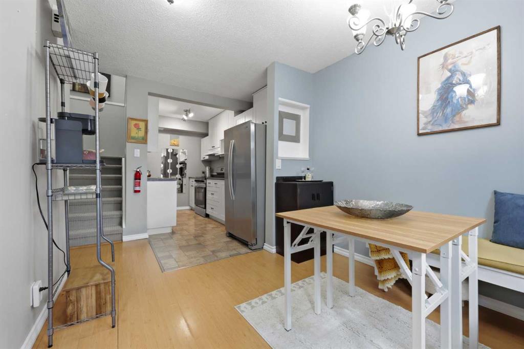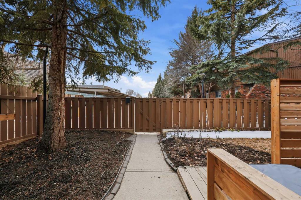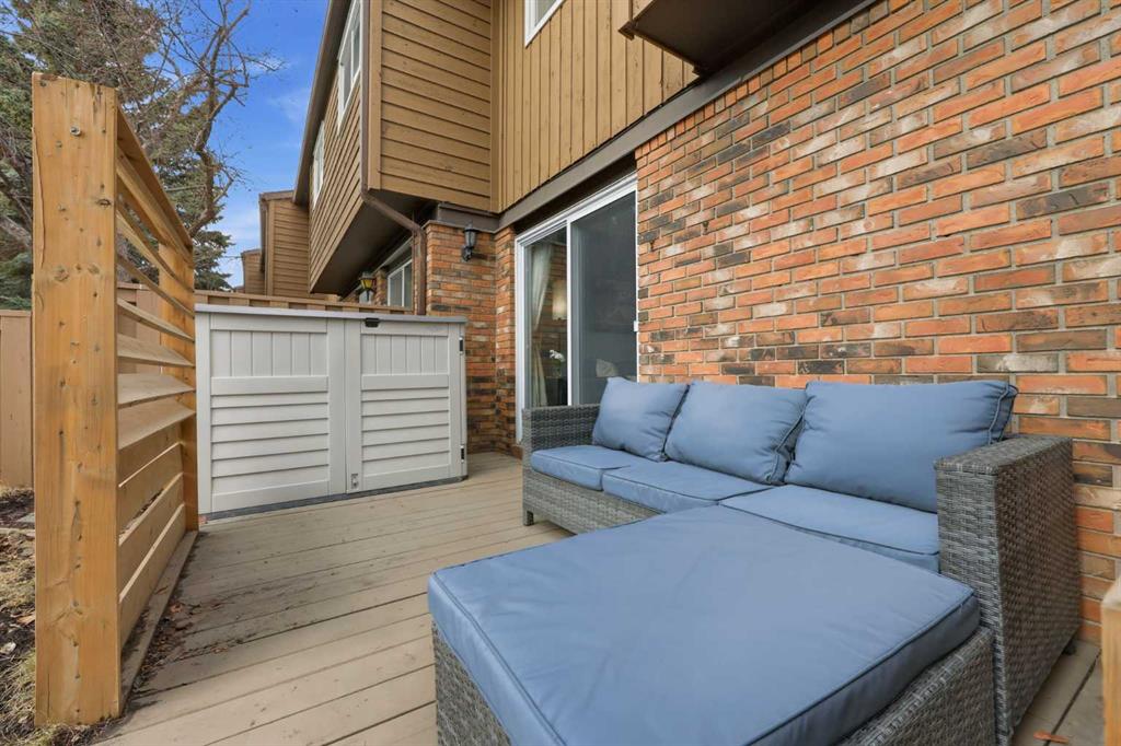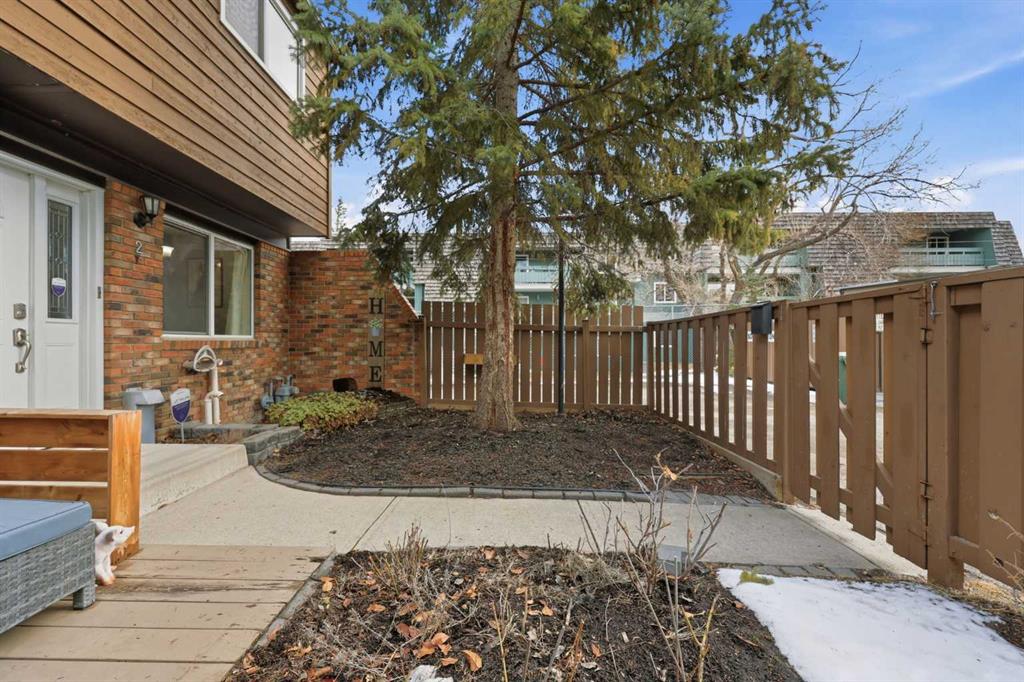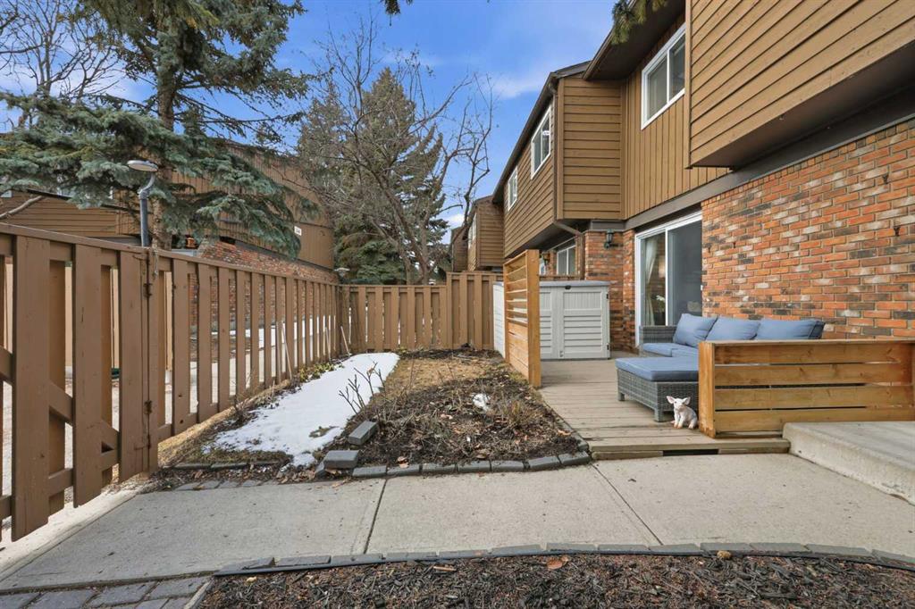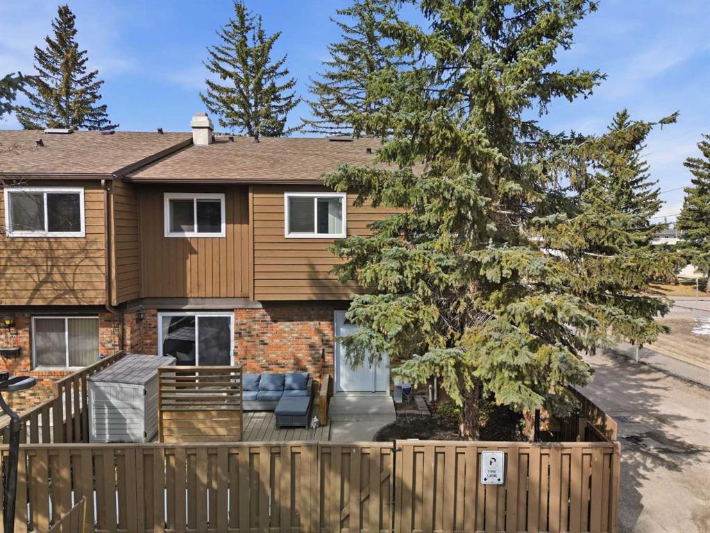 Affordable, sun-soaked, and full of character, this end-unit townhouse in the sought-after Prairie Meadows is a rare find. Priced to make the move from renting to owning finally feel within reach, this home checks every box without compromise. A private, gated yard sets it apart from every other unit in the complex, offering outdoor space that feels truly your own. The wood deck is made for summer evenings with friends, morning coffee, or simply soaking up the south-facing sun that pours through the windows and brightens every corner of the main floor throughout the day. Inside, the custom built-in bench in the dining nook is as functional as it is charming, the perfect spot to gather. The kitchen is practical and well-appointed with updated white shaker style cabinetry, generous counter space, and a new fridge (2023) and stove (2026). The living room is warm and anchored by a classic corner wood-burning fireplace, making cold Calgary winters something to look forward to. The half bath on the main floor completes this floor. Thoughtfully converted to a two-bedroom layout upstairs, both bedrooms are generously sized. The primary suite features a large walk-in closet. While the second bedroom offers flexible space – use it as a guest room, home office, or both. The full 5pc bathroom on this level delivers double sinks and excellent storage. The finished basement adds even more living space with a large recreation room and abundant storage throughout, a rare bonus at this price point. In-suite front-load laundry completes the lower level. Major mechanicals are already taken care of: furnace (2013), hot water tank (2019). This pet-friendly complex welcomes your four-legged family members, too. Move-in ready and waiting. Stop renting and start owning.