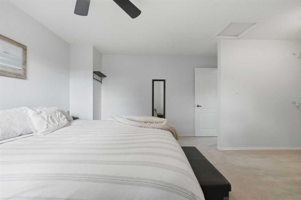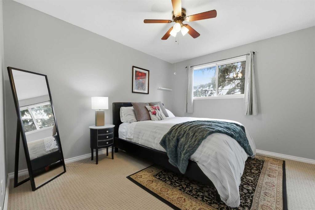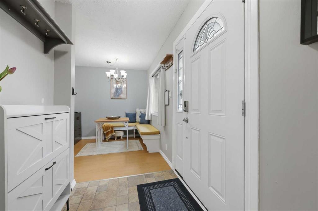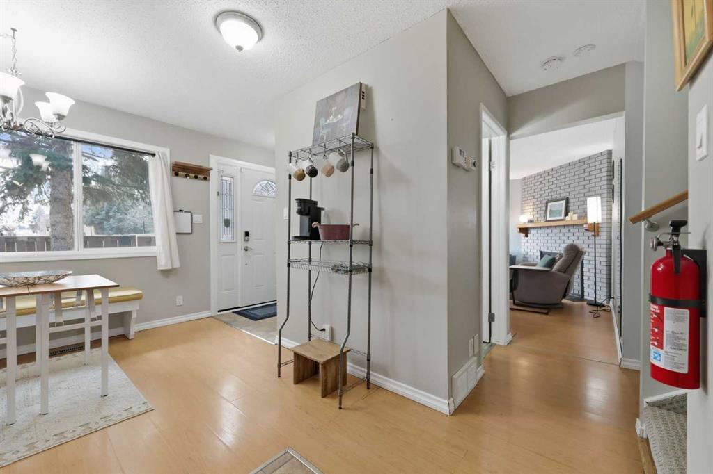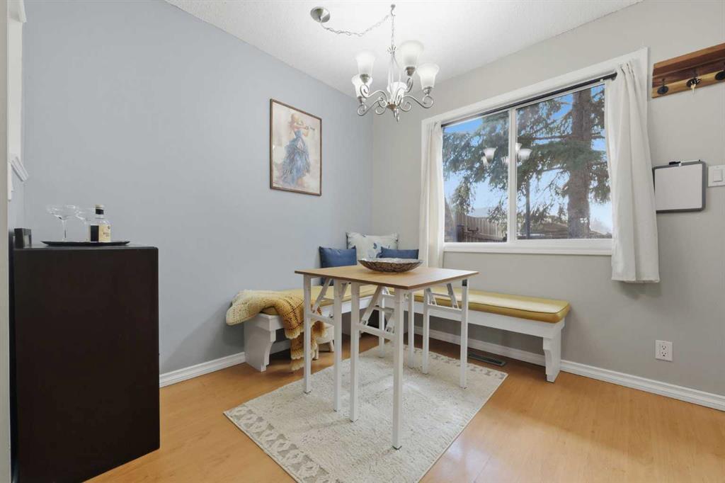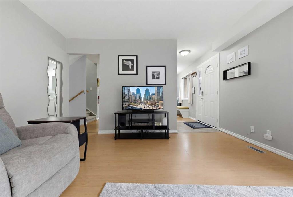Affordable, sun-soaked, and full of character, this end-unit townhouse in the sought-after Prairie Meadows is a rare find. Priced to make the move from renting to owning finally feel within reach, this home checks every box without compromise. A private, gated yard sets it apart from every other unit in the complex, offering outdoor space that feels truly your own. The wood deck is made for summer evenings with friends, morning coffee, or simply soaking up the south-facing sun that pours through the windows and brightens every corner of the main floor throughout the day. Inside, the custom built-in bench in the dining nook is as functional as it is charming, the perfect spot to gather. The kitchen is practical and well-appointed with updated white shaker style cabinetry, generous counter space, and a new fridge (2023) and stove (2026). The living room is warm and anchored by a classic corner wood-burning fireplace, making cold Calgary winters something to look forward to. The half bath on the main floor completes this floor. Thoughtfully converted to a two-bedroom layout upstairs, both bedrooms are generously sized. The primary suite features a large walk-in closet. While the second bedroom offers flexible space – use it as a guest room, home office, or both. The full 5pc bathroom on this level delivers double sinks and excellent storage. The finished basement adds even more living space with a large recreation room and abundant storage throughout, a rare bonus at this price point. In-suite front-load laundry completes the lower level. Major mechanicals are already taken care of: furnace (2013), hot water tank (2019). This pet-friendly complex welcomes your four-legged family members, too. Move-in ready and waiting. Stop renting and start owning.