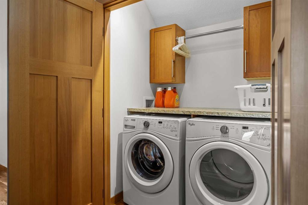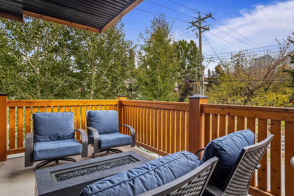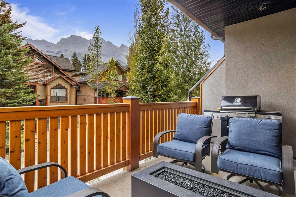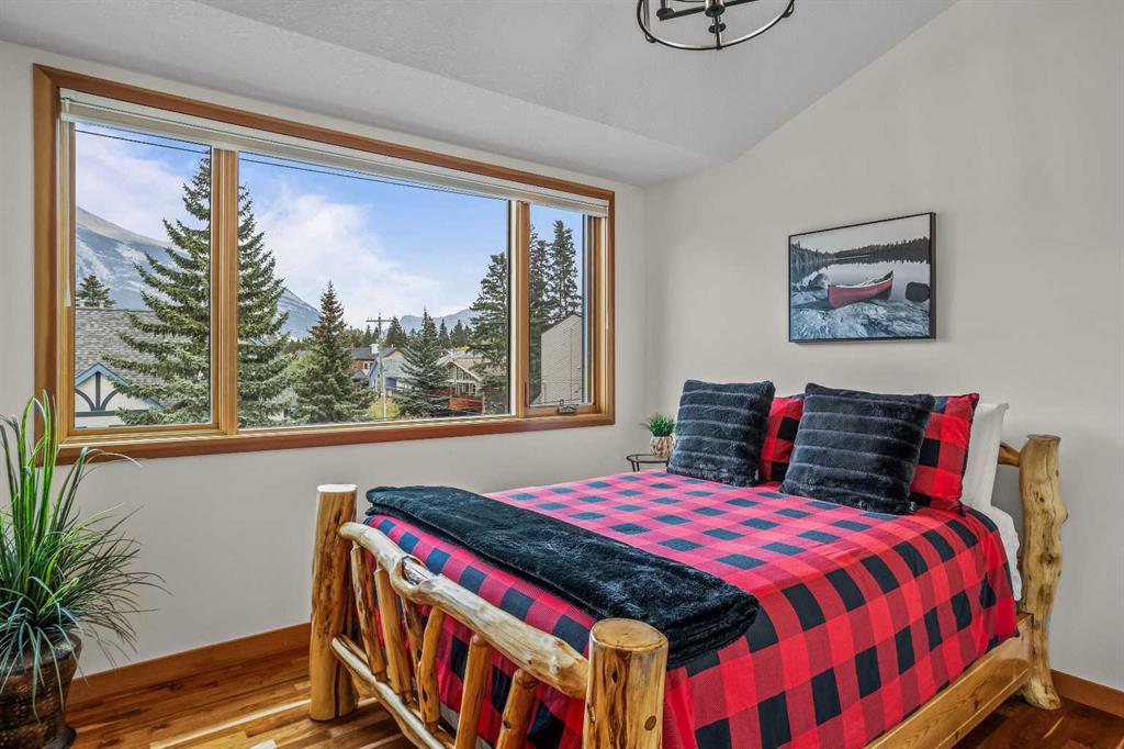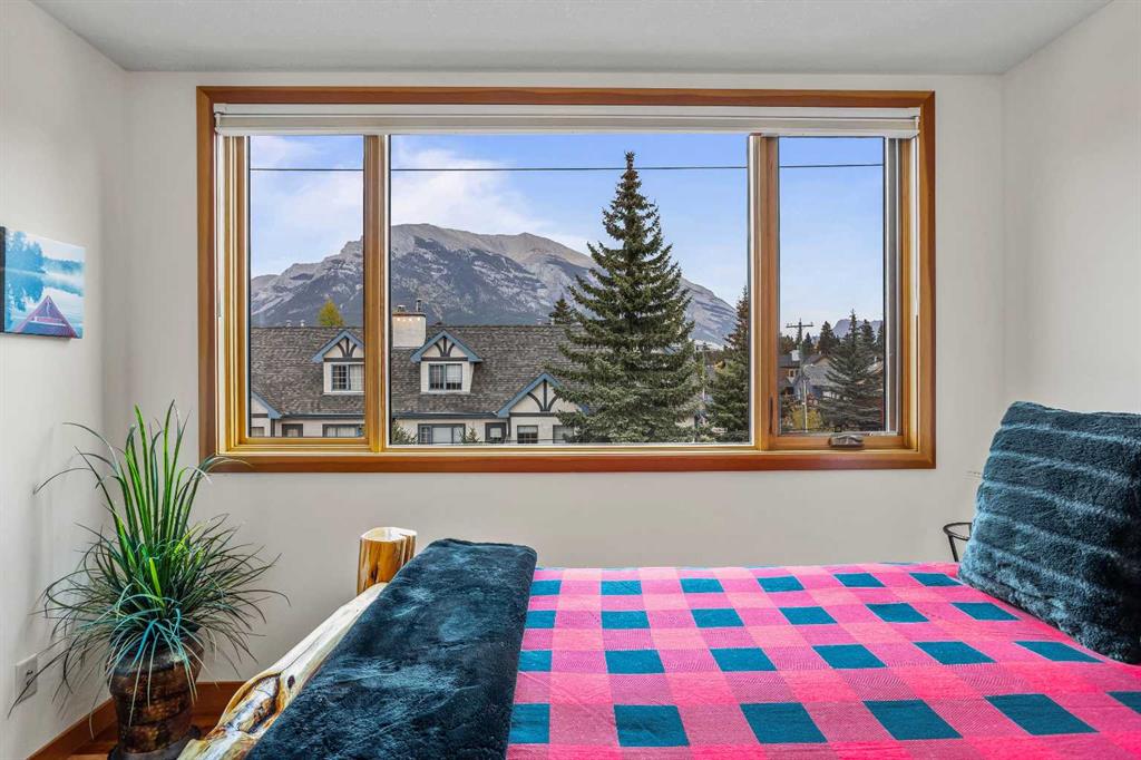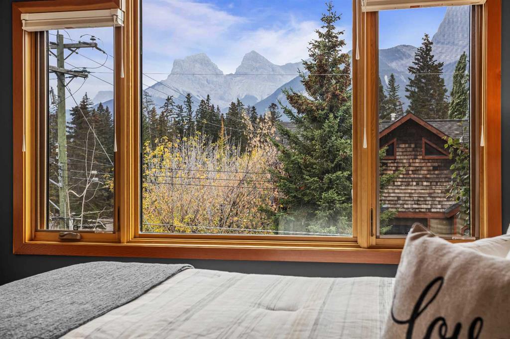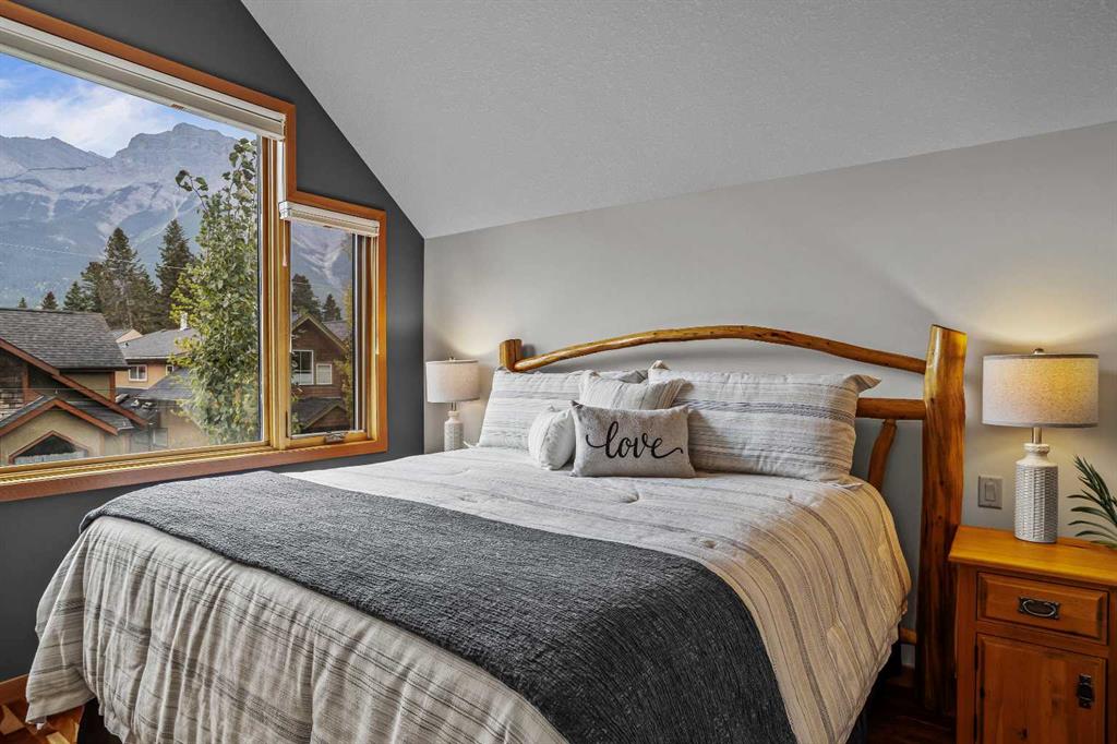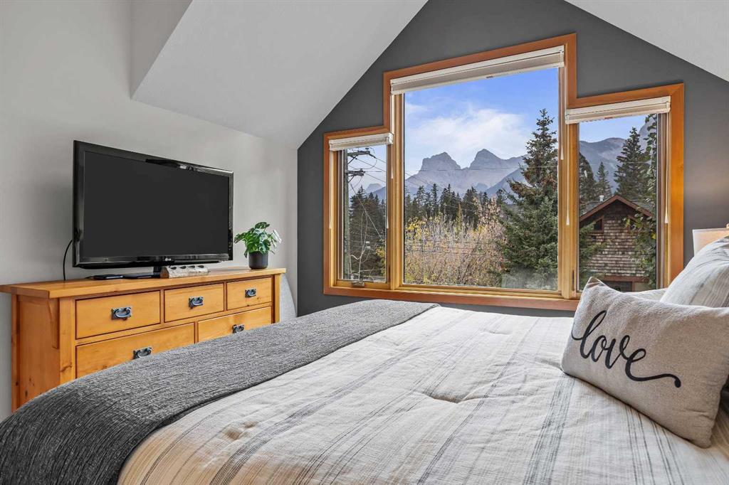 Upstairs you’ll find two spacious bedrooms and two bathrooms, including a primary retreat with vaulted ceilings, oversized windows framing the iconic Three Sisters range, and a spa-inspired ensuite with dual sinks and a walk-in shower. A full laundry room completes this level with convenience.