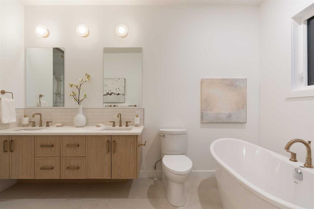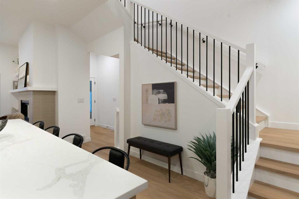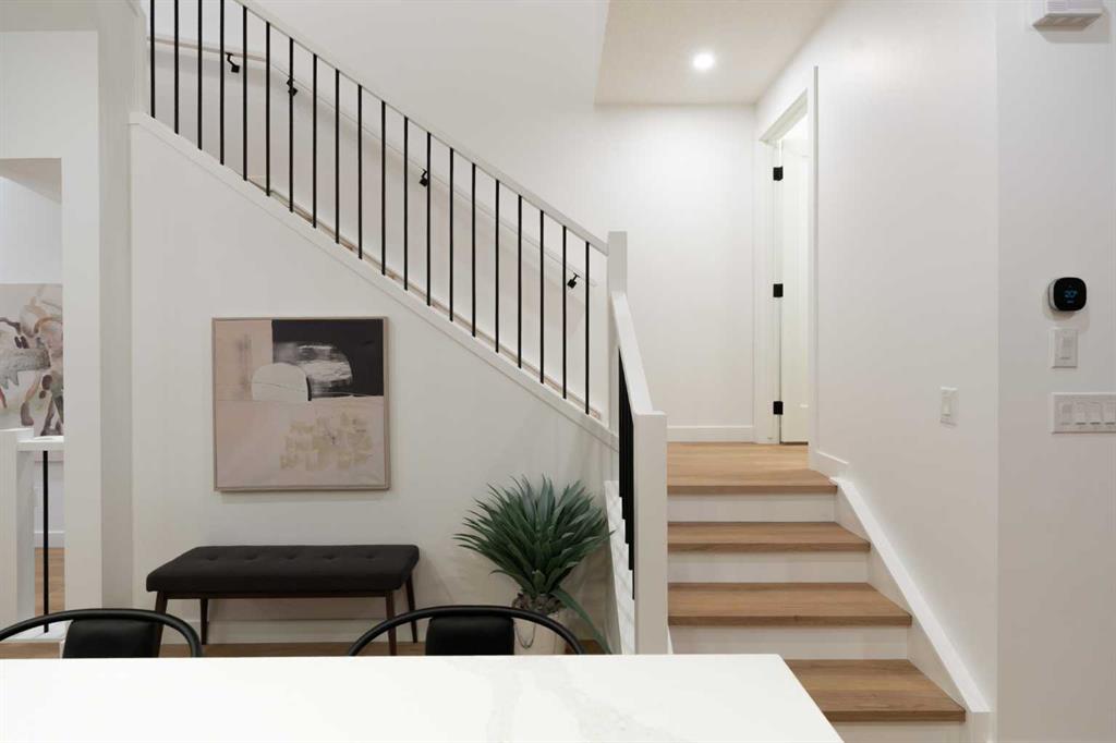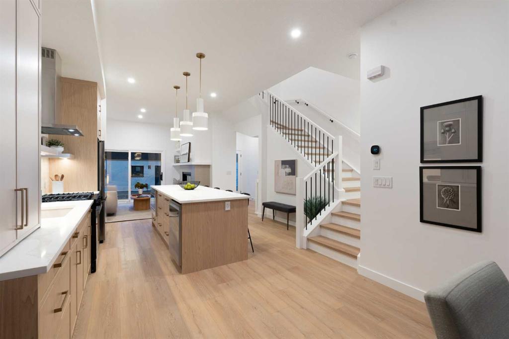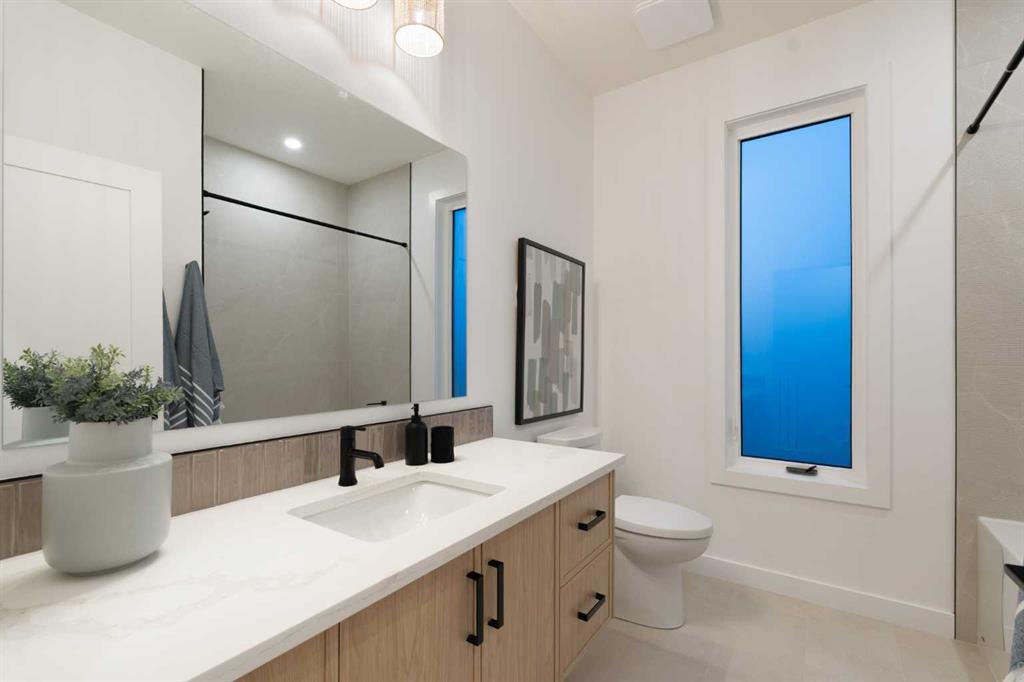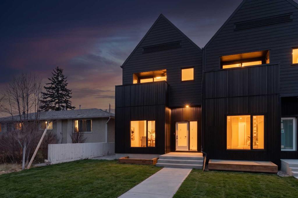 Welcome to a rare & refined opportunity on one of Bowness’ most coveted streets. Perfectly positioned along prestigious 33 Ave NW, this architecturally striking residence by Holt YYC Custom Homes offers an exceptional blend of modern design, quality craftsmanship, and an unbeatable inner city lifestyle. Just a five minute walk to Bowness Park & the Bow River pathway system, this home places nature, recreation, and city living within easy reach. This boutique tri-plex development is an attached single family home, NOT a townhome, meaning you own your land and there are no condo fees. It is similar to a traditional single family attached duplex but with three individual homes instead of two. Every detail reflects the design driven philosophy of Holt YYC Custom Homes, a Calgary based builder known for thoughtfully crafted homes and renovations that enhance the surrounding community. The project was personally overseen from concept to completion, ensuring exceptional attention to detail and superior construction quality. Inside, the home offers over 2,400 sq.ft. of finished living space with 3 bedrooms above grade & a 4th bedroom in the basement with large sunshine windows, along with 3.5 bathrooms. The main floor features flexible living with interchangeable dining, living, and den spaces, a custom fireplace, full height cabinetry, quartz counter-tops, stainless appliances, and luxury hard surface flooring throughout main/upper levels. The primary suite includes a private patio & spa inspired ensuite with walk-in shower and freestanding tub. The lower level includes a custom designed bar & spacious media room, ideal for entertaining. Large windows throughout the home fill the space with natural light, enhancing the modern & refined interior design. The exterior offers a generous backyard with a full custom deck and strong separation from neighbouring homes. Additional features include a detached double car garage, rough-in for air conditioning, a gas line for BBQ, and a durable exterior finished with Hardie board siding and corrugated metal accents. Located in the heart of Bowness, residents enjoy a vibrant community w/ access to a growing mix of local cafes, restaurants, and shops. With quick access to downtown and the mountains, this location offers an exceptional connected lifestyle. With only 2 homes left in this exclusive development, opportunities like this are rare. Finishing touches are underway as the unit is currently under construction. Photos are of the show suite (Unit 3) and reflect the same finishing standards as Unit 2. Property taxes have not yet been established and lot size is to be verified. Interior finishing is expected to be completed within 4 – 6 weeks, with landscaping & fencing scheduled for completion by June 2026. Units 2 is anticipated for occupancy btw mid June-mid July 2026.