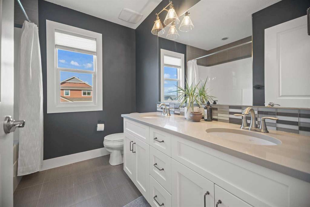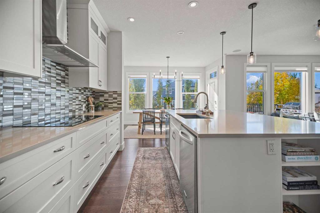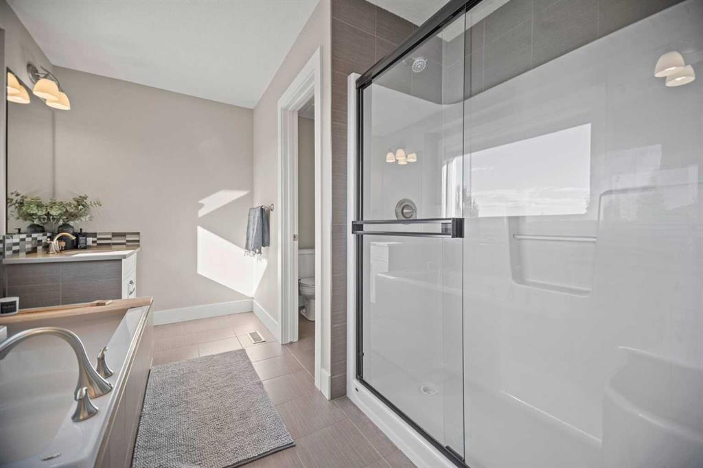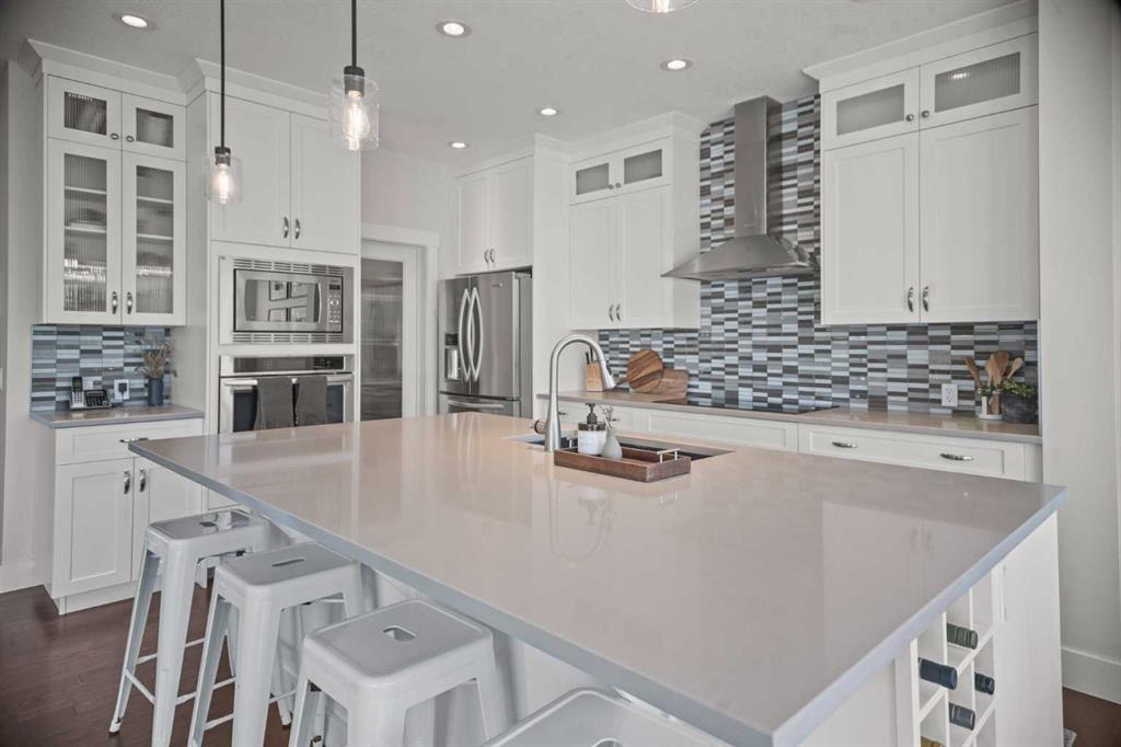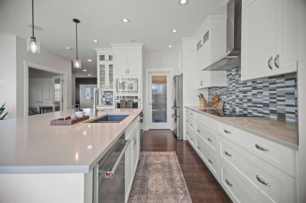 Welcome to Ranchers Rise — one of Okotoks’ most desirable family neighbourhoods. This home has serious curb appeal with Hardi board siding, air conditioning, and brand-new landscaping featuring fresh mulch, thoughtfully placed trees for current and future privacy, and a gathering area perfect for relaxing and taking in the south-facing sun. Inside, you’re greeted by 9-foot ceilings and a spacious front entry with a big closet and a large main-floor office — ideal for working from home or keeping family life organized. There’s also a half bath, and another mudroom/boot room that connects to the triple car garage (finally, space for everything). The kitchen is a showstopper with ceiling-height cabinets, a massive island, two dishwashers, an induction cooktop, built-in oven and microwave, and a walk-in pantry that keeps everything tidy. The dining area is surrounded by windows, flooding the space with natural light, and from the kitchen, you can easily keep an eye on the kids playing in the backyard while you cook or entertain. The living room ties it all together with a gas fireplace feature wall that makes the space warm and inviting. Upstairs is a layout you almost never find — four bedrooms plus a bonus room. The bonus room is big, bright, and finished with vinyl plank flooring and a dry bar. Down the hall are three generous kids’ bedrooms, a full bathroom, and a laundry room with a top-load washer and dryer. The primary suite is a true retreat with a walk-in closet, double vanity, soaker tub, and walk-in shower. The basement is ready for your creative touch — already functional, with a large mechanical room, rough-in for a future bathroom, room for one or two additional bedrooms, and still plenty of open space for a rec area, gym, or games room. This home truly has it all — a functional layout, thoughtful finishes, and a yard designed for both privacy and play. It’s a great value for the area, and homes like this don’t come up often in Ranchers Rise. You have to see this place in real life to appreciate the love and detail that has gone into it.