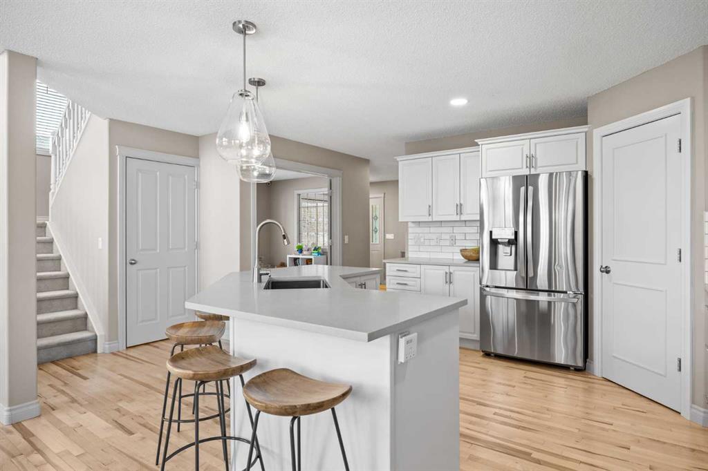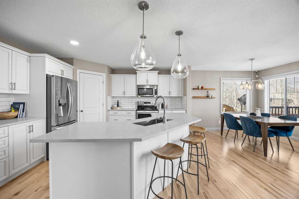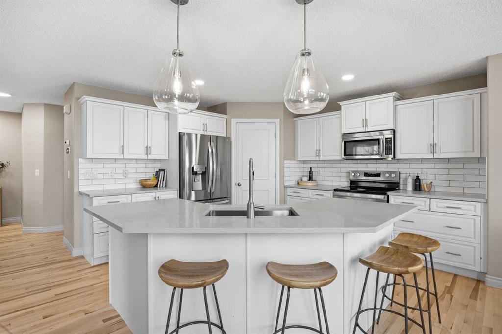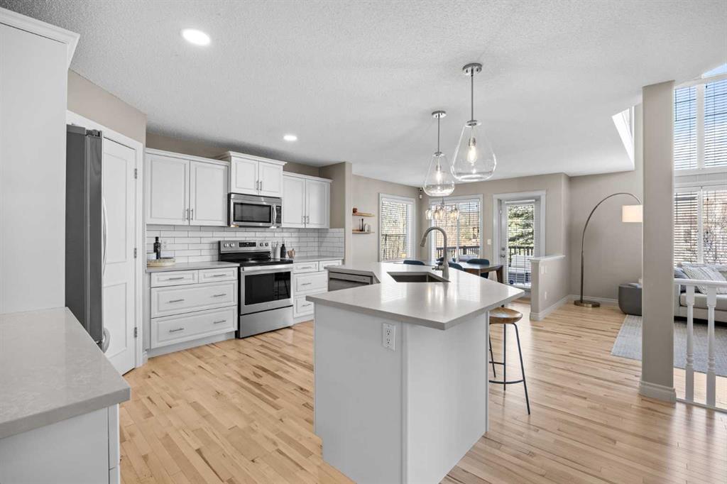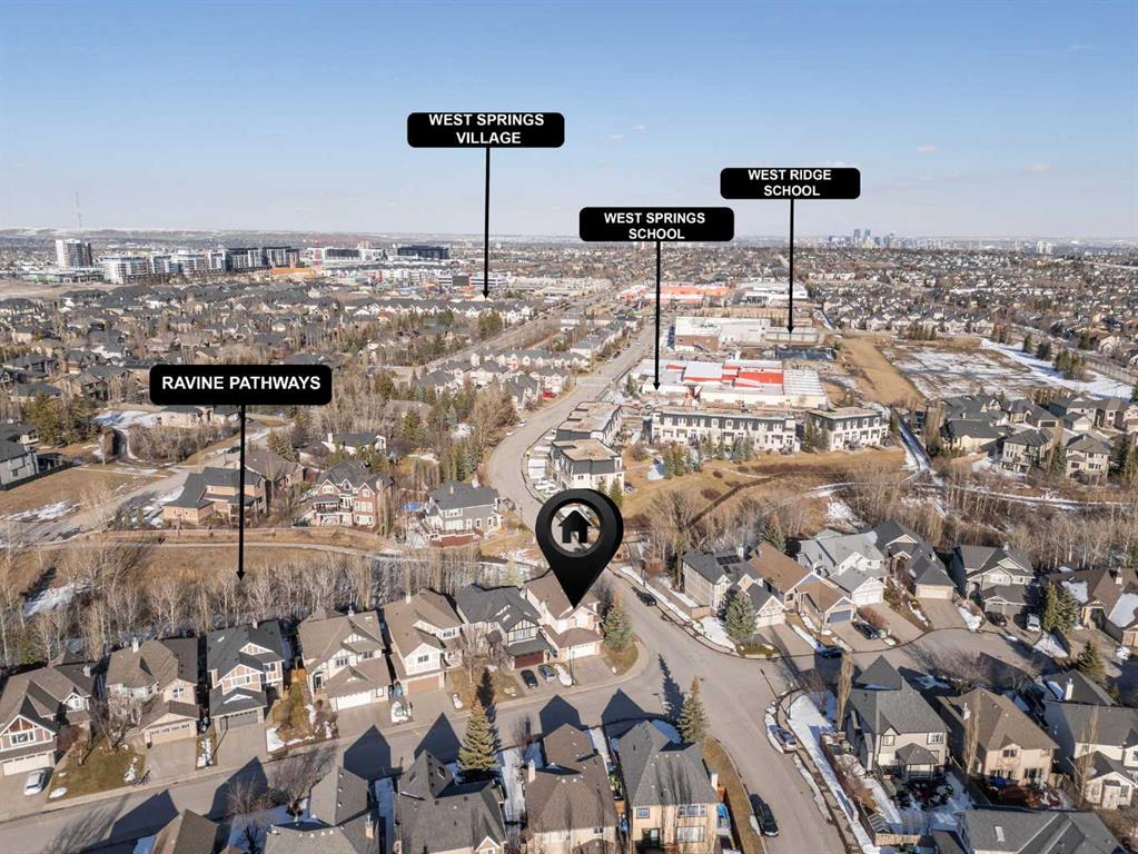 CORNER LOT | BACKING ON RAVINE & WALKING PATHS | WALK TO SCHOOL | VAULTED CEILINGS Open House Saturday April 18 & Sunday April 19, 11:30am-1:30pm. This is the family home you have been dreaming of in the cherished community of Wentworth. Backing on to a treed ravine with walking paths brings a sense of peace at home and adventure right outside your doorstep. Nestled on a 47 foot wide corner lot and steps to West Springs (K- Gr 6) and West Ridge (Gr 7-9) schools, this is a location perfect for families. Natural light, an abundance of windows, a vaulted ceiling, gleaming new hardwood flooring, updated light fixtures and a newly renovated kitchen will make you feel at home. A spacious front foyer welcomes you and carries through to a main floor office or flex space, ideal for working from home or a play room right off the kitchen for young ones. The renovated kitchen boasts dreamy stone countertops, designer lighting, stainless steel appliances and a convenient walk-through pantry. Soaring ceilings, expansive windows and a stunning fireplace will have you cozying up in the living room. The upper level offers a bonus room (could be converted to a 4th upper bedroom) and 3 bedrooms including a primary suite with vaulted ceilings and a 5-piece ensuite bathroom. The upstairs bathrooms have been updated as well. Heading to the lower level, you will find a well laid out floorplan fit with a spacious rec space, gym area, 4th bedroom, full bathroom and a mechanical room with built-in storage. It is finished and ready for you to enjoy. Additional upgrades include air conditioning, underground sprinklers, Gemstone Lighting and an oversized garage. With the warmer weather here, the backyard will be a place to relax, unwind and have the kids run around playing. Enjoy the conveniences of being able to walk to nearby amenities, including Co-op, Shoppers, Starbucks and even for a dinner out at Mercato. Wentworth offers ease of access to the Rocky Mountains, a quick commute into downtown as well as around the city via Stoney Trail. Wentworth is known for its friendly neighbours, nearby shopping and dining options and highly regarded schools – West Springs, West Ridge, St. Joan of Arc, Calgary French and International School and many more private school options nearby. All that’s left to say is welcome home.