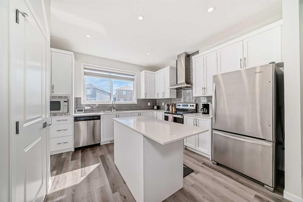 Modern Duplex with Legal Secondary Suite | Move-In Ready | Prime South Calgary Location. Discover this beautifully designed 2023 half-duplex that blends contemporary style, income potential, and thoughtful upgrades throughout. Situated in one of South Calgary’s most sought-after new communities, this home is an ideal fit for first-time buyers, investors, multi-generational families, or anyone looking to offset their mortgage with rental income. Step into the main residence and enjoy modern living at its best. The open-concept layout features 9-foot ceilings, large windows, and light, neutral finishes that create a bright and welcoming space. The central kitchen is a chef’s delight with quartz countertops, stainless steel appliances—including a built-in microwave—and a spacious island perfect for everyday cooking or hosting guests.