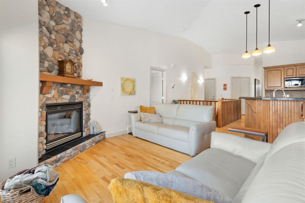 Designed for comfort and ease, the main floor offers everything you need for day to day living, including a spacious primary bedroom, 1.5 bathrooms, laundry, and an open concept kitchen and living area. Vaulted ceilings, original hardwood floors, and granite countertops create a sense of warmth and openness that feels both timeless and inviting. A natural gas fireplace anchors the living space, making it equally suited for quiet evenings or entertaining.