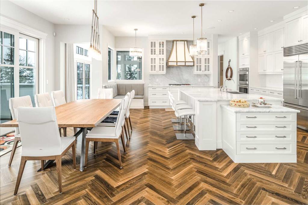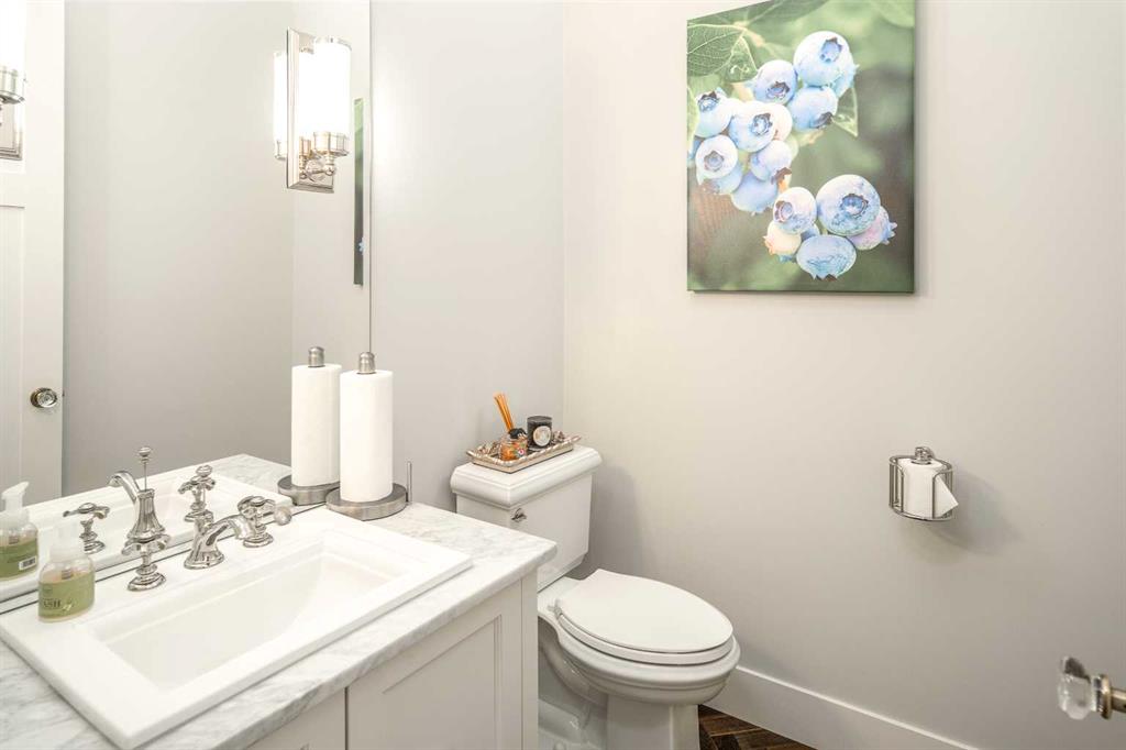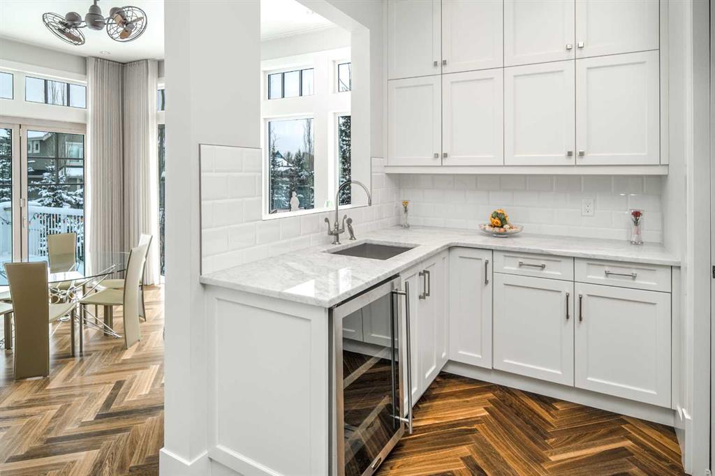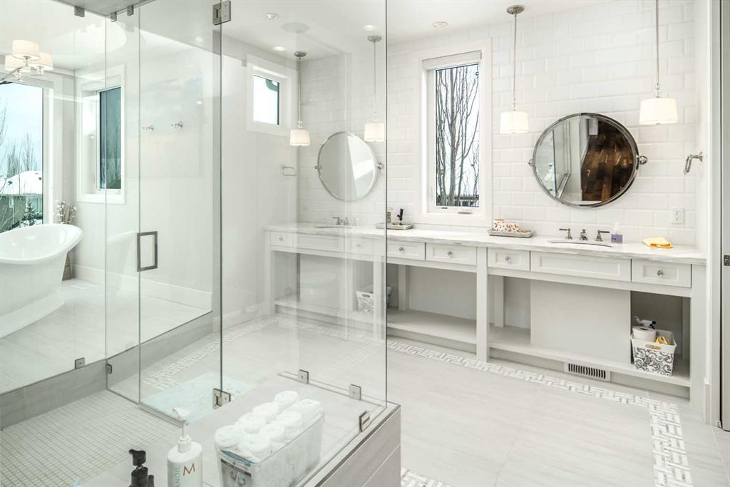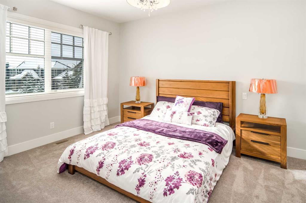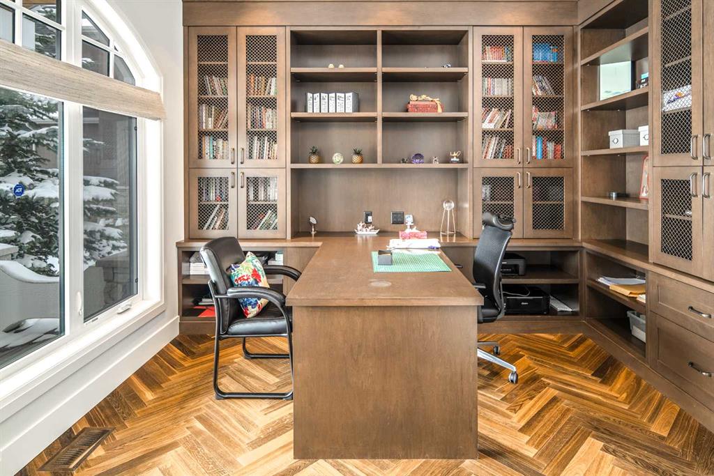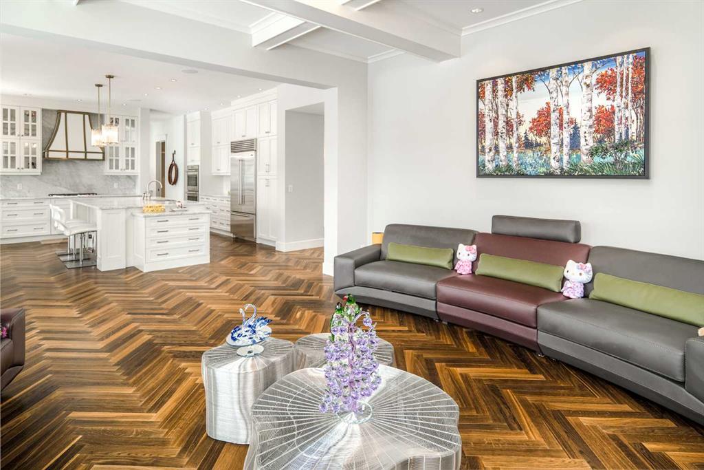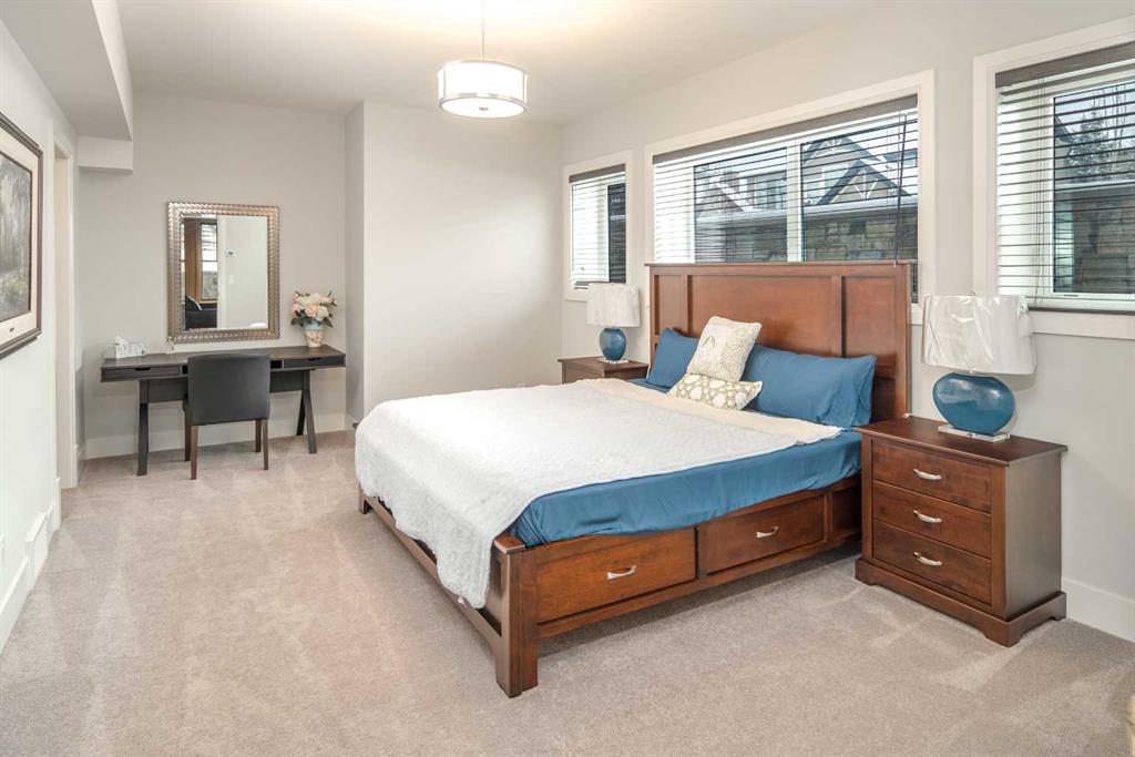 Welcome to this exquisite custom estate home by Wolf Custom Homes, nestled in the prestigious community of Watermark. Boasting over 5,400 sq. ft. of unparalleled craftsmanship and elegance, this former SHOWHOME offers tons of upgrades exemplifies luxury living. The house is in immaculate condition, having been used only occasionally by the owners. From the moment you step inside, you are welcomed by stunning luxury hardwood flooring that flows throughout the main level. The heart of the home is the gourmet chef’s kitchen, featuring beautifully crafted cabinetry, an oversized island with marble countertops, and top-of-the-line appliances, including a Sub-Zero fridge, Wolf gas stove and built-in oven, and an Asko dishwasher. Adjacent to the kitchen, the bright and inviting dining area and living room are adorned with expansive windows, allowing natural light to fill the space. A striking fireplace adds warmth and sophistication to this open-concept layout. For those who love to entertain, a formal dining room and a stunning 4-season sunroom extend onto an expansive, covered balcony—perfect for year-round enjoyment. A spacious main-floor office, complete with custom-built desk and shelving, offers the ideal work-from-home setup. A thoughtfully designed mudroom with a built-in bench and ample storage ensures effortless organization. Upstairs, retreat to the lavish primary suite, where a spectacular walk-in closet with custom spa-like 5-piece ensuite. Indulge in the free-standing soaker tub, oversized glass-enclosed shower, and dual vanities. Two additional generously sized bedrooms, each with its own walk-in closet and private 4-piece ensuite, provide ultimate comfort. A large bonus room and a convenient upper-floor laundry room complete this level. The fully developed walk-out basement, enhanced with in-floor heating, extends the home’s luxurious appeal. It boasts a spacious entertainment area with a fully equipped wet bar, a modern fitness room, an additional bedroom, and a beautifully appointed four-piece bathroom. Step outside to your private backyard oasis, where breathtaking views, lush landscaping, and elegant decorative LED system (10K value) and garden lighting (6K) create the perfect setting for entertaining or quiet evenings under the stars. Located in the exclusive estate community of Watermark, this home provides the tranquility of country living with the convenience of city amenities just minutes away. Enjoy scenic pathways, parks, playgrounds, and the renowned Central Plaza with a pavilion, picnic areas, firepit, sports courts, and lush green spaces. Experience the pinnacle of luxury—book your private showing today!