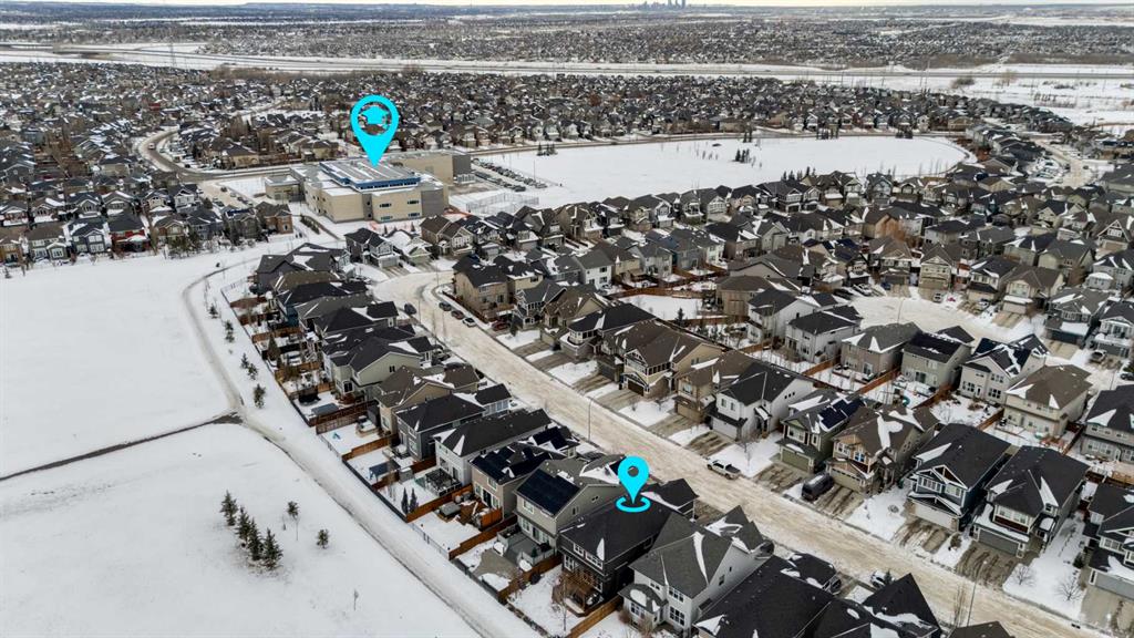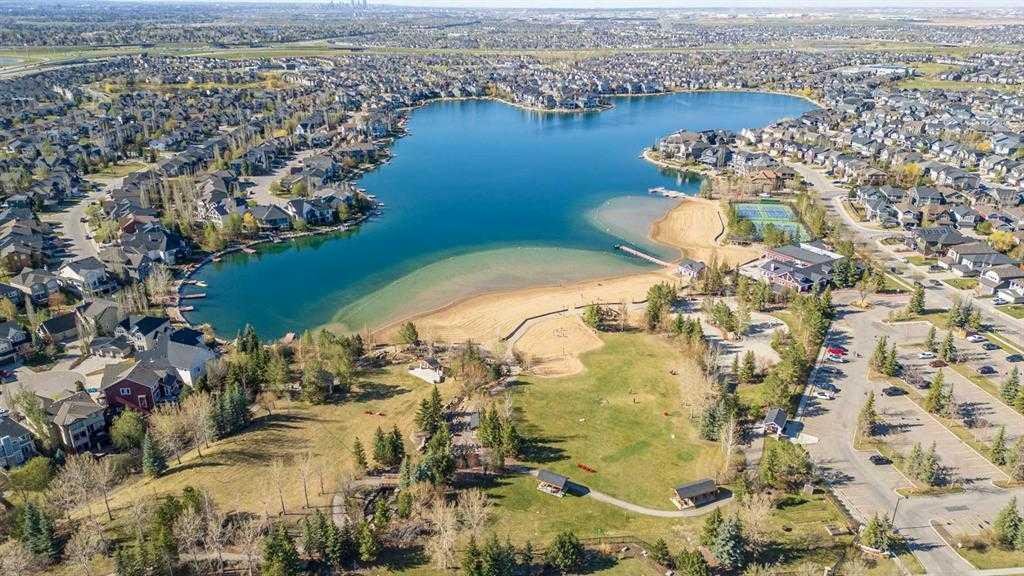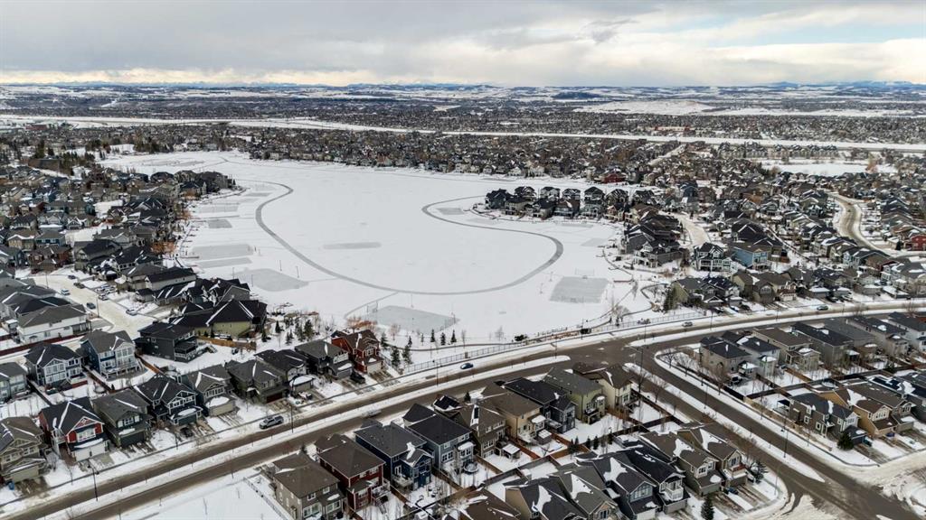 Located in the sought-after lake community of Auburn Bay, this pristine Jayman Built two-storey home offers over 2,500 sq ft of developed living space and backs directly onto greenspace. From the moment you arrive, the curb appeal is undeniable, with a well-maintained exterior that reflects the care and thought put into every aspect of the home. Designed with both function and comfort in mind, this residence features three bedrooms, two and a half bathrooms, and a double attached garage. The main floor welcomes you with a spacious tiled entryway and nine-foot ceilings, complemented by large windows that fill the home with natural light. The open-concept layout seamlessly connects the kitchen, dining area, and living room. The living room is anchored by a cozy gas fireplace, while engineered hardwood flooring runs throughout the remainder of the main level. The kitchen is a standout, offering full-height white cabinetry, quartz countertops, a tasteful backsplash, and stainless steel appliances, including a gas cooktop. Dual islands provide ample prep space and seating, while a large walk-in pantry ensures excellent storage. A generous dining area sits adjacent to the kitchen, along with a dedicated beverage and coffee station complete with a bar fridge. A two-piece powder room rounds out the main floor. Throughout the home, Hunter Douglas blinds, modern lighting, triple-pane windows, and thoughtfully placed feature walls add subtle style and efficiency. Upstairs, plush carpet leads you to a well-planned layout with bedrooms positioned on opposite ends for added privacy. A central bonus room offers flexible space for relaxing or gathering. The primary retreat enjoys mountain views and a spa-inspired ensuite featuring a standalone shower, soaker tub, dual sinks with individual vanities, a makeup station, and two walk-in closets. Two additional bedrooms share a five-piece bathroom with dual vanities, while a sliding door separates the toilet, tub, and shower area from the sinks for added convenience. A dedicated laundry room completes the upper level. The basement is unfinished and ready for your vision, with nine-foot ceilings that allow for a wide range of possibilities. The backyard is designed for enjoyment and relaxation. A large deck with a pergola includes retractable wind screens and lighting, making it a comfortable space for barbecues, morning coffee, or evenings spent outdoors. The yard is landscaped and backs onto greenspace, enhancing the sense of openness. The oversized double attached garage includes a sub-panel, adding extra functionality. Living in Auburn Bay means exclusive access to the lake and community amenities including a beach, tennis courts, and year-round activities. The home backs onto a field connecting Prince of Peace and Lakeshore Schools, is a short walk to Auburn Bay School, and minutes from JCS High School, Seton YMCA & library, South Health Campus, shopping, dining, major roadways, parks, golf courses, and an off-leash dog park.