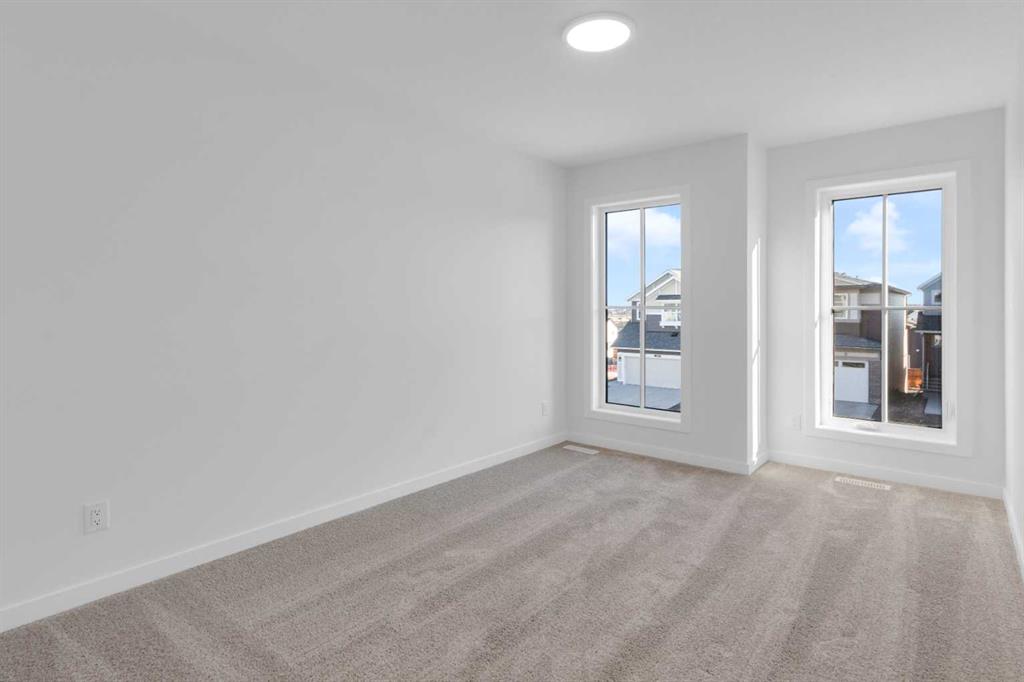 Welcome to Calgary’s newest NW community of STARLING – that means future amenities like trails through community parks, playgrounds, lighted pathways and green spaces. Then there’s the amphitheater where residents will enjoy performances. Those looking for more active experiences can hit the pump track or outdoor rink. Easy access to amenities & major routes. This home is BRAND NEW, built by EXCEL HOMES – the COLLINGWOOD is one of Excel’s most demanded floor plans. This home is also a GOLD STAR BUILT GREEN & CERTIFIED NET ZERO home – with SOLAR PANELS designed to produce as much clean energy as it consumes over the course of a year!! This home offers 2242 sf & is delivered in an open plan, designed for families & entertaining. This impressive home offers FOUR BEDROOMS above grade. The kitchen is a showstopper with a large island, built in SS appliances & offers loads of gorgeous white cabinets and drawers for storage. In addition, the main floor boasts a walk in pantry! You’ll notice the back of the house is almost entirely windows, flooding this home w/natural daylight. Exit to your WEST FACING backyard thru the oversized patio doors! The family room & dining area are connected & offer huge family / entertaining potential – you’ll love the fireplace with tile to ceiling feature. 9’ ceilings & gorgeous luxury vinyl plank flooring make this space airy & bright. Modern gold & black fixtures add elegance and interest. Upstairs you’ll find FOUR spacious bedrooms! The primary suite is separated from the 3 others by a huge bonus room that offers vaulted ceilings. The primary suite also features an amazing spa like ensuite w/dual sinks, beautiful tile skirted soaker tub & separate shower. Your laundry room & family bathroom complete this level. THE BASEMENT is drywalled and roughed in for a 3 pce bathroom. With over 35 years of experience, over 15,000 homes built & 75 awards for design & industry excellence, Excel Homes is a wise choice!