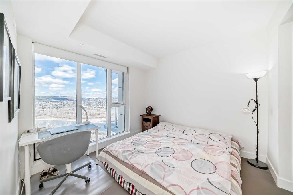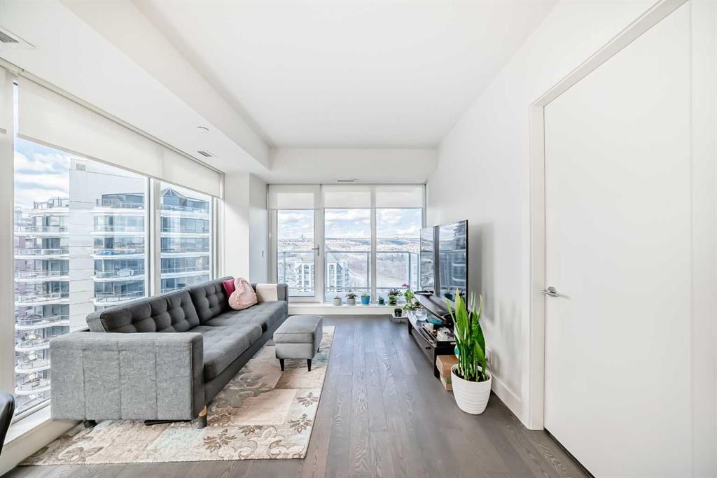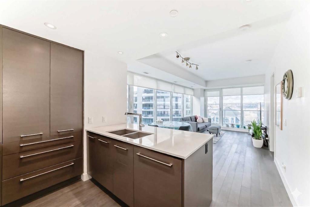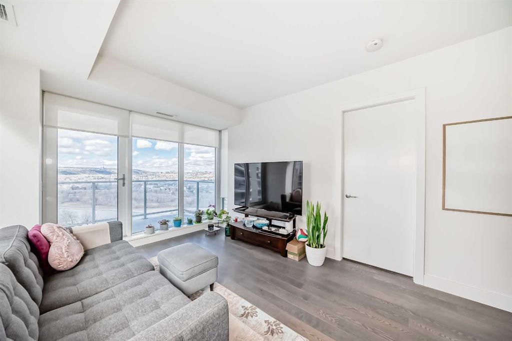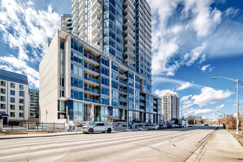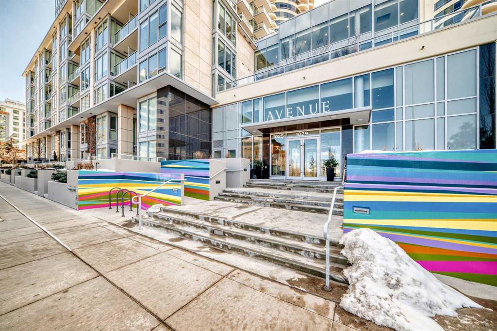 Experience elevated downtown living in this stunning corner unit at Avenue West End, offering breathtaking Bow River and Rocky Mountain views through expansive floor-to-ceiling window walls. This luxurious concrete building combines quality construction with exceptional urban convenience — just steps to downtown offices, river pathways, and Prince’s Island Park. This beautifully designed home features 2 bedrooms, 2 full bathrooms, plus a dedicated office/den, providing the ideal layout for professionals, downsizers, or investors. The gourmet kitchen is appointed with premium built-in appliances including a built-in refrigerator, high-end 5-burner gas stove, built-in microwave, quartz countertops, and sleek modern cabinetry. Rich hardwood flooring, quality carpet, air conditioning, and in-suite laundry complete the upscale interior. Enjoy your private balcony with panoramic river and city views, plus the convenience of titled underground parking, titled storage locker, and heated underground visitor parking. Avenue West End offers outstanding amenities including concierge service, security, fitness room and pet wash station. A rare opportunity to own a premium view unit in one of Calgary’s most sought-after downtown buildings — book your private showing today!