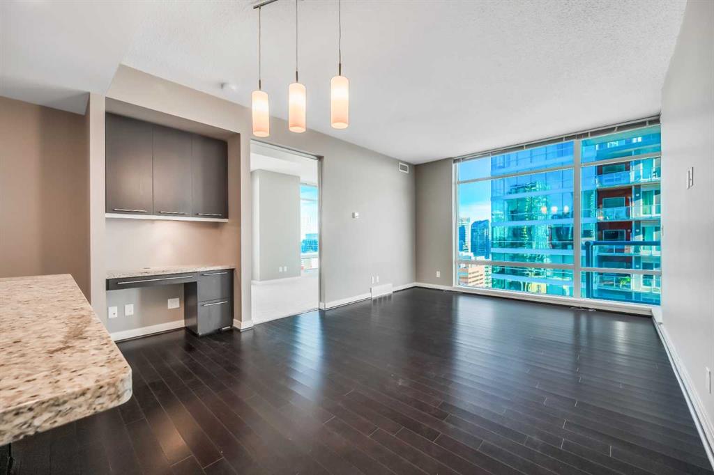 Discover elevated urban living in this gorgeous 20th-floor corner unit in the concrete Union Square building, located in Calgary’s vibrant Beltline. This 2 BED, 2 BATH condo offers a spacious layout with over 900 SQ FT, and with floor-to-ceiling windows showcasing spectacular Downtown Calgary views. The open-concept living and dining area is flooded with natural light and features rich upgraded hardwood throughout. The modern kitchen features stainless steel appliances and ample storage, ready for all your cooking needs. The generously sized primary bedroom boasts a large ensuite bathroom, while the second bedroom and full bathroom provide privacy and convenience, ideal for guests or a home office. Additional highlights include in-suite laundry, a private balcony, heated and titled underground heated parking, and additional dedicated storage locker. Central A/C! Just a few short blocks from Calgary’s downtown core, this unit places you steps from some of the city’s best restaurants, cafes, and amenities. Enjoy easy access to green spaces, bike paths, convenient routes in and out of the city, and nearby landmarks including Stampede Park, the Saddledome, and the LRT—perfectly blending comfort, style, and urban convenience. You don’t want to miss this one! Union Square sits nestled in between restaurants and shops in a mini entertainment district on 1st St SW.