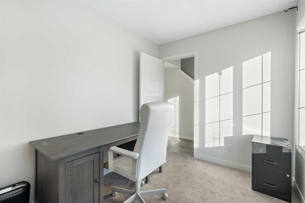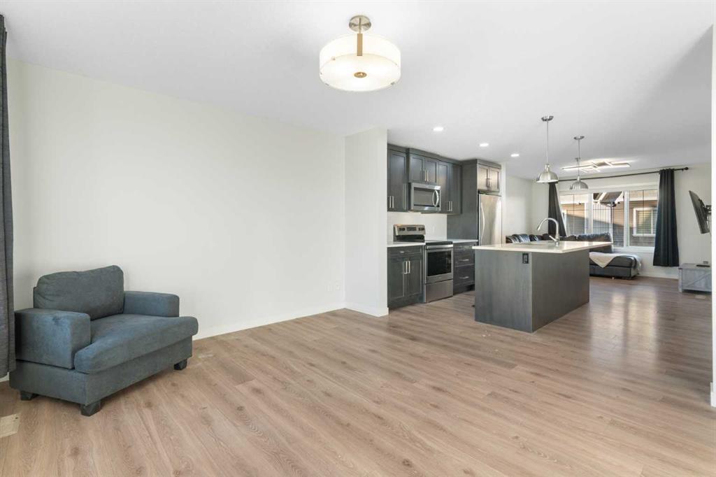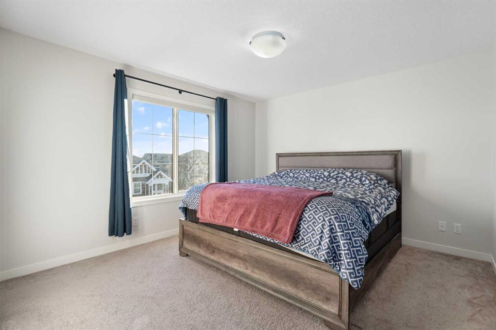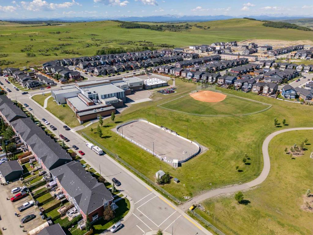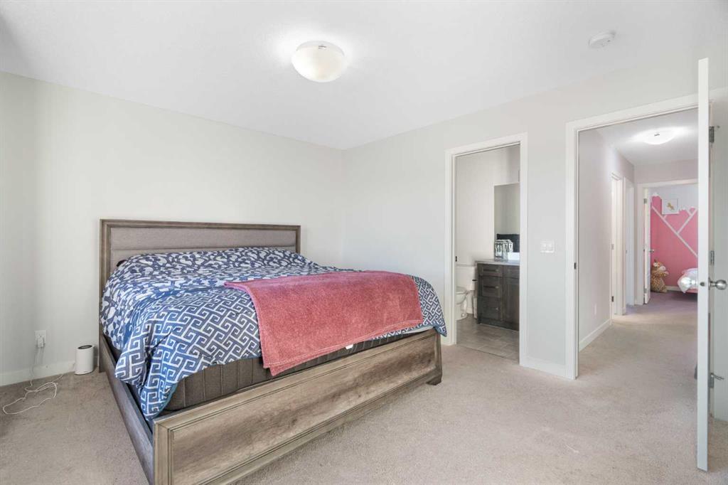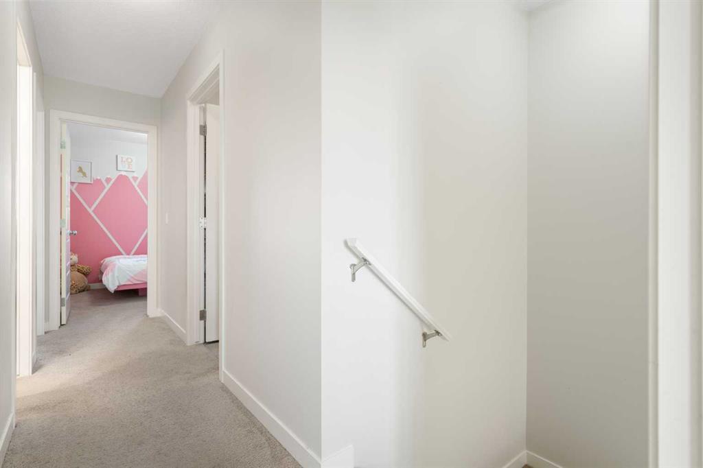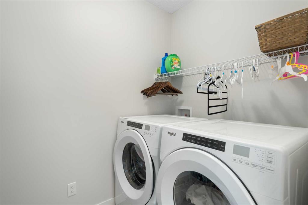 Welcome to Vantage at Fireside — a modern, low-maintenance townhome community perfectly positioned within walking distance to parks, schools, and all of Fireside’s amenities. Offering over 1,420 sq. ft. of stylish living space, this three-bedroom home features an open-concept design with abundant natural light and a thoughtful layout for both comfort and functionality. The main level includes a bright south-facing patio, a flexible den or home office, and a modern kitchen complete with a large stone island, stainless steel appliances, and access to a private balcony with a natural gas BBQ line. The adjoining dining and living areas create a warm and inviting space for relaxing or entertaining. Upstairs, the spacious primary suite includes a 4-piece ensuite and walk-in closet. Two additional bedrooms, another full bathroom, and a convenient upper-floor laundry (upgraded Whirlpool washer & dryer included) complete this level. Additional highlights include an attached double garage, extended driveway with parking for two extra vehicles, window coverings throughout, and completed landscaping — ready for immediate move-in. Located steps from Bullrush Pond Park, walking paths, and a variety of local shops and restaurants, this home combines modern living with small-town charm and quick access to Highway 22 and Highway 1A for an easy commute to Calgary or the mountains.