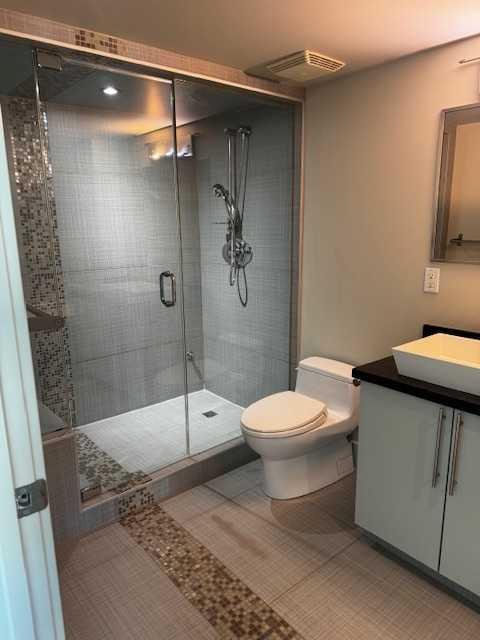 Upstairs, wake up — and fall asleep — to wide-open city views. The primary retreat features a spa-inspired ensuite with steam shower, soaker tub, and in-floor heating, creating a true urban sanctuary. This level also offers a built-in desk nook, a generous walk-in closet, and an impressively sized laundry room. Additional storage is cleverly tucked away beneath the stairs.