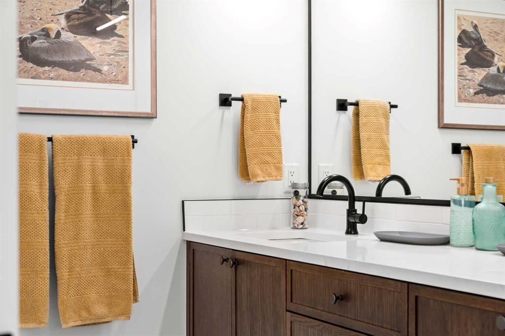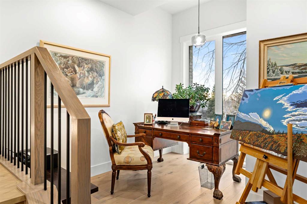 Upstairs, the second-floor features two spacious secondary bedrooms. The first offering a gorgeous spa inspired ensuite with a walk-in shower, deep soaker tub, dual vanities, in floor heating, and a spacious walk-in closet. The second bedroom includes its own walk in closet and private bathroom access, while a charming reading nook or office area adds flexibility to the upper floor. A dedicated laundry room completes this level.