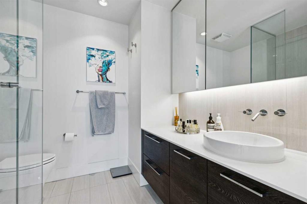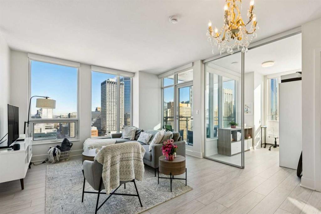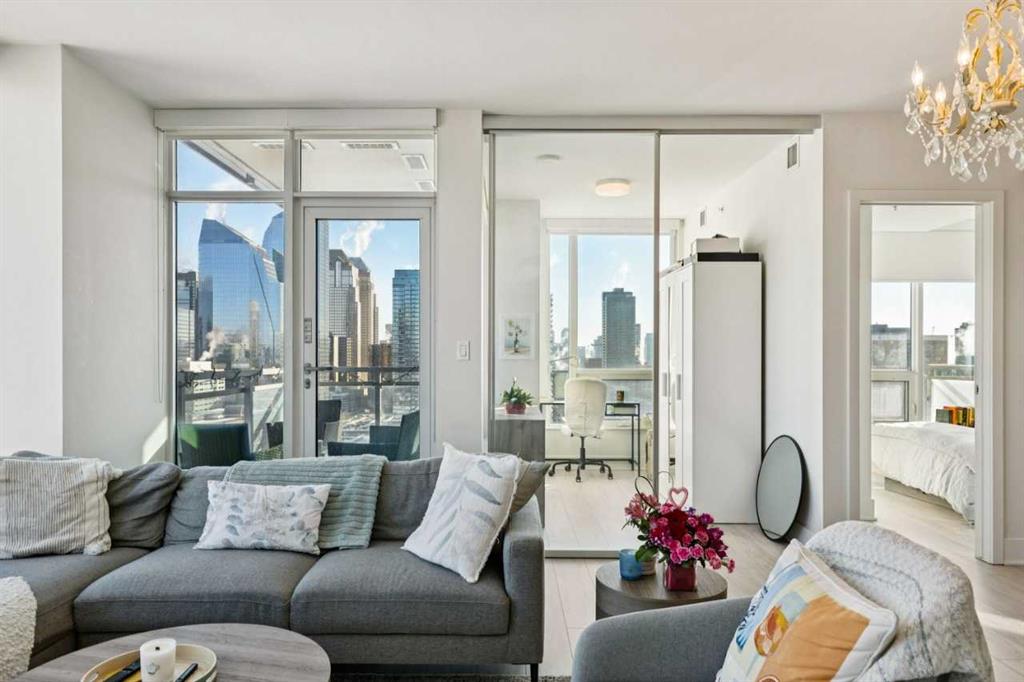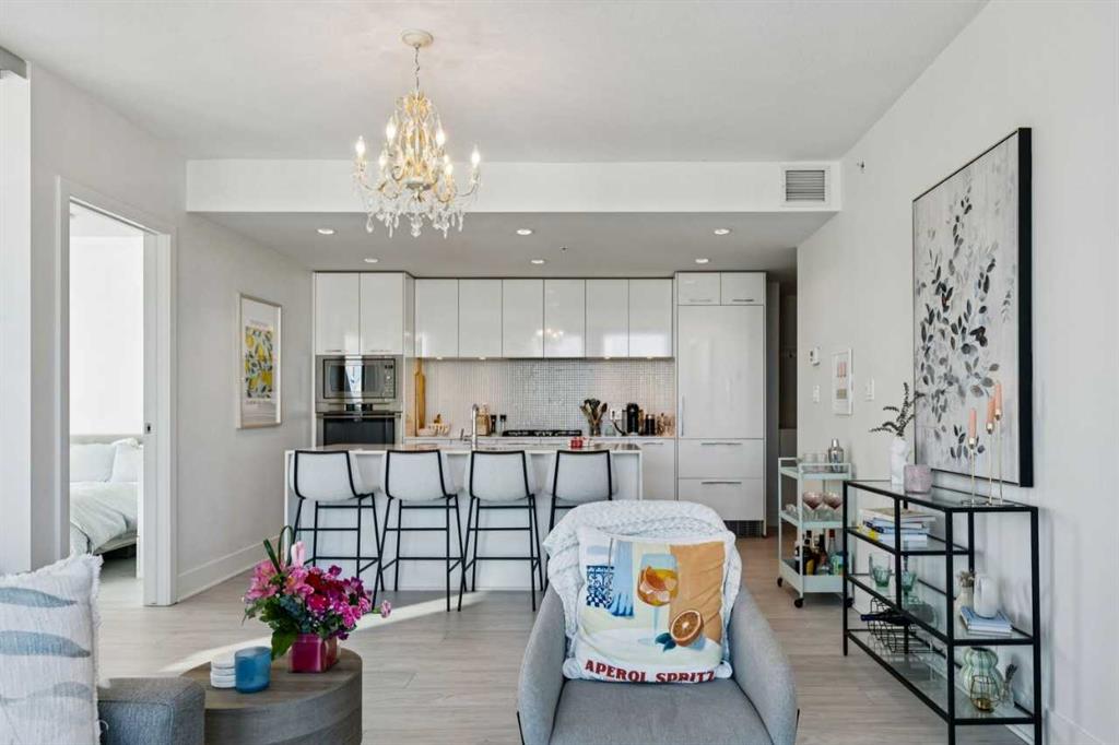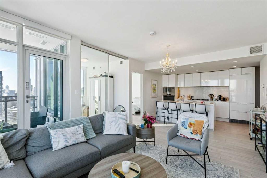 Live, work and play at The Mark on 10th. Perched on the 20th floor, this bright and spacious corner unit offers breathtaking panoramic views of Calgary’s downtown core and the vibrant Beltline. Featuring 2 bedrooms, 2 bathrooms and a private den with sliding glass doors, the thoughtfully designed 909 sq ft layout blends style and function. The contemporary kitchen is appointed with premium German appliances/cabinetry, Kohler fixtures and sleek quartz countertops. A rare titled oversized parking stall (approx. 1.5 stalls) offers exceptional space and convenience rarely found in the Beltline. A custom walk-in closet, blackout blinds in both bedrooms and a private balcony create a sophisticated retreat above the city.