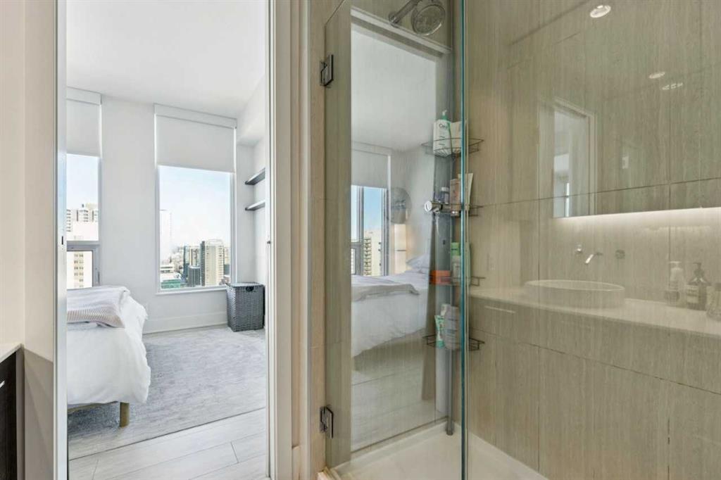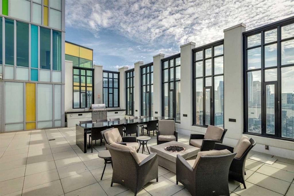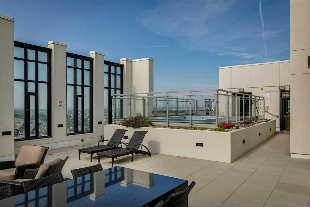 Residents enjoy luxury amenities including full-time concierge, secure parcel lockers, a stunning 34th-floor rooftop, hot tub, sauna, steam room and fitness centre, plus a garden terrace and guest unit on 3rd fl. Steps to cafés, restaurants, groceries, LRT, and 17th Ave.