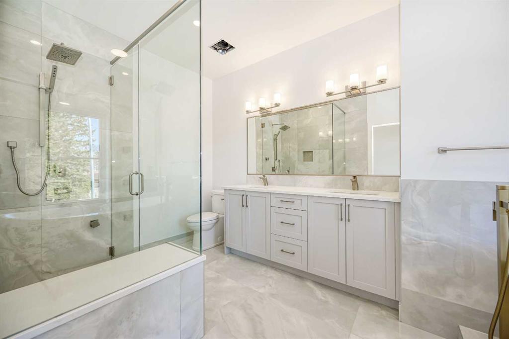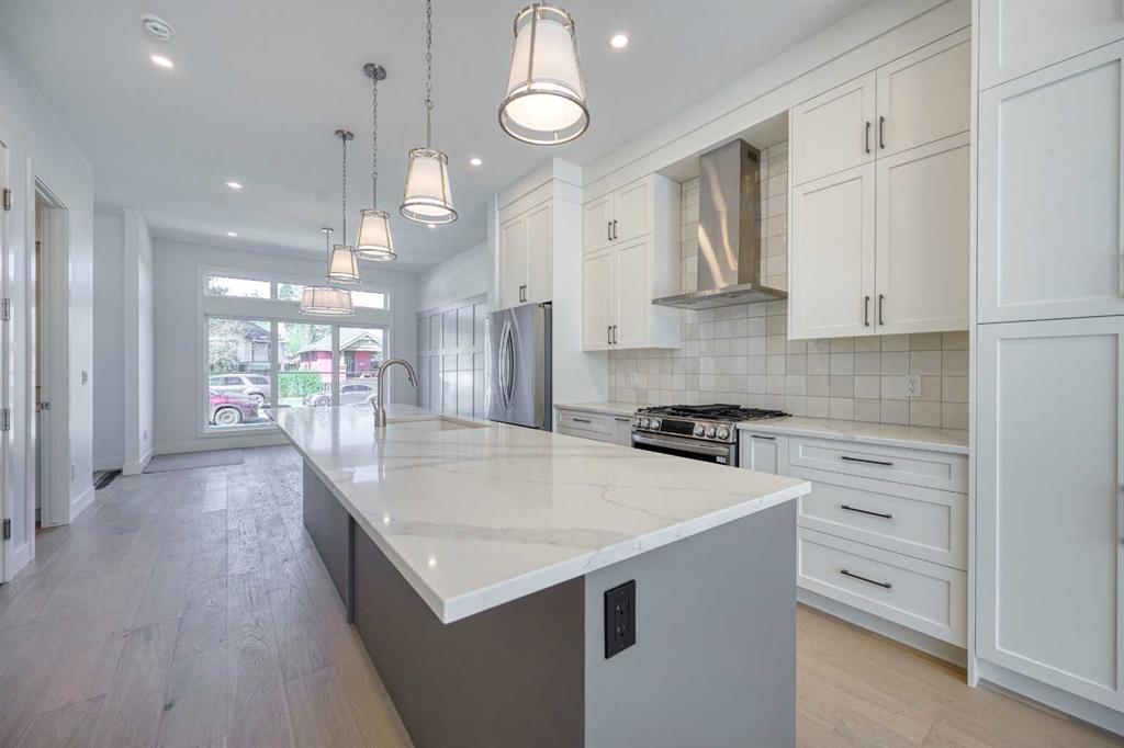 Brand-new infill in desirable Killarney, purchase price includes GST. Enjoy 2008 sq ft above grade of luxury high-end finishings throughout constructed by long time local builder EBL Contracting. This home will impress you, from the stone and stucco exterior to the vaulted ceilings and glazing boasting all kinds of natural light. Ten foot ceilings on main, nine foot ceilings lower and upper, gourmet kitchen, high-end appliances, quartz countertops, engineered hardwood and ceramic tile floors throughout. Enjoy flat painted drywall ceilings, all high end finishing completed onsite, Legal lower basement suite complete with spacious primary and full ensuite bath with double sinks, separate 2pc powder room – perfect for your in-laws, parents, nanny suite or lower tenants. Full appliance package down and in-floor heat system. Full height cabinets off the back main floor entryway to increase your storage. So much thought has been put into this design and floor plan for lifestyle and functionality. The double garage is complete with insulation, rough-in for EV vehicle and is complete with drywall. Main floor is wide open for your perfect placement of dining and living room furnishings. Three spacious bedrooms up, laundry room with sink and ceramic tile baseboards. The primary suite is breathtaking and truly a retreat. Come and see the angled vaulted ceilings and matching windows, so much natural light, dream ensuite bath with heated floors, large standup shower, soaker tub, his and her sinks, and generous walk-in closet with built-ins. The lower-level legal permitted suite is the perfect layout with a large primary bedroom, full ensuite bath with double sinks, heated floors, additional two-piece powder room, great working kitchen, and living room. Enjoy the lower suite for your personal living or rent out for future revenue. Enjoy central air conditioning for those warmer days. This lot is 125 feet long – giving a little more space to the backyard compared to others. Fabulous deck off the back with a gas line for your BBQ. Very low maintenance front and back lawns. This is an amazing location in the city, close to absolutely everything including downtown, 17th Avenue district shops and restaurants, public transit, schools, cycling routes, and all major roadways. Nearby amenities include parks, fitness centers, grocery stores, cafes, and entertainment options, making it a perfect place for a vibrant urban lifestyle. Progressive New Home Warranty coverage included. Lower suite would be ideal for an Air B&B.