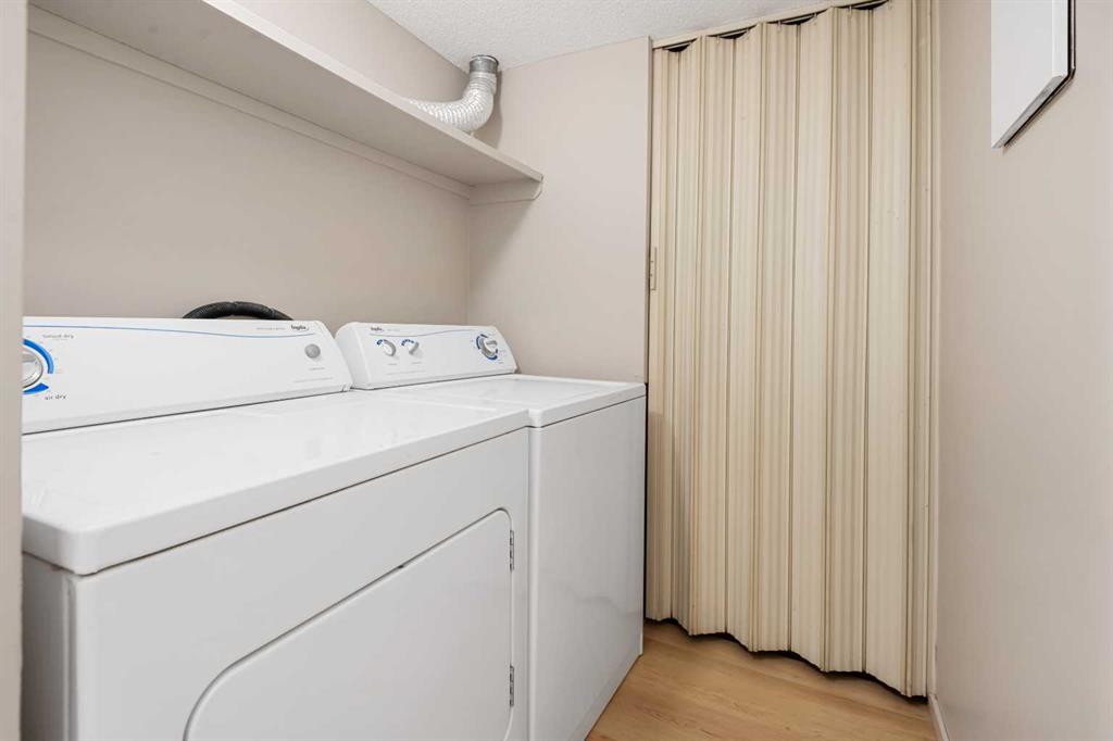 Discover the ideal blend of comfort, style, and convenience in this beautifully updated 2-bedroom bi-level townhome, perfectly positioned in one of Calgary’s most sought-after locations. Fresh & Modern Updates. Step inside to find brand new carpet and fresh paint throughout, creating a clean, move-in-ready canvas for your personal touch. The home features vaulted ceilings and newer windows that flood the space with natural light while enhancing energy efficiency, and an upgraded bathroom thoughtfully positioned between both bedrooms for maximum convenience. Thoughtful Design & FunctionalityThe laundry room is strategically located adjacent to the bathroom, making household chores a breeze. Enjoy the airy ambiance created by oversized windows that add a sense of spaciousness and elegance to your living areas.
