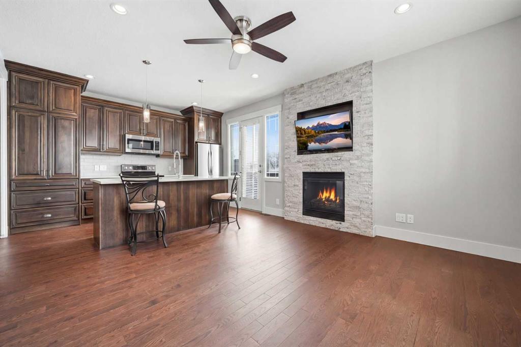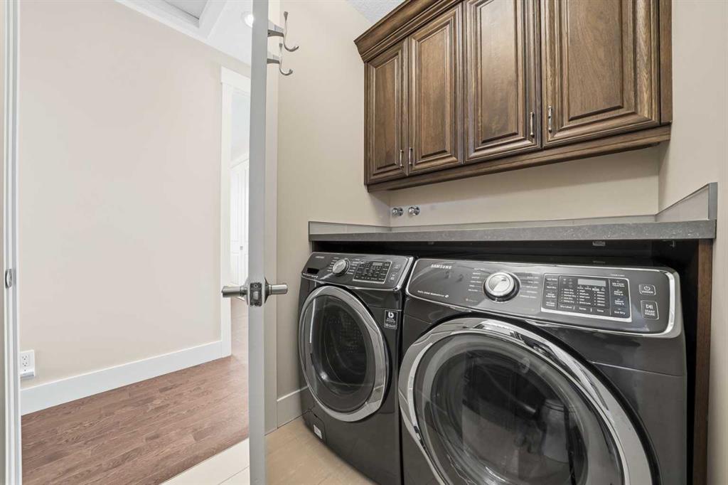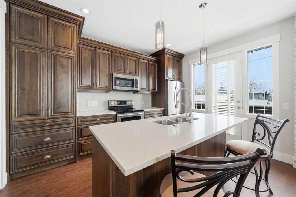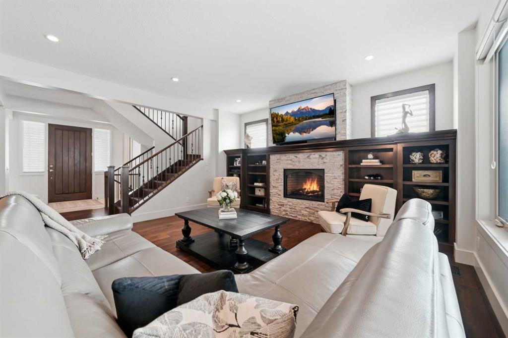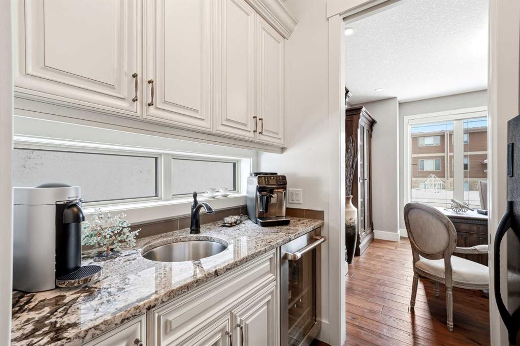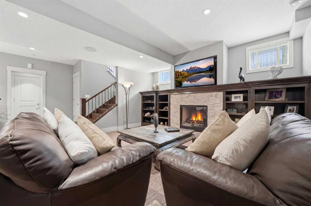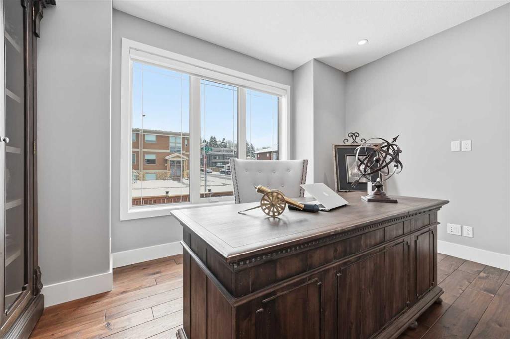 Welcome to this exceptional, one-of-a-kind custom residence in Bridgeland, one of Calgary’s most sought-after inner-city communities. This remarkable property immediately stands out with its LEGAL 832SQFT EXECUTIVE SUITE ABOVE THE OVERSIZED TRIPLE CAR GARAGE & an impressive 4200SFT+ OF TOTAL LIVING SPACE, offering unmatched luxury & income potential. Complemented by 9ft ceilings & hand-scraped hickory floors, you will be blown away by the elegance of the main floor with its grand living room with stone-facing fireplace accented by built-in cabinets, open concept formal dining room with built-in hutch & showpiece chef’s kitchen with granite counters, island with cast iron farmhouse sink, butler’s pantry & the stainless steel appliances include an Electrolux fridge/freezer (36” each) & double convection ovens, 36” gas cooktop & wine fridge…ALL FROM JENN-AIR. The hickory floors continue up to the 2nd floor & into the 3 big bedrooms; the private West-facing owners’ retreat has a large walk-in closet & luxurious ensuite with free-standing soaker tub & marble-topped double vanities, glass shower & HEATED FLOORS. Completing this level is the family bath with double sinks & laundry room with chute & LG washer/dryer. A 4th bedroom & full bath are in the beautifully finished lower level, along with a home gym with cork floors, another set of laundry hook-ups & rec room with fireplace & 5.1 surround sound, built-in cabinets & wet bar with 150+ bottle capacity wine room with solid maple racks. Main floor also has a fantastic home office & mudroom with built-in lockers & walk-in closet. Fully fenced & landscaped West backyard with covered deck with fireplace & gas BBQ line, hot tub with pergola & access into the detached 3 car garage…equipped with workbench & built-in cabinets, 220V & roughed-in for electric heater). And the piece-de-resistance is the SELF-CONTAINED & AIR CONDITIONED 832SQFT 1 BEDROOM LEGAL GARAGE SUITE – with its own separate furnace & hot water tank, onsite hardwood floors & quartz counters, living room with fireplace & balcony, maple kitchen with stainless steel appliances (including a new GE dishwasher in 2024) & full bath with adjoining laundry. Additional features of this truly incredible home include HUNTER DOUGLAS blinds & built-in speakers (interior & exterior), new Rinnai tankless water heater (2025), irrigation, 2 vacuflo systems (main house & garage/suite), closet organizers & solid core doors, 6” baseboards, Kohler toilets, triple-pane LUX windows, 9ft ceilings throughout & upgraded insulation. As one of Northwest Calgary’s most desirable & walkable inner-city neighbourhoods, Bridgeland is home to popular parks & schools, trendy restaurants & cafes, boutiques & just minutes to St. Patrick’s Island & the zoo, LRT, the Bow River & downtown.