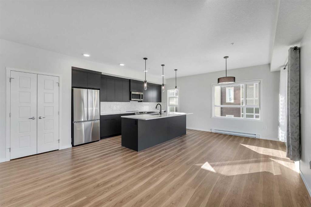 1386 Sq Ft | 3 Bedrooms | 2 Bathrooms | Huge Balcony | Heated Underground Parking | Harvest Hills NE Calgary Welcome to this stunning and expansive 1,386 sq ft condominium in the highly sought-after community of Harvest Hills NE Calgary — offering serene nature-inspired living with modern luxury and comfort. This is truly one of the largest and most well-maintained units in the complex, thoughtfully designed for both functionality and style. As you step inside, you are greeted by a spacious and inviting foyer, setting the tone for the elegance that follows. The openconcept layout seamlessly connects the grand living and dining areas, highlighted by large, sun-filled windows that flood the space with natural light, creating a warm and welcoming atmosphere. This generous living area provides the perfect setting for entertaining family and friends or simply relaxing in comfort. The gourmet kitchen is a true chef’s delight, featuring upgraded cabinetry extending to the ceiling, premium stainless steel appliances, a large quartz island, and a quartz backsplash — a rare and luxurious feature. A walk-in pantry provides added convenience and storage space. The kitchen flows effortlessly into the dining and living areas, offering an ideal setup for gatherings and everyday living. The primary bedroom suite is a peaceful retreat complete with a 4-piece ensuite bathroom and a spacious walk-in closet. The second bedroom also includes its own walk-in closet, while the third bedroom can easily serve as a guest room, home office, or nursery. A second full bathroom provides comfort and convenience for residents and guests alike. The laundry room is impressively spacious, equipped with side-by-side washer and dryer, upgraded cabinetry, and additional storage, making everyday chores effortless and organized. Step outside to the huge private balcony—a rare find—with unobstructed views, perfect for relaxing or entertaining. Equipped with a BBQ gas line, it’s the ideal space to enjoy summer evenings with friends and family. Adding even more value, this unit comes with titled heated underground parking, ensuring your vehicle stays warm and protected throughout Calgary’s cold winters. The exterior of the building features durable, hail-resistant cement fiber siding, providing extra peace of mind and lasting curb appeal. Nestled in a peaceful, family-friendly neighborhood, this home offers an unbeatable combination of tranquility and convenience. Enjoy nearby parks, green spaces, and scenic walking and cycling trails, as well as tennis and pickleball courts. Shopping and dining are just minutes away, with T&T Supermarket, Costco, and a variety of local restaurants all within easy reach. Fitness enthusiasts will love the proximity to Vivo for Healthier Generations, while families will appreciate access to nearby schools and playgrounds. Commuting is effortless with quick access to both Stoney Trail and Deerfoot Trail, and CrossIron Mills is just a short 10 minute drive.