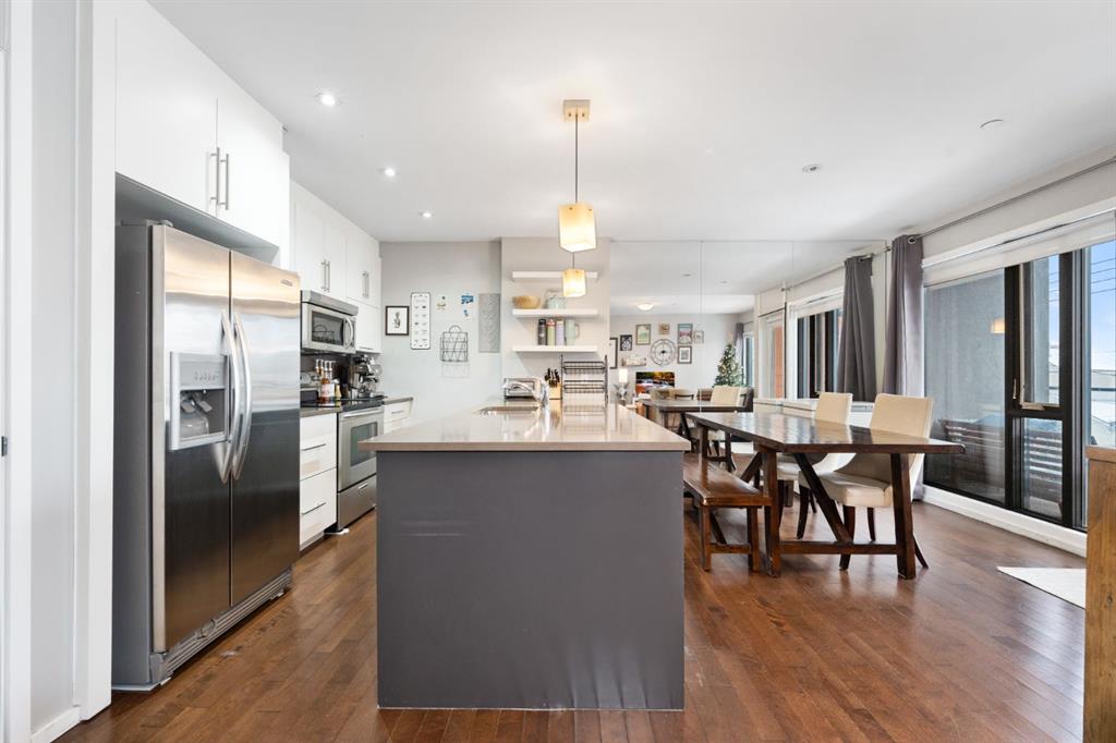 OPEN HOUSE NOVEMBER 29,30 2-4PM – Welcome to one of the most unique and desirable condos in Calgary, located in an unbeatable location just minutes from downtown and steps to the vibrant restaurants, parks, and amenities of Bridgeland, as well as the scenic viewpoints of Crescent Heights. This rare corner unit at THE VU is situated in a quiet low rise building and offers breathtaking, unobstructed views of the Calgary skyline, Calgary Tower, and Bow River. With 1,030 square feet of highly functional living space, this two bedroom, two bathroom layout is thoughtfully designed with both bedrooms separated from the main living and dining areas for added privacy. The unit features beautiful hardwood flooring throughout, a massive kitchen island, granite countertops, stainless steel appliances, and in floor heating for year round comfort. Additional highlights include in suite laundry and a titled underground parking stall. Large windows flood the space with natural light while showcasing incredible city and river views. This is a rare opportunity to own a truly special home in one of Calgary’s most sought after inner city communities.