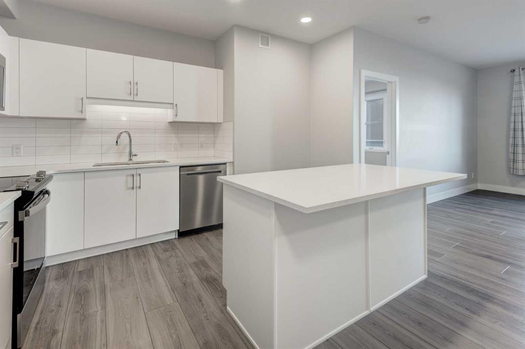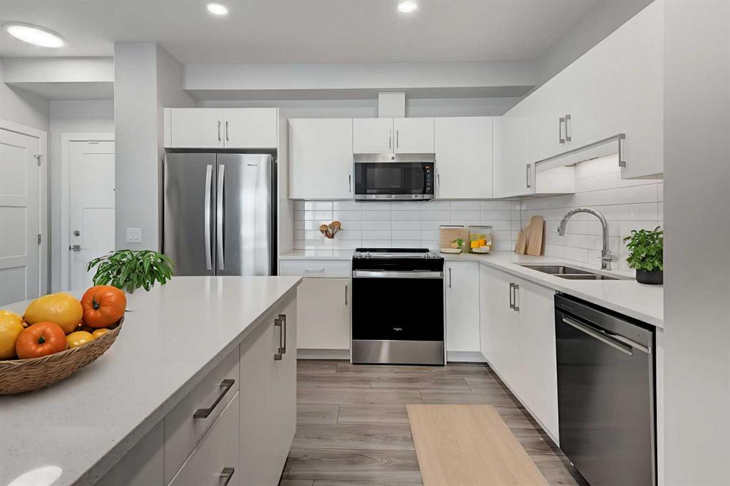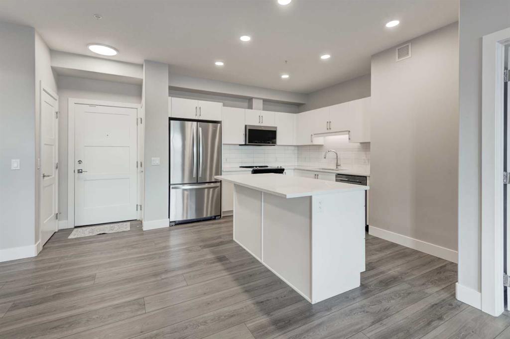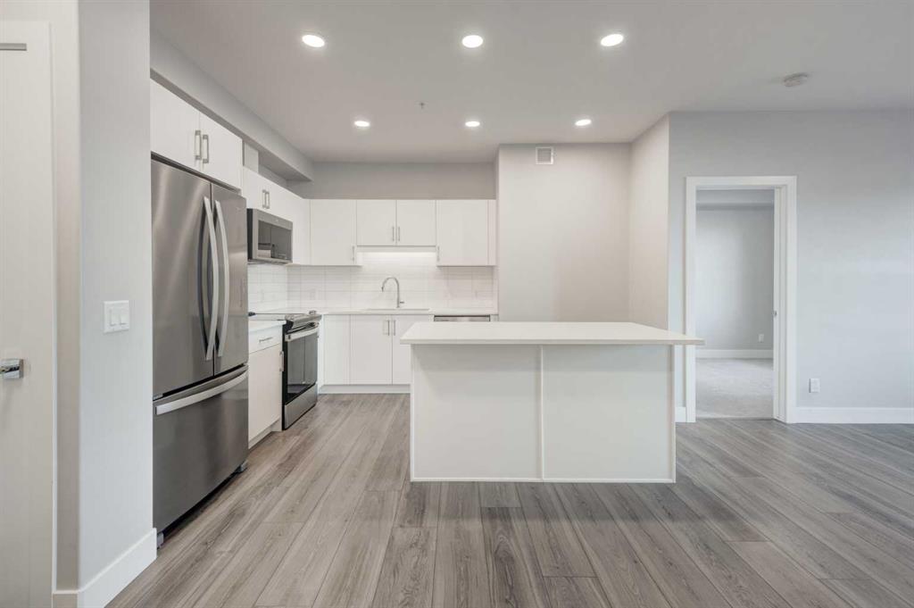 Don’t miss out on this 2023-built unit—it still looks brand new inside. It is perfect for a first-time buyer or investor. This unit has only one neighbouring side and features an open-concept floor plan with 9 ft ceilings. The spacious living room comfortably fits a full-size couch, and a patio door leads out to the deck. The modern, bright white kitchen includes QUARTZ countertops, ample cabinet storage, a centre island, and stainless steel appliances. There are two good-sized bedrooms. The primary bedroom includes a walk-in closet and a 3-piece ensuite. The second bedroom also has a walk-in closet and direct access to the 4-piece bathroom. In-unit washer and dryer included. The titled underground parking stall is large enough for an SUV, The assigned storage room is the largest one in the building, and the owner paid $5,500 for it. Walking distance to Aspen Landing Shopping Centre, and only a 5 minute drive to the 69 St C-Train station, Rundle College, the well-known Griffith Woods School (K–9), and Ernest Manning High School.