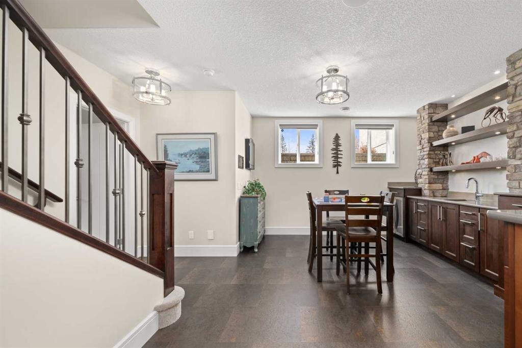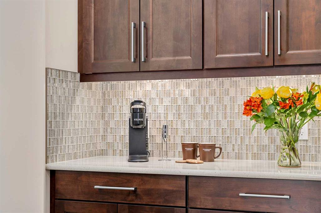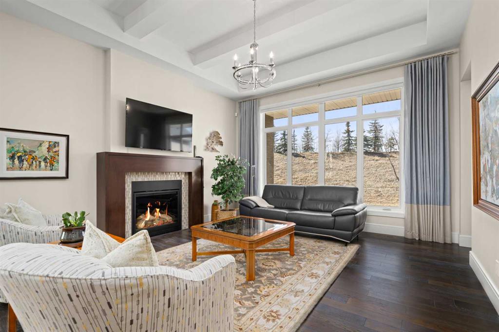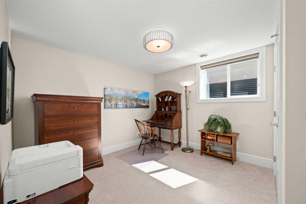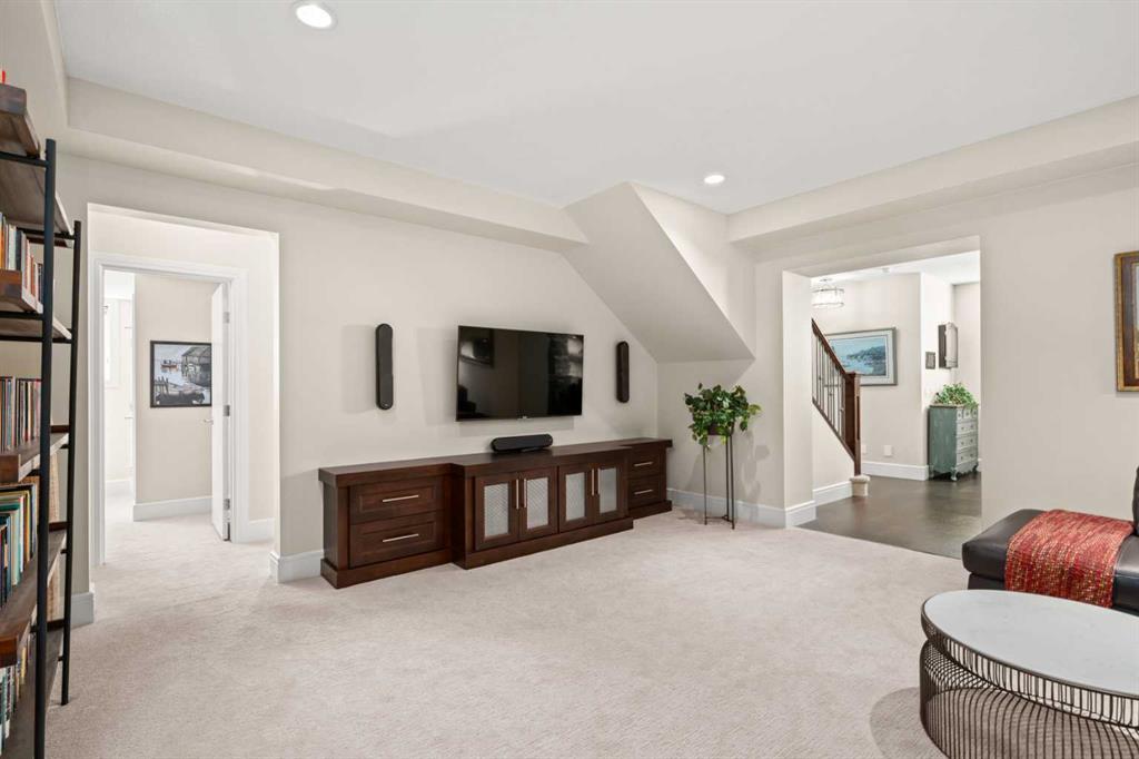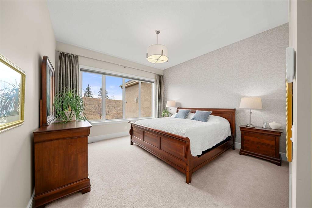 Nestled within an exclusive enclave of just 36 villas in Artesia at Heritage Pointe, this exceptional executive residence offers refined living in an impeccably maintained setting. As a former showhome, this residence stands apart with exceptional quality, thoughtfully curated upgrades, timeless design, and abundant natural light—reflected in its sophisticated finishes, pristine condition, and premium Hunter Douglas window coverings throughout. The main level strikes a perfect balance between elegance and functionality, anchored by a stunning custom kitchen with a large central island that serves as both breakfast bar & gathering place – ideal for everyday living and effortless entertaining. A discreet butler’s pantry adds convenience, while the elegant dining room, adorned with a wallpapered feature wall and framed by a tripartite of windows, offers a beautiful setting for both intimate dinners & larger gatherings. The living room impresses with its striking ceiling detail and fireplace, while a well-appointed wet bar provides a seamless transition to accommodate an indoor/outdoor lifestyle. Outside is a west-facing exposed aggregate patio, where sunshine and privacy abound, backing onto greenspace and a densely treed berm. The primary bedroom is a true retreat.. Generous in size and filled with natural light, it features an elegant, wallpapered accent wall and transom windows that beam sunlight into the spa-inspired ensuite bath. Featuring dual granite vanities, a corner soaker tub, a spacious walk-in shower with rain and multi-function heads, and a thoughtfully designed custom walk-in closet. A versatile flex room with a designer accent wall offers the perfect space for a home office, den, or guest bedroom, complemented by a powder room to complete the main floor. An open-railed staircase leads to the fully developed lower level, where the living space expands beautifully. Here, a custom wet bar with built-in cabinetry, stone columns, and wood shelving creates an inviting setting for entertaining, alongside a dedicated wine cellar for an added touch of luxury. The family room, warm and welcoming, features a built-in entertainment centre with Tannoy speakers and integrated Sonos sound system – perfect for movie nights or watching the game. Three additional bedrooms, one currently used as a home gym, and a full bathroom provide flexibility for guests or work-from-home needs. This level is further enhanced by an exceptionally spacious and immaculate utility room offering abundant storage, along with the efficiency of a tankless hot water system, in-floor heating, and a water softener. The double attached garage is equally well appointed, featuring in-floor heating, dual overhead doors, a workbench, and a convenient man door for easy access. Balancing comfort, craftsmanship, and understated luxury, this home is ideally suited to the discerning buyer seeking a lock-and-leave lifestyle with without compromise. Viewings by Appointment Only.