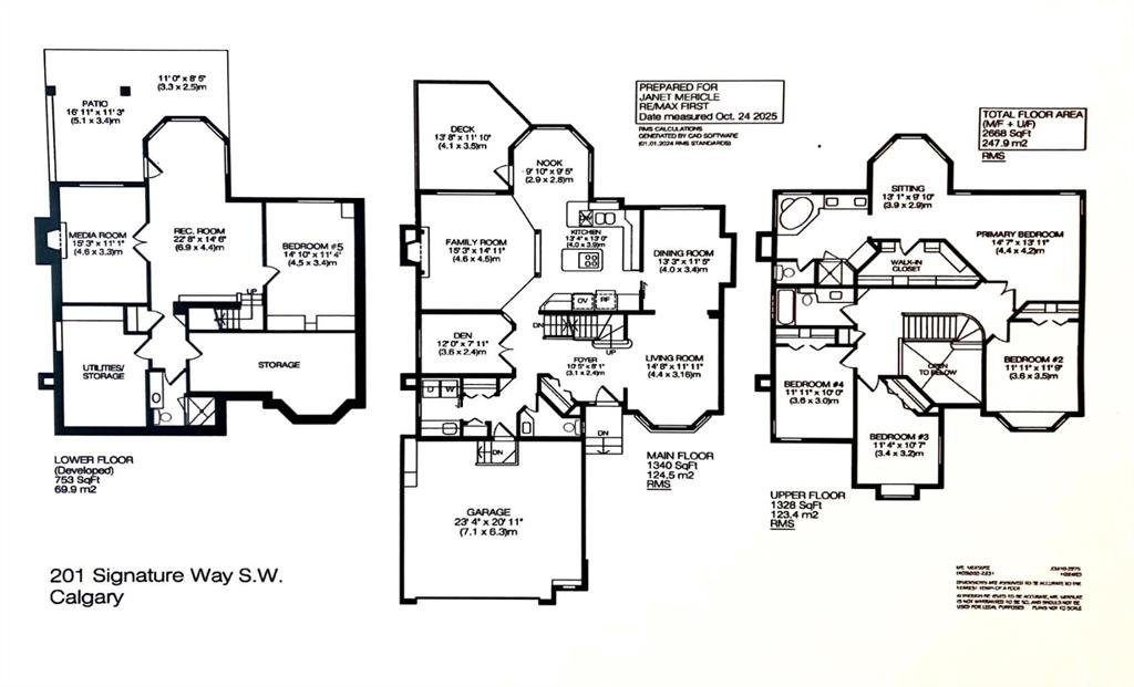 ** Check out the video** An extraordinary opportunity to own this custom-built home on a massive 9504 sq. ft. lot in sought after Signal Hill offering million-dollar panoramic views of downtown Calgary from all three levels! This executive home offers 3421 sq. ft. of developed living area on three levels including a bright walk-out level. Spacious two storey foyer. Formal living room with west bay window. Spacious dining room with cantilever and large east window offering stunning expansive views of downtown Calgary. Main floor Den provides the perfect home office. Well-designed kitchen is a chef’s dream featuring an abundance of oak cabinets, wall pantry and stainless-steel appliances, including double wall ovens. Timeless granite counters include a central prep island with ceramic top surface unit. Additional counter area provides the perfect coffee station. Bright and sunny breakfast nook with bay window that offers views of the expansive yard and panoramic views of downtown Calgary. French door opens to a raised deck making this easy for summer entertaining. Inviting family room with gas fireplace and city views is perfect for casual gatherings. Convenient foyer off the attached garage features a two-piece bathroom, storage closets and laundry room with sink and counters. Double door entry to the expansive primary retreat, features a spacious bedroom area with walk-in closet. Enjoy the night lights from your sitting area with bay window. Five-piece ensuite bathroom featuring double marble vanity, separate make-up vanity, corner jetted tub and large walk-in shower. Three additional large bedrooms and four-piece bathroom compliment the second floor making this the perfect family home. A well-designed lower walk-out level with family room and media room with gas fireplace. Bright fifth bedroom and three-piece bathroom with steam shower. Additional upgrades include two furnaces and hot water tanks (2020). Two central A/C units, central vac. and water softener. An abundance of lower storage. Oversized double attached garage. An exceptional 182’ deep private lot with mature trees and landscaping. Located minutes from schools, shopping, parks and pathways.