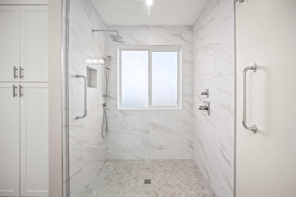 Upstairs, you’ll find a massive bonus room with vaulted ceilings and stylish LVP flooring—great for family movie nights or a play area. The primary suite is a true retreat with stunning mountain views, a walk-in closet, and a luxurious renovated ensuite featuring heated tile floors, a tiled walk-in shower, dual-sink quartz vanity, and built-in storage. Two additional generous bedrooms and a 4-piece family bath complete the upper floor.