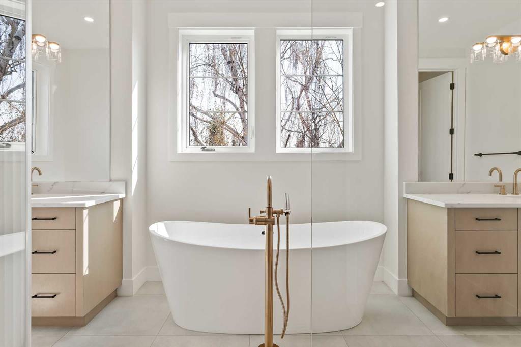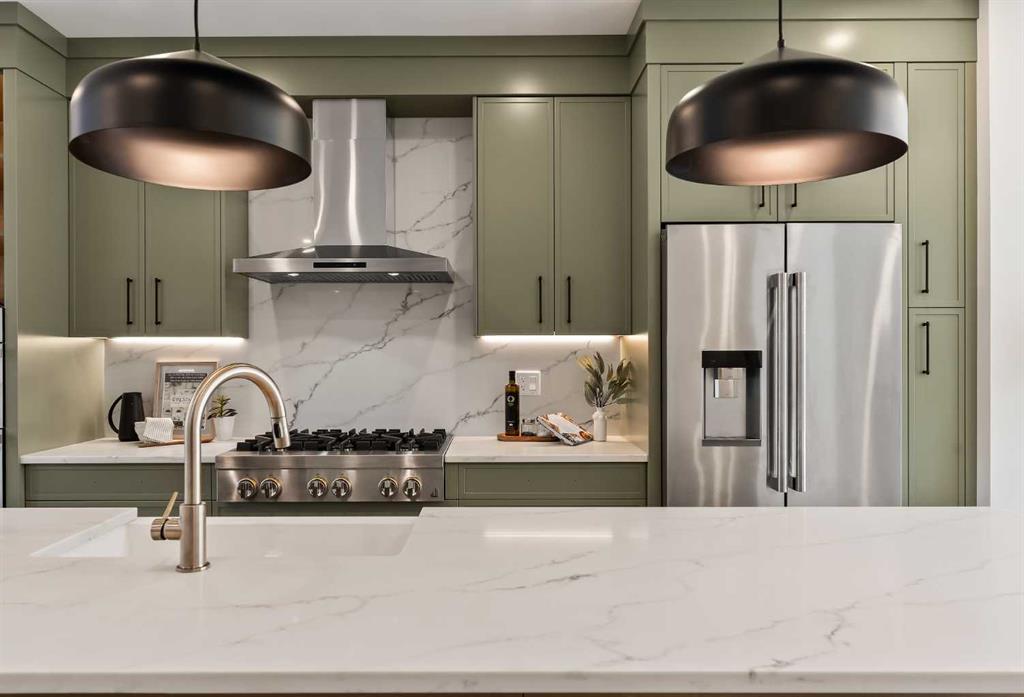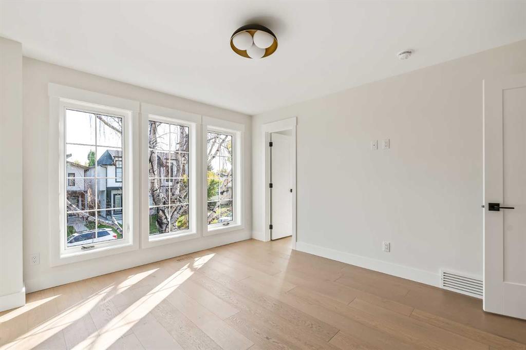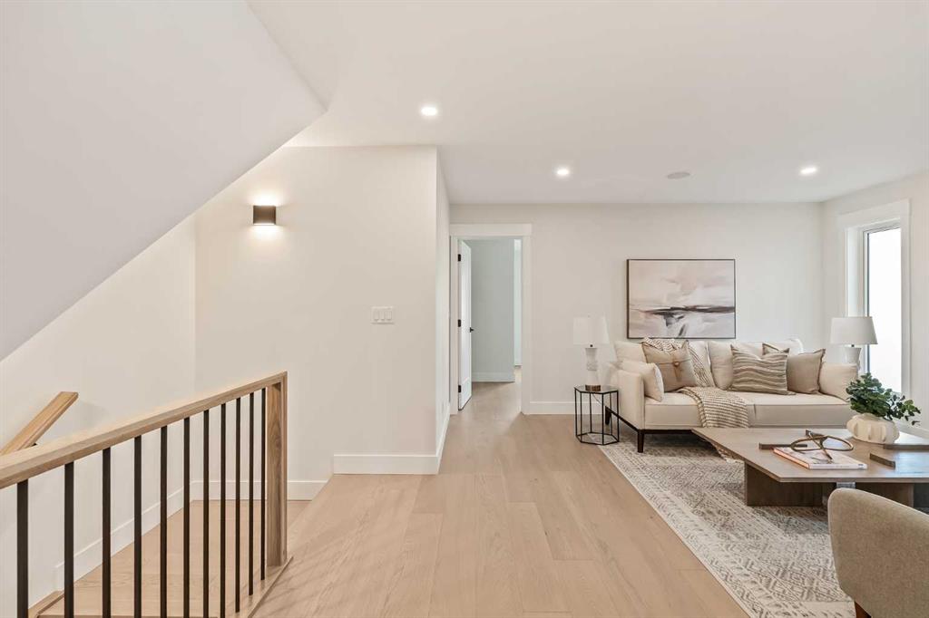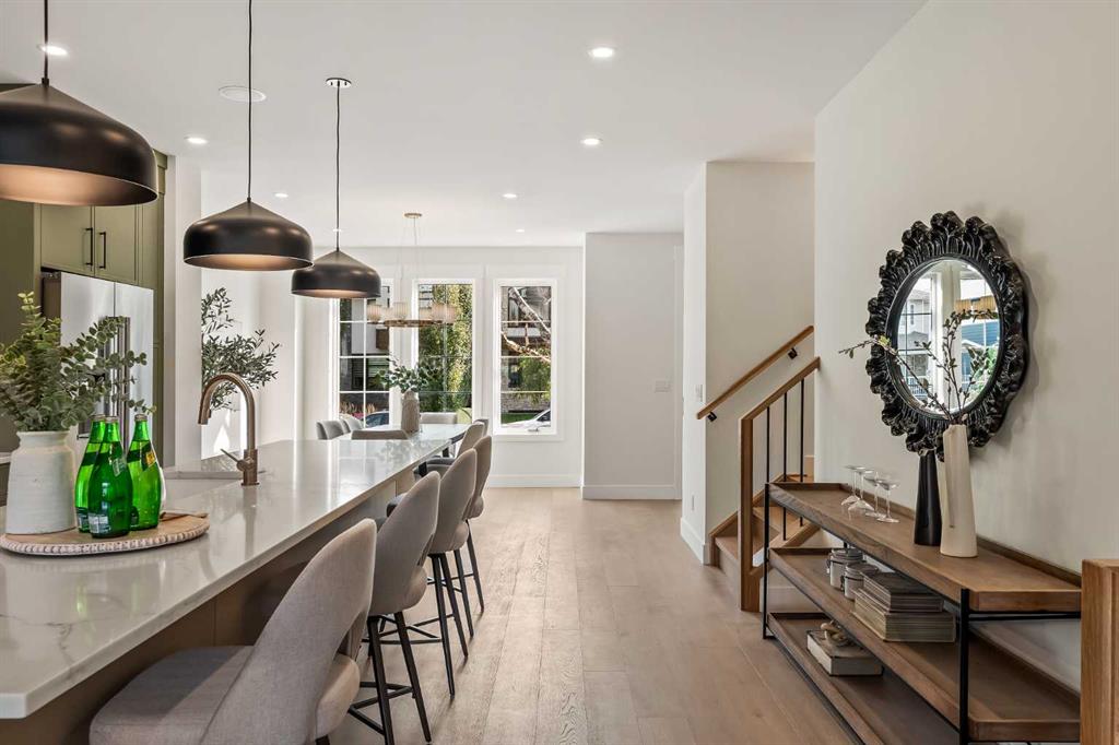 Presenting a stunning urban-inspired masterpiece in the coveted community of Killarney. Thoughtfully designed & impeccably crafted, this three-story residence offers over 3650 SF of refined living space. The open-concept main floor showcases striking architectural details, including white oak hardwood floors, custom-milled cabinetry, oak & metal railings, & expansive windows that bathe the interior in natural light. The kitchen stands as a true showpiece featuring bespoke cabinetry with undermount lighting, exquisite quartz slab countertops & backsplash, premium JennAir appliances, Silgranit sink, & a impressive 12-foot island with seating for five. In the living area, a handsome floor-to-ceiling fireplace surround, & 8-foot garden doors make a bold yet sophisticated statement while white oak hardwood, mullioned windows, & an inviting dining area further elevate the curated, light-filled main floor. Completing the level is a convenient mudroom with built-ins & a pretty powder room. The gorgeous oak hardwood continues to the second level where the centrally situated bonus room is flanked by two distinguished bedrooms, each boasting its own ensuite with custom vanities, quartz counters, & beautifully tiled showers with glass doors while spacious walk-in closets with built-ins & large windows enhance the comfort & appeal of these inviting retreats. The third level is a sanctuary of elegance and comfort. The airy primary suite is flooded with natural light & features expansive sliding doors to a private balcony perfect for enjoying quiet morning coffee from the convenient beverage centre. The stunning ensuite exudes spa-like luxury with double custom oak vanities & refined quartz countertops, a dramatic steam shower, in-floor heating, & an opulent stand-alone waterfall tub. Completing this exceptional level is a considerable walk-in closet with extensive custom millwork. The professionally developed lower level delivers 900 SF of living space built with the same attention to detail. Providing a spacious family room, wet bar, fitness area, 4th bedroom with walk-in closet, & 5th bathroom this additional level makes an ideal area for entertaining or accommodating family members & guests. Equally impressive is the extraordinary curb appeal displaying genuine brick accents, James Hardie board cladding, acrylic stucco, mullioned windows, & an aggregate patio. The quiet West-facing backyard offers a tranquil setting perfect for children at play, summer barbecues, or simply unwinding at the end of the day. Other notable highlights of this remarkable residence include a double insulated & drywalled garage, Ply Gem windows with 2-year warranty, Delta fixtures, & 200-amp panel. Situated close to parks, shopping, schools, transit, & 17th Ave, this extraordinary property delivers a beautiful lifestyle in an excellent Killarney location. Welcome home to 2015 – 34 St SW where exceptional design meets timeless luxury. PHOTOS ARE FROM UNIT 2013. Unit 2015 has a different colour palette