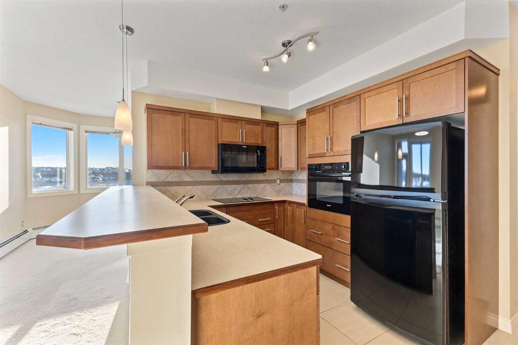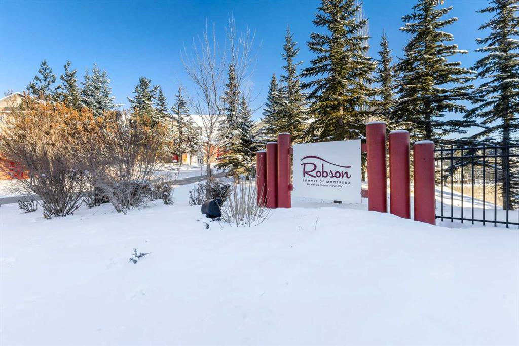 Welcome to the Robson Summit of Montreux, located in the sought after community of Springbank Hill. BRAND NEW FLOORING AND CARPET. This beautiful 2 bedroom, 2 bathroom unit boasts one of the most spacious layouts in the building. As you enter, you are greeted by the living space which is flooded with natural light streaming through a large window, offering beautiful views both from inside your home as well as from your private balcony. The well-appointed kitchen features a new Bosch dishwasher, new microwave, Whirlpool refrigerator, Bosch wall oven and cooktop with ample storage. The primary bedroom is a generous size and offers a walk in closet as well as a 4 piece ensuite. The second bedroom is conveniently located adjacent to the second 4 piece bathroom. The laundry room is equipped with a brand new stacked washer and dryer for your convenience. This unit is complete with heated, secure, titled underground parking (stall 236) as well as a titled storage locker (407). The Robson has a fully equipped gym for your use. The location can not be beat and offers not just a place to live, but a lifestyle. With easy access to Aspen Landing, restaurants, shopping, West Side Recreation Centre, schools the LRT, and biking and walking paths, you’ll have everything you need right at your doorstep. Don’t miss the opportunity to make this exquisite property your new home.