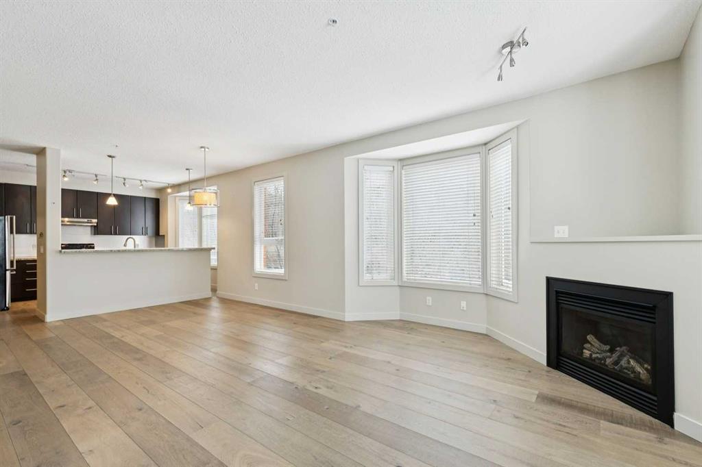 Perfectly positioned in the heart of Bridgeland, this two-bedroom, two-bathroom corner unit with a dedicated office/den offers the ideal blend of space, light, and lifestyle. With south and east exposure, the home is filled with natural light throughout the day, and directly across the street, Murdoch Park offers walking trails, a playground, and beautiful green space right at your doorstep. Inside, the bright living room is anchored by a cozy gas fireplace and framed by two bay windows, creating an airy, inviting atmosphere. The spacious dining area easily accommodates gatherings, a rare find in condo living. The kitchen features neutral finishes, generous counter space, abundant cabinetry, stainless steel appliances, a charming bay window, and a convenient island with a breakfast bar. A separate home office/den enclosed with glass doors and windows provides the perfect work-from-home setup, reading nook, or even space for your Peloton. The primary bedroom includes a bay window, dual closets, and a private ensuite complete with double sinks, a soaker tub, and a separate shower. A well-sized second bedroom and full bathroom offer flexibility for guests or family. Additional features include in-suite laundry, air conditioning, wide plank engineered hardwood flooring, new carpet in the bedrooms, and a timeless neutral palette throughout. One titled underground parking stall and a storage locker are included. Just steps to Bridgeland’s beloved markets, cafés, and restaurants, and minutes to downtown, the Bow River pathways, and St. Patrick’s Island, this home delivers vibrant, walkable, inner-city living at its best.