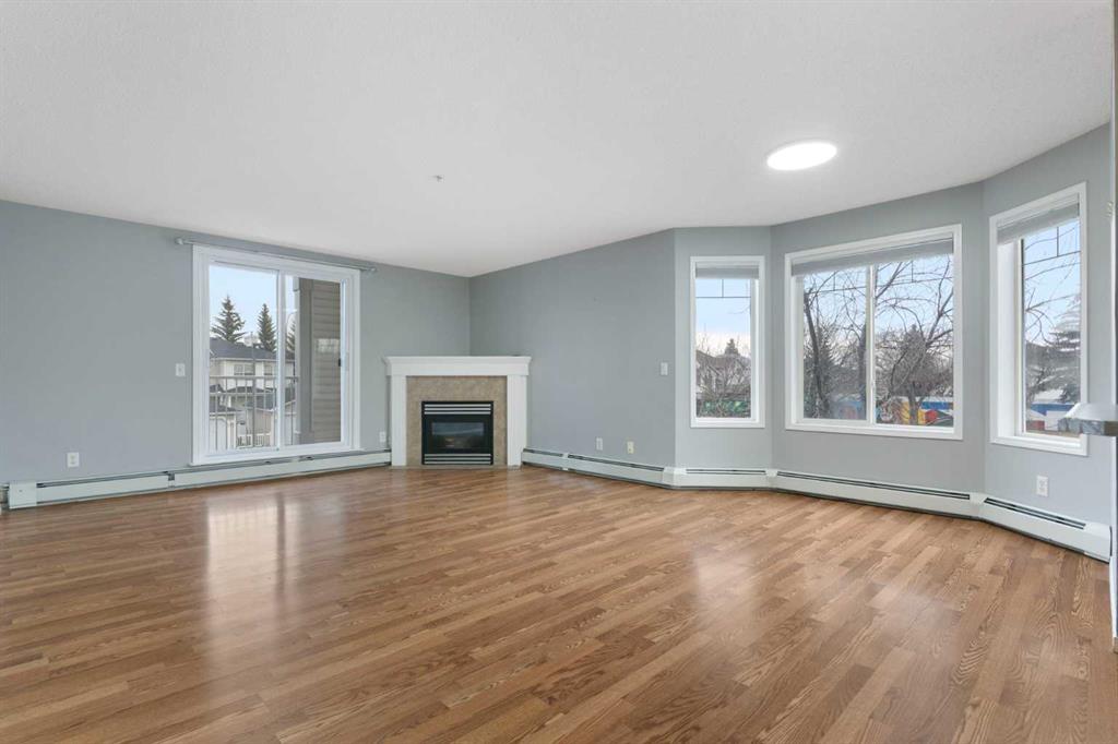 Discover unparalleled brightness and space in this MAGNIFICENT, large 2-BEDROOM, 2-BATHROOM CORNER UNIT, perfectly designed for sophisticated urban living in the COMMUNITY OF COUNTRY HILLS VILLAGE. Step inside and be immediately greeted by the flood of natural light pouring in from oversized windows on one side and a large glass patio door on the other, illuminating the expansive, open-concept living area. This generous space, seamlessly integrating the living, dining, and kitchen areas, is ideal for both quiet relaxation and impressive entertaining. Cozy up on chilly evenings by the elegant gas fireplace, a warm focal point of the room. The Beautiful Kitchen has tons of storage cabinets and drawers, a window over the sink and a convenient island for additional sitting and counter space. Both Bedrooms are generously proportioned with the Primary suite offering a private 3-piece ensuite and ample closet space. There is an additional 4-piece bathroom, a large In-Suite laundry room with built in shelving, a good size coat closet and additional external storage room. This rare gem offers a unique blend of space, light, and functional design. Don’t miss this opportunity to call it home. Location is close to the Shopping Plaza with grocery stores, restaurants, pharmacy as well as city transportation, playgrounds, schools, Vivo Rec Centre, Landmark Cinema, etc. Quick and Easy Access to Deerfoot Trail.
